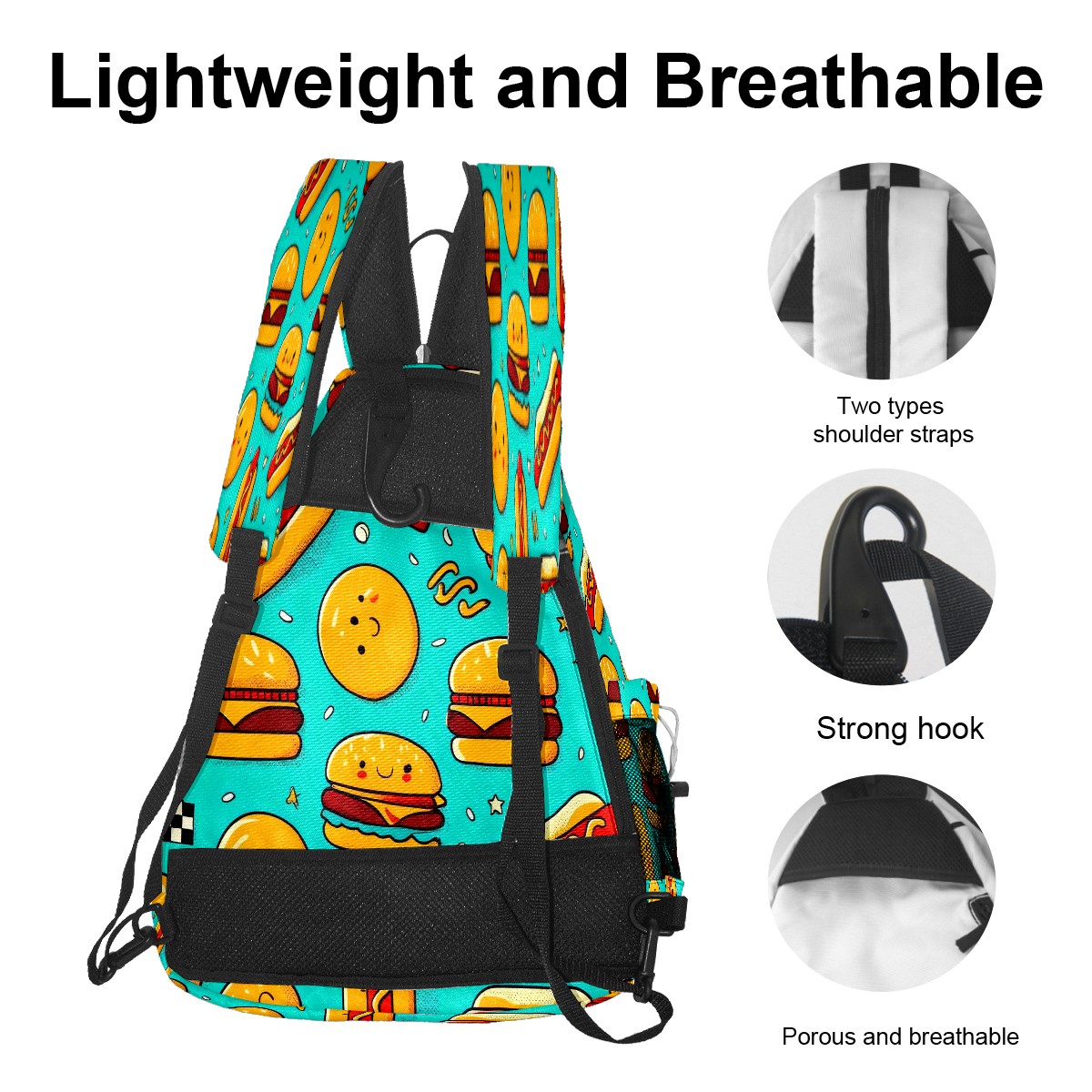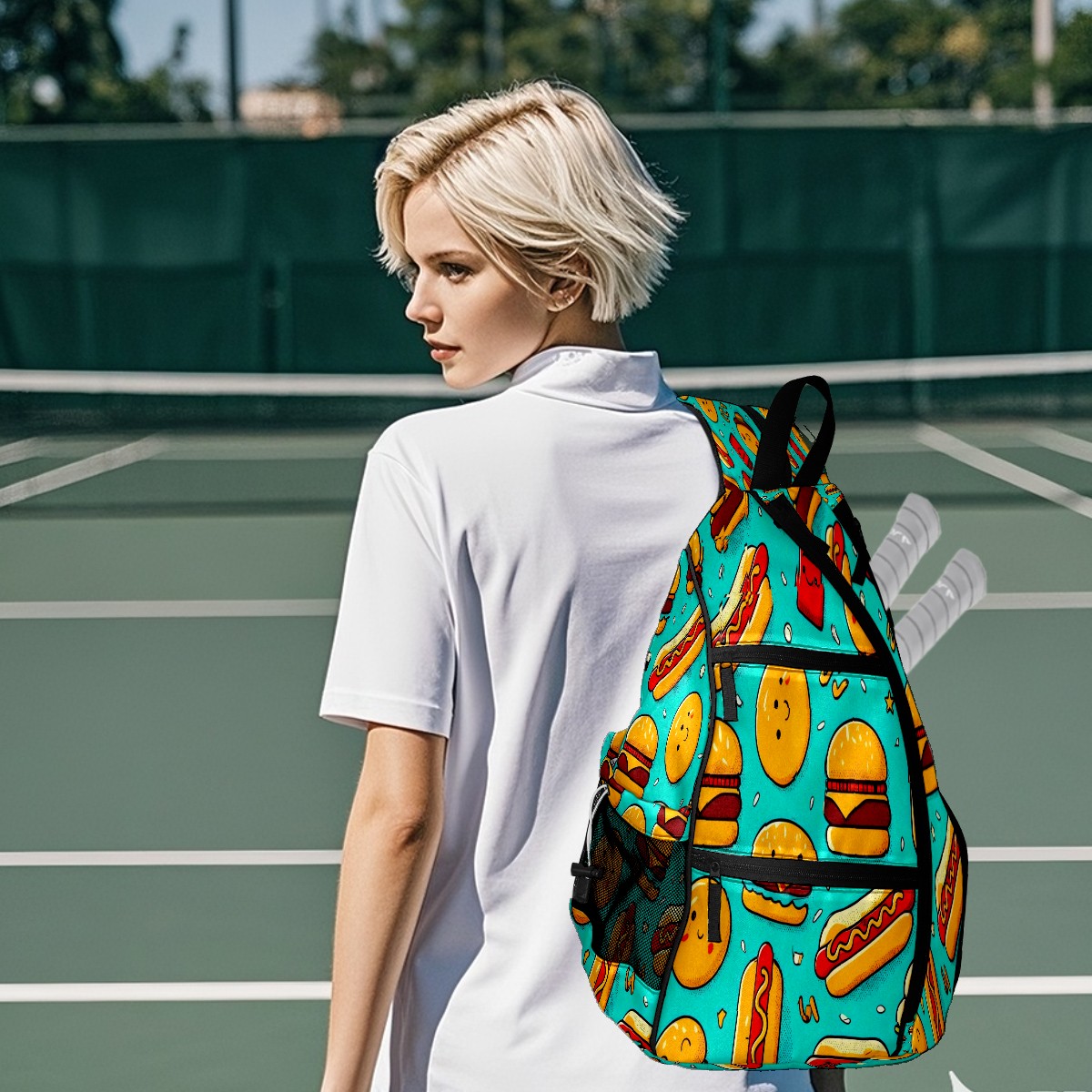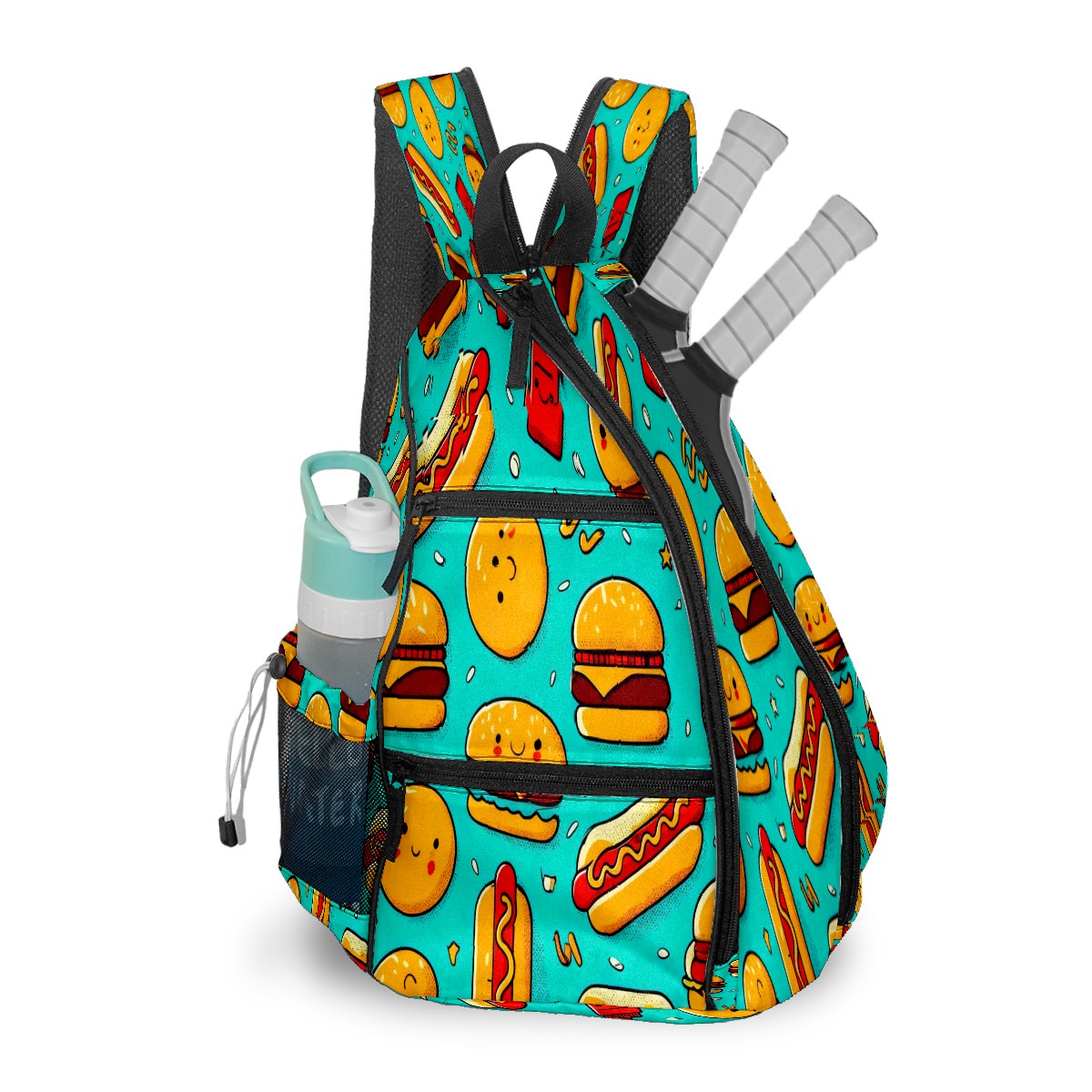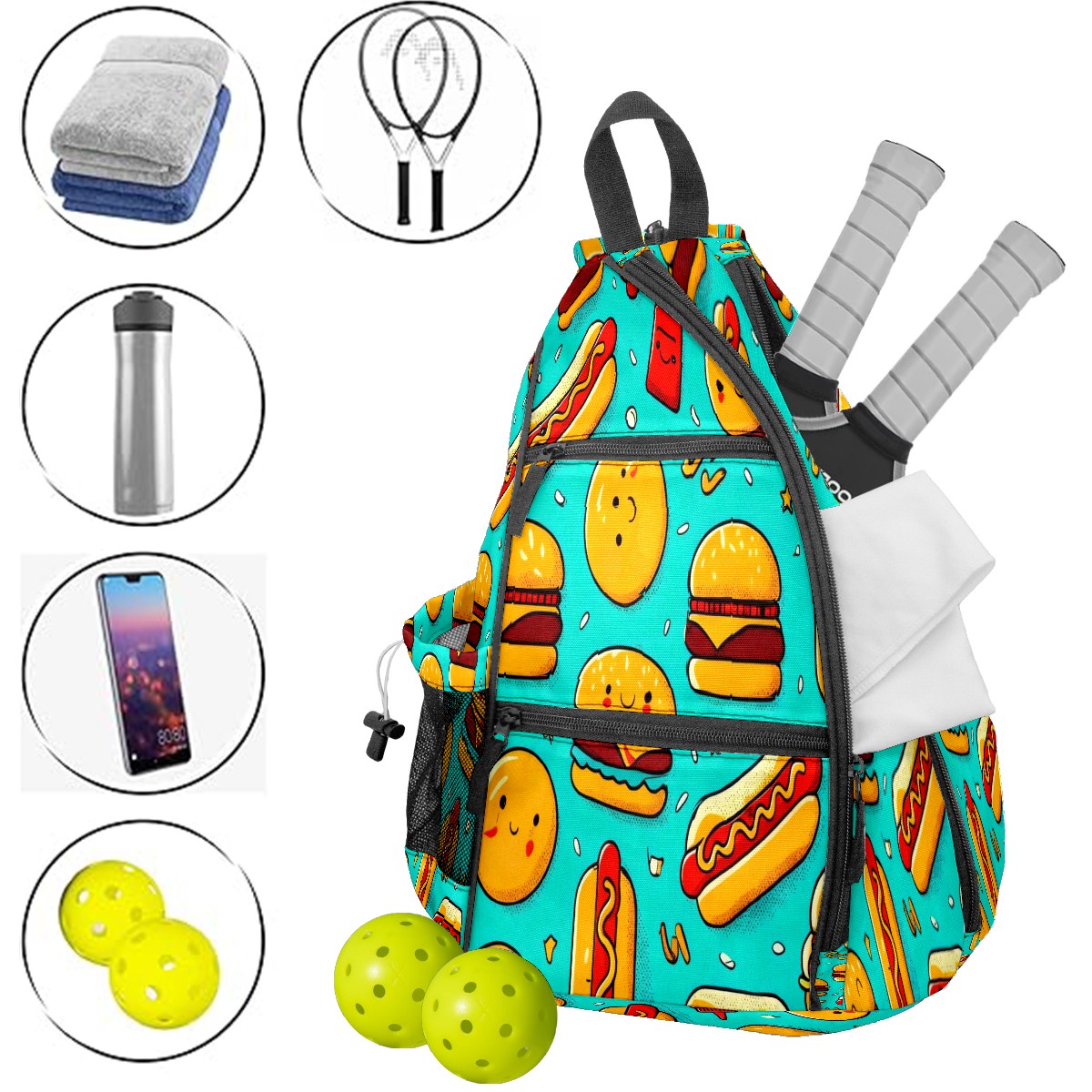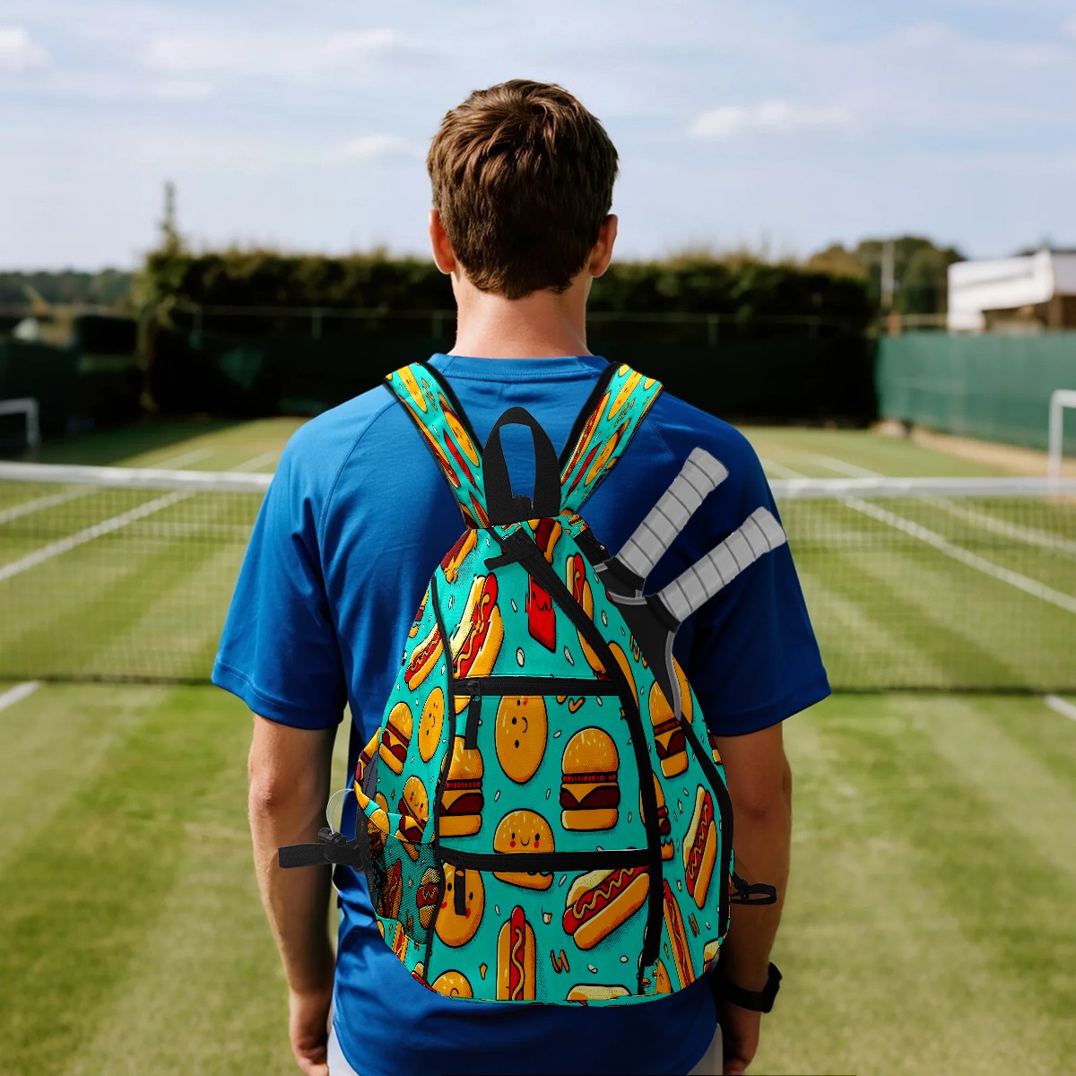 Pickleball Backpack Colorful Food Blue for Women Men - Multi-Pocket Sports Bag with Shoe Compartment | Versatile Tennis Bag & Gifts for Pickleball Lovers