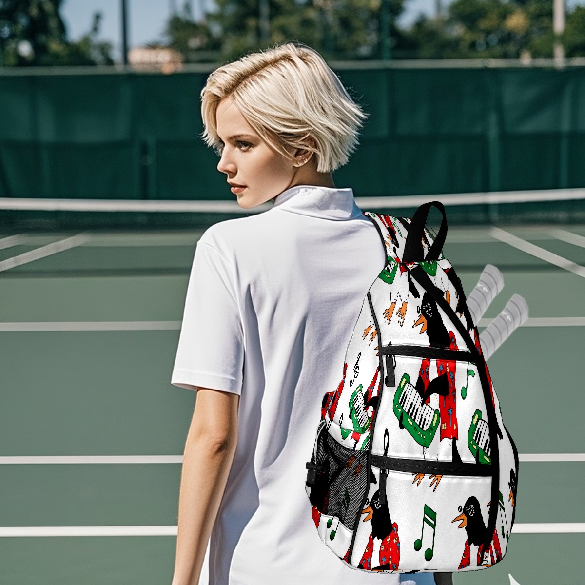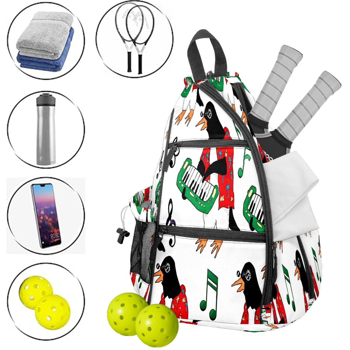 Pickleball Backpack Fun Penguin Red for Women Men - Multi-Pocket Sports Bag with Shoe Compartment | Versatile Tennis Bag & Gifts for Pickleball Lovers