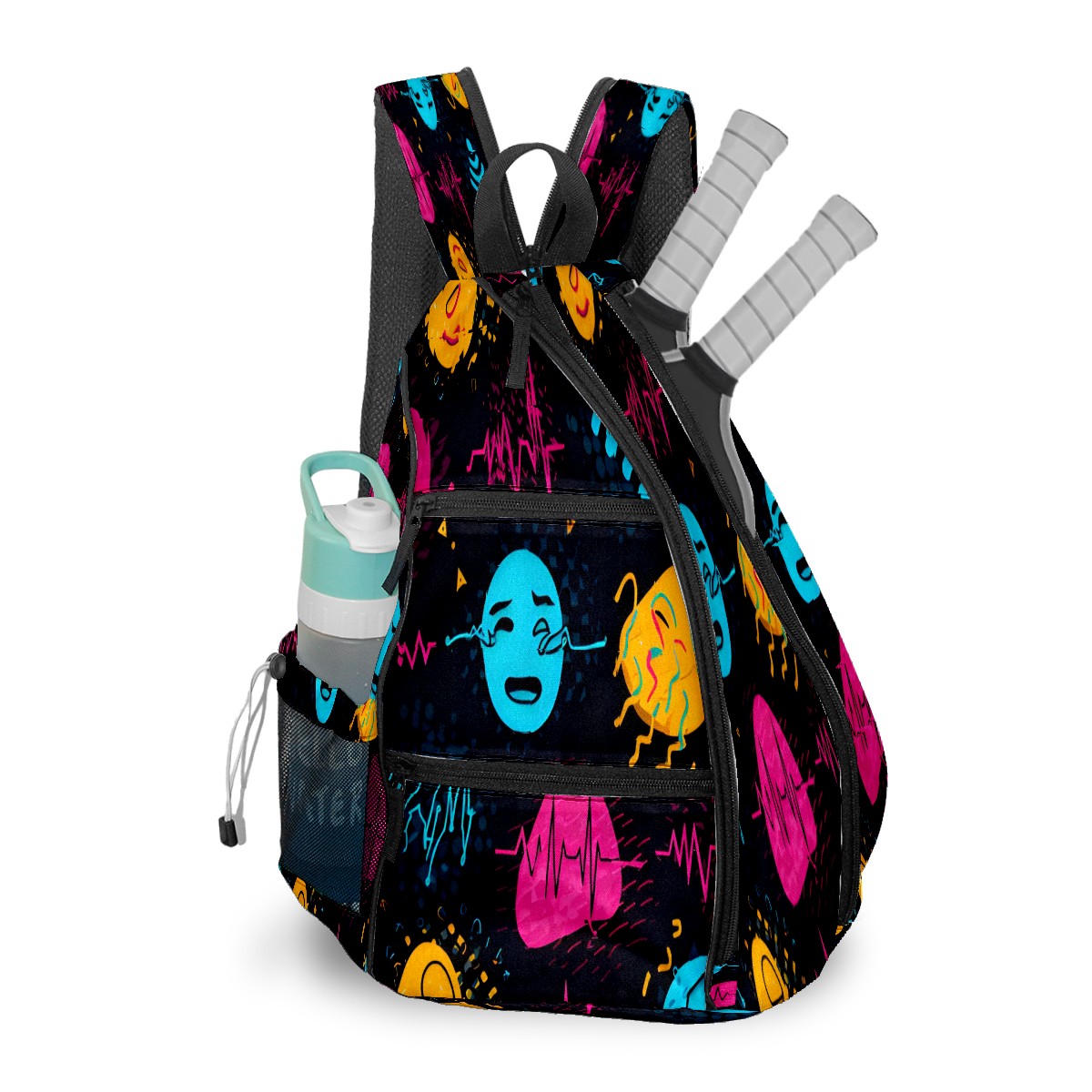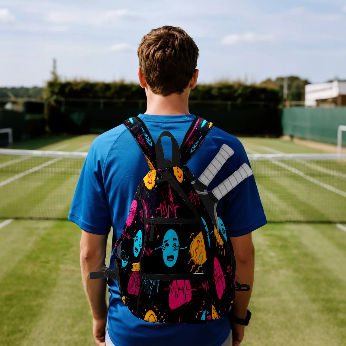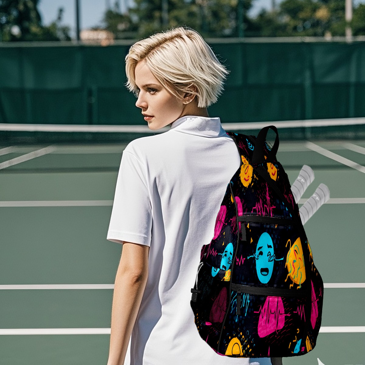Pickleball Backpack Funny Emoji Black for Women Men - Multi-Pocket Sports Bag with Shoe Compartment | Versatile Tennis Bag & Gifts for Pickleball Lovers
