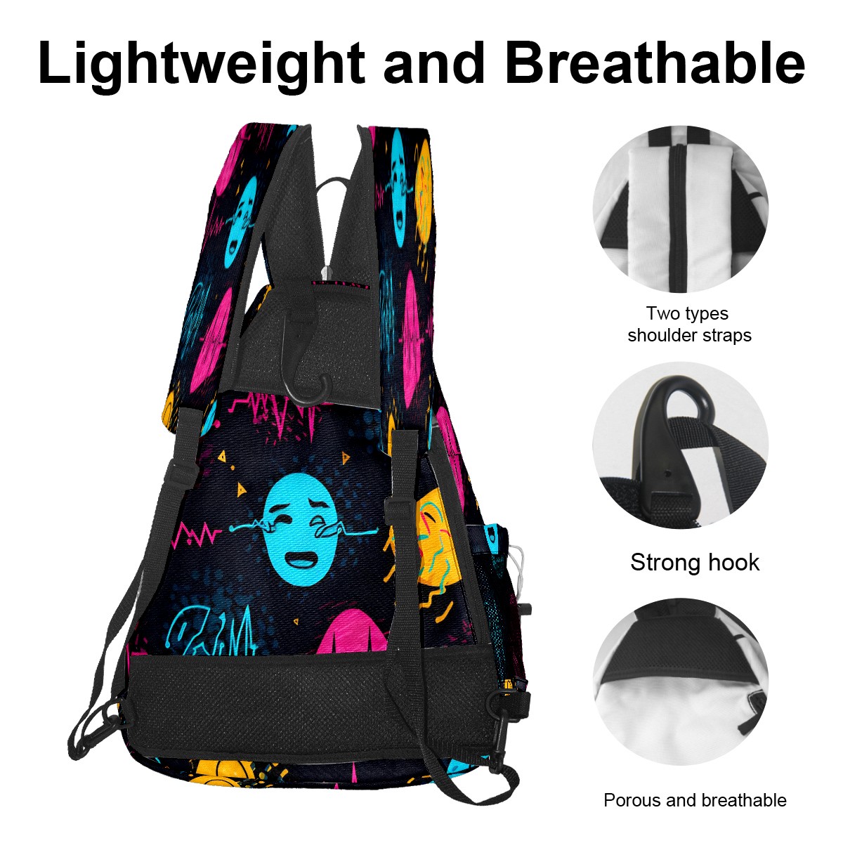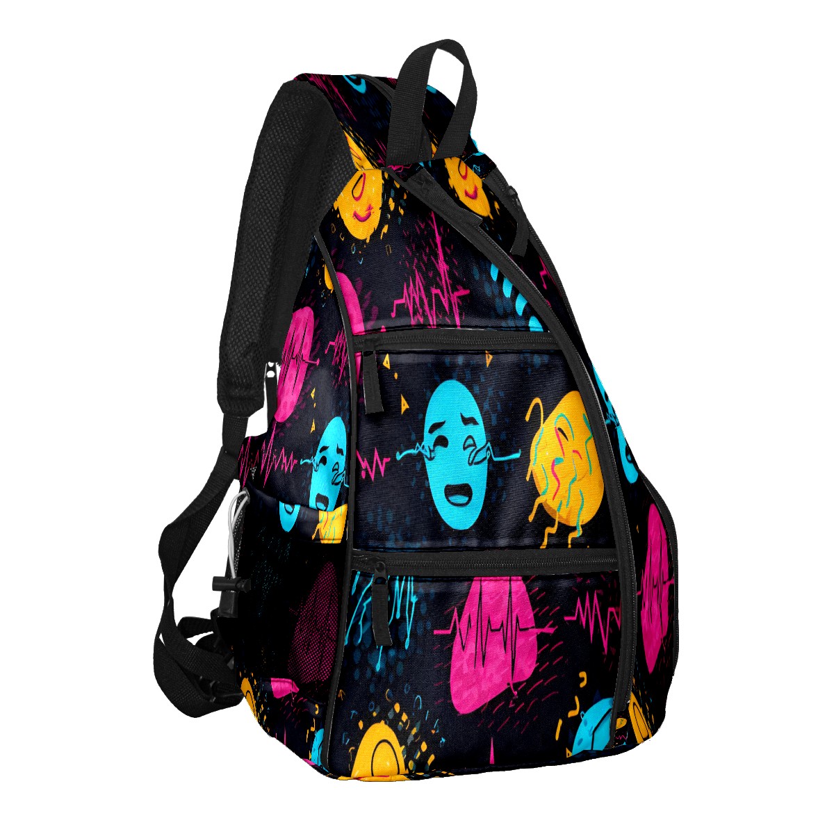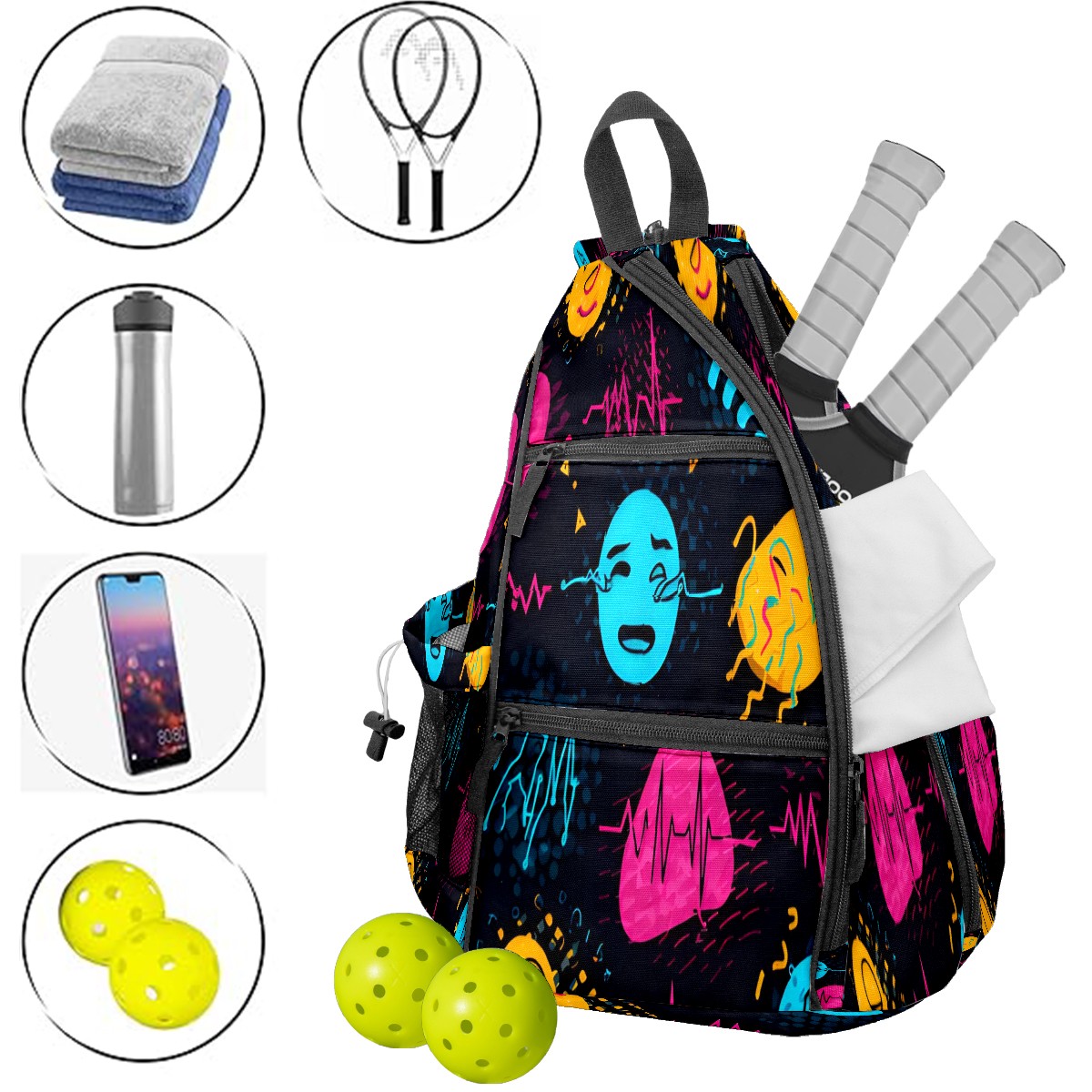Pickleball Backpack Funny Emoji Black for Women Men - Multi-Pocket Sports Bag with Shoe Compartment | Versatile Tennis Bag & Gifts for Pickleball Lovers