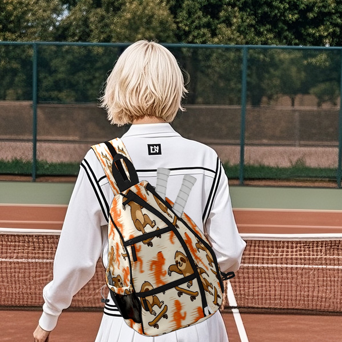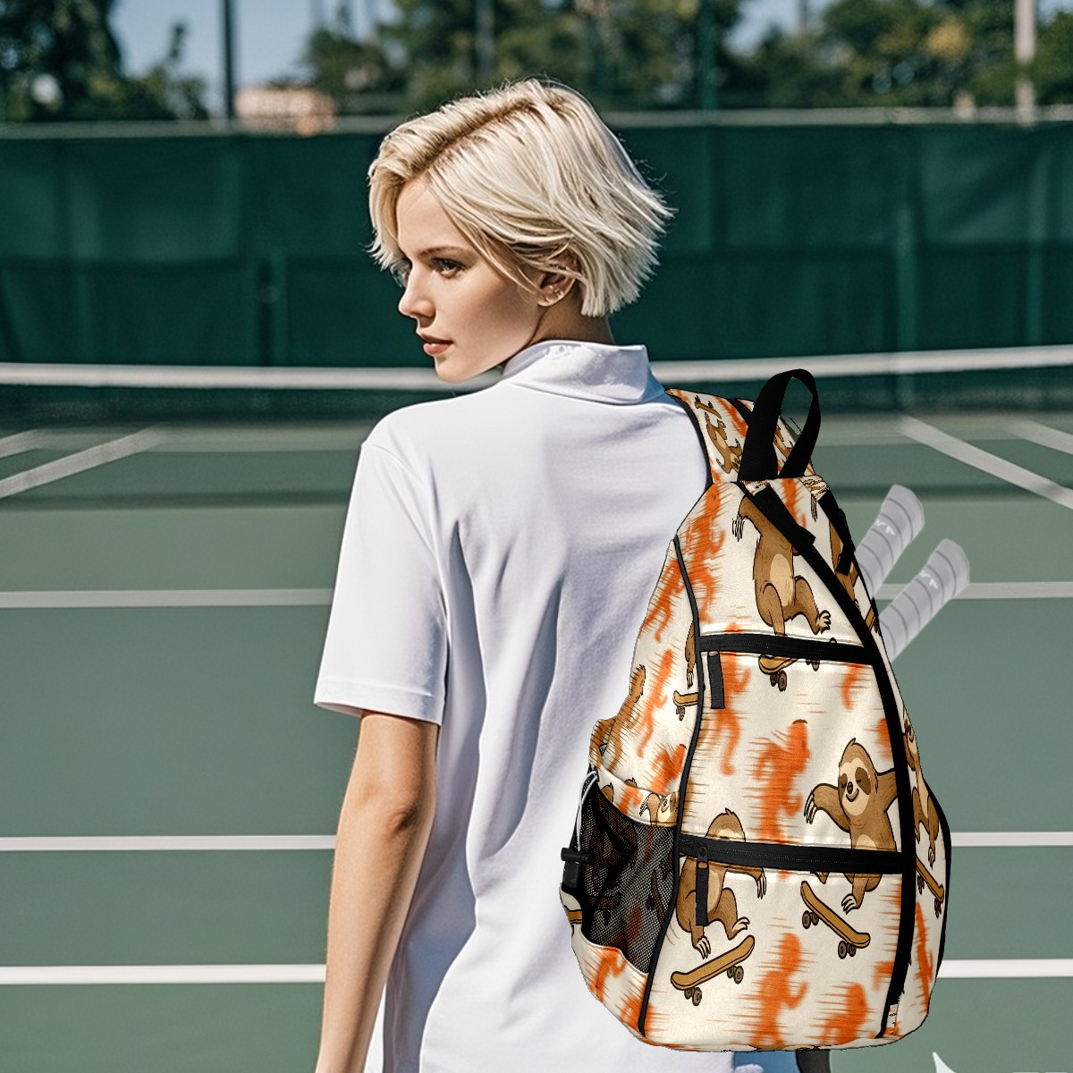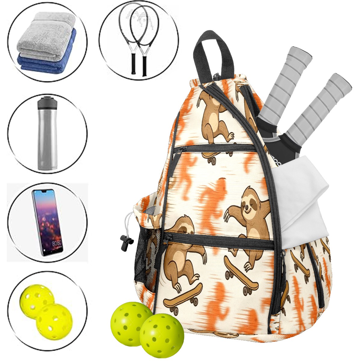 Pickleball Backpack Vibrant Sloth Orange for Women Men - Multi-Pocket Sports Bag with Shoe Compartment | Versatile Tennis Bag & Gifts for Pickleball Lovers