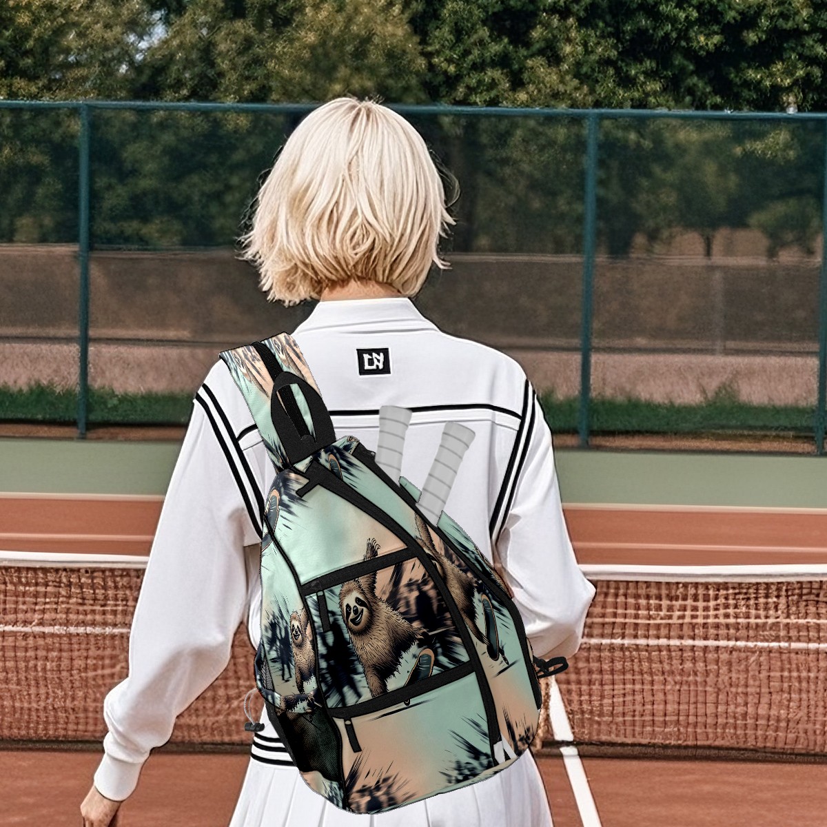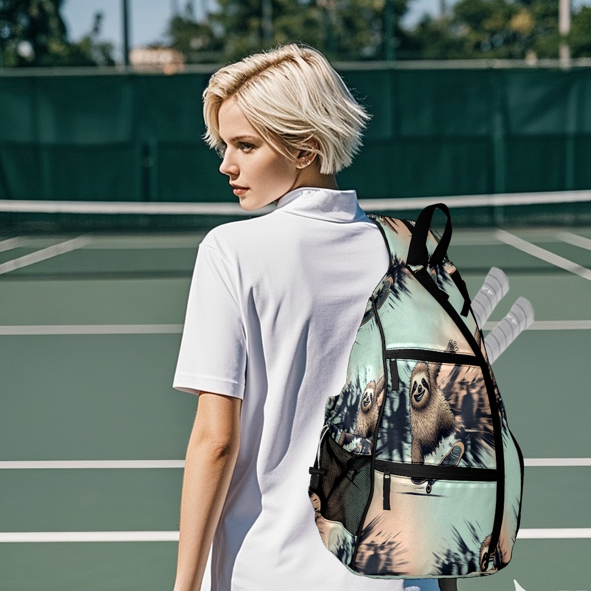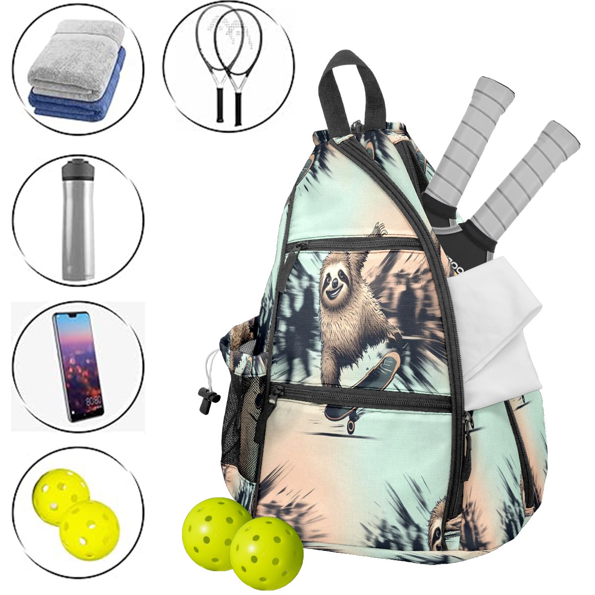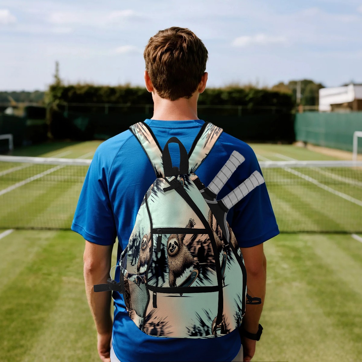 Pickleball Backpack Cool Sloth Blue for Women Men - Multi-Pocket Sports Bag with Shoe Compartment | Versatile Tennis Bag & Gifts for Pickleball Lovers
