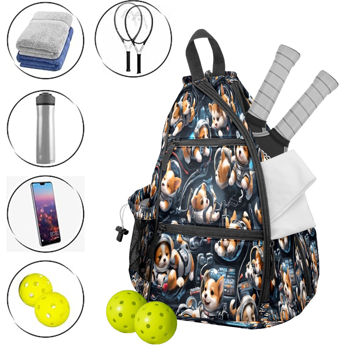 Pickleball Backpack Cute Puppy Brown for Women Men - Multi-Pocket Sports Bag with Shoe Compartment | Versatile Tennis Bag & Gifts for Pickleball Lovers