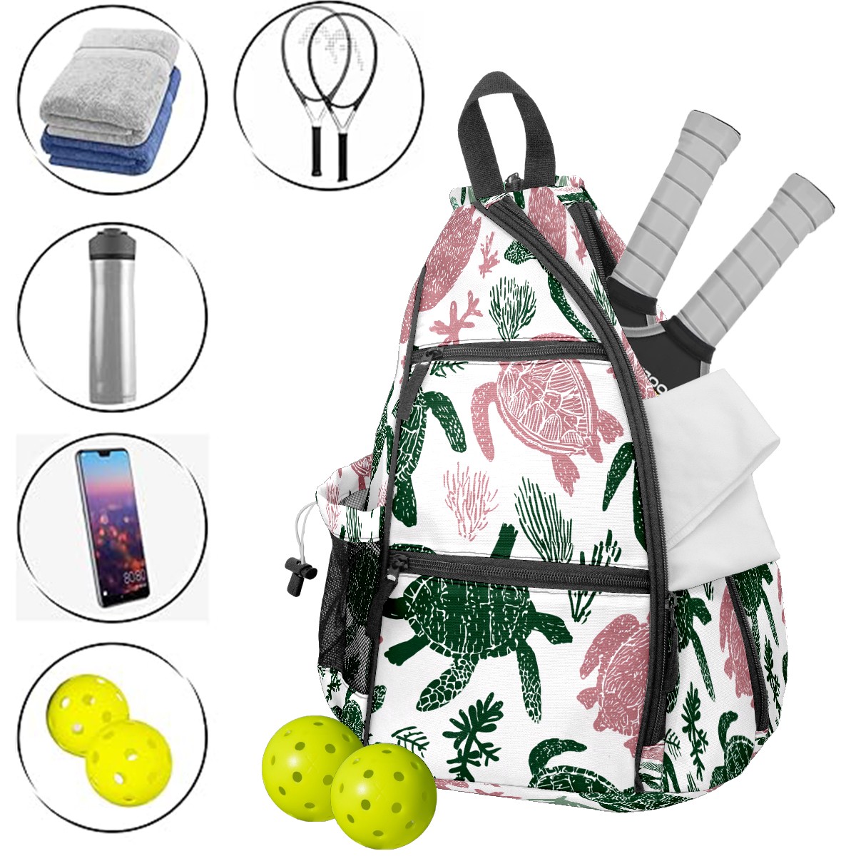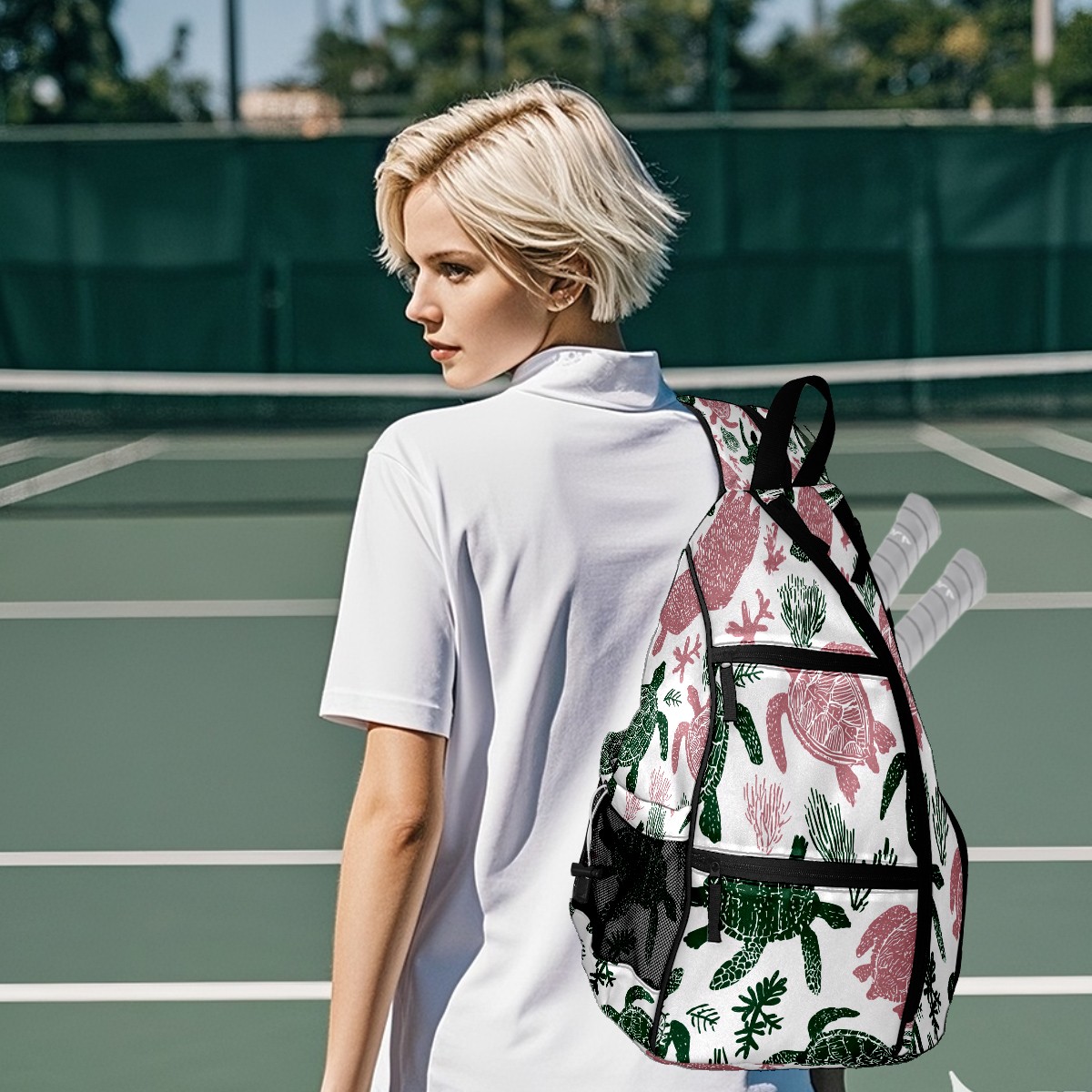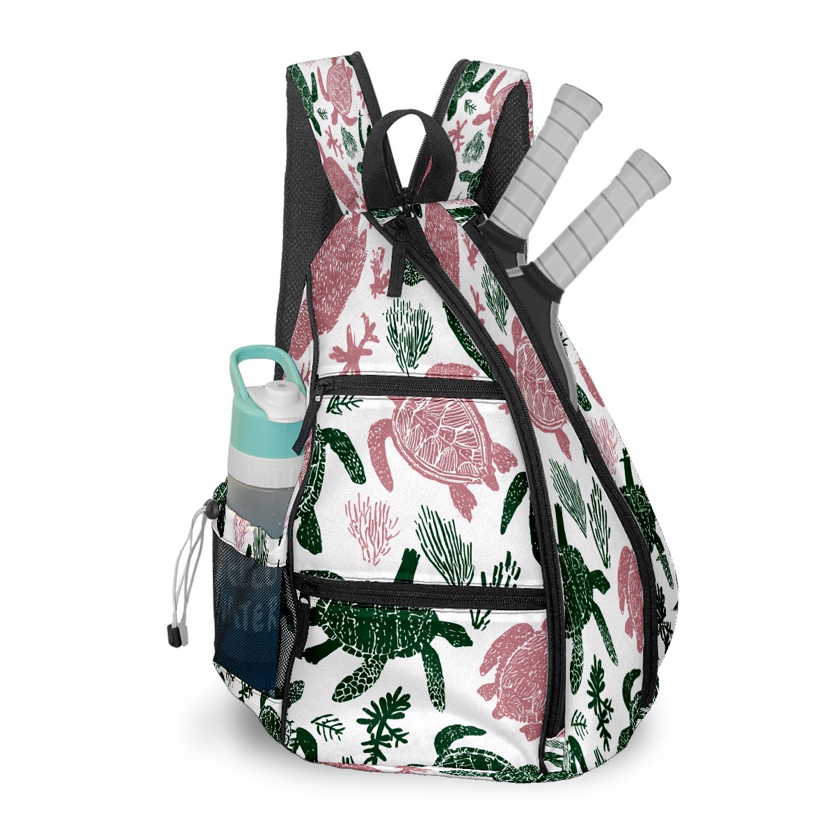 Pickleball Backpack Fresh Turtle Pink for Women Men - Multi-Pocket Sports Bag with Shoe Compartment | Versatile Tennis Bag & Gifts for Pickleball Lovers