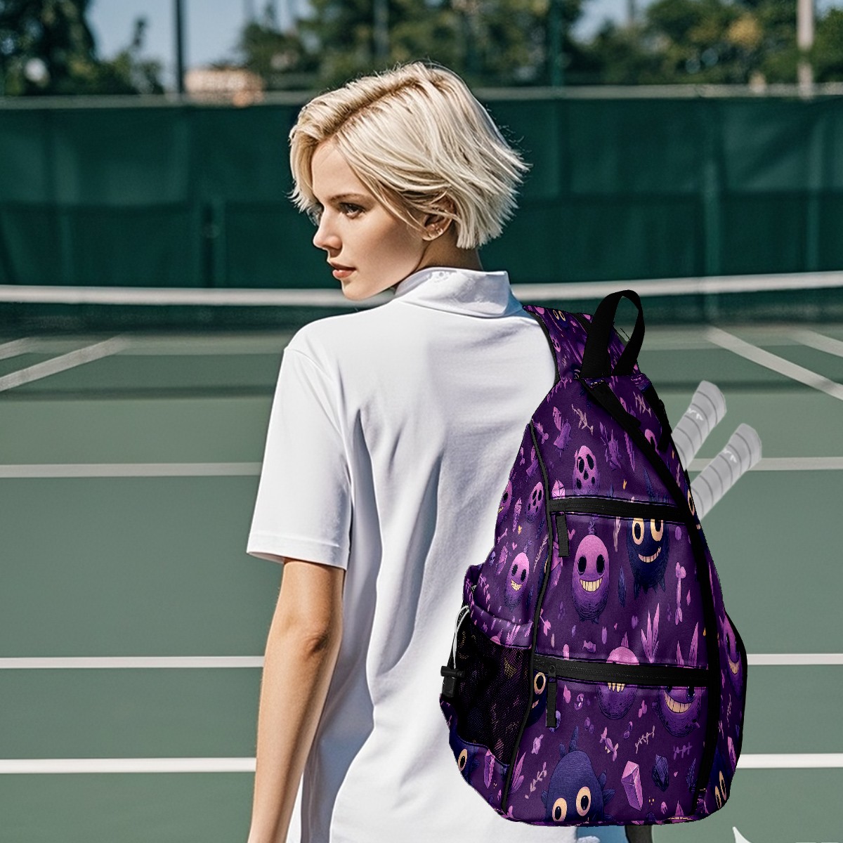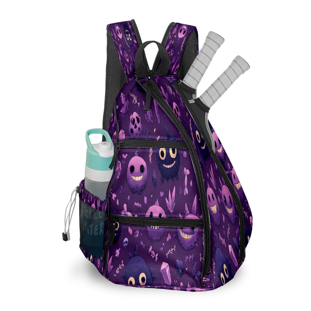 Pickleball Backpack Funny Monster Purple for Women Men - Multi-Pocket Sports Bag with Shoe Compartment | Versatile Tennis Bag & Gifts for Pickleball Lovers