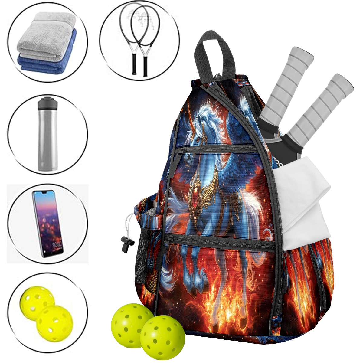 Pickleball Backpack Majestic Unicorn Blue for Women Men - Multi-Pocket Sports Bag with Shoe Compartment | Versatile Tennis Bag & Gifts for Pickleball Lovers