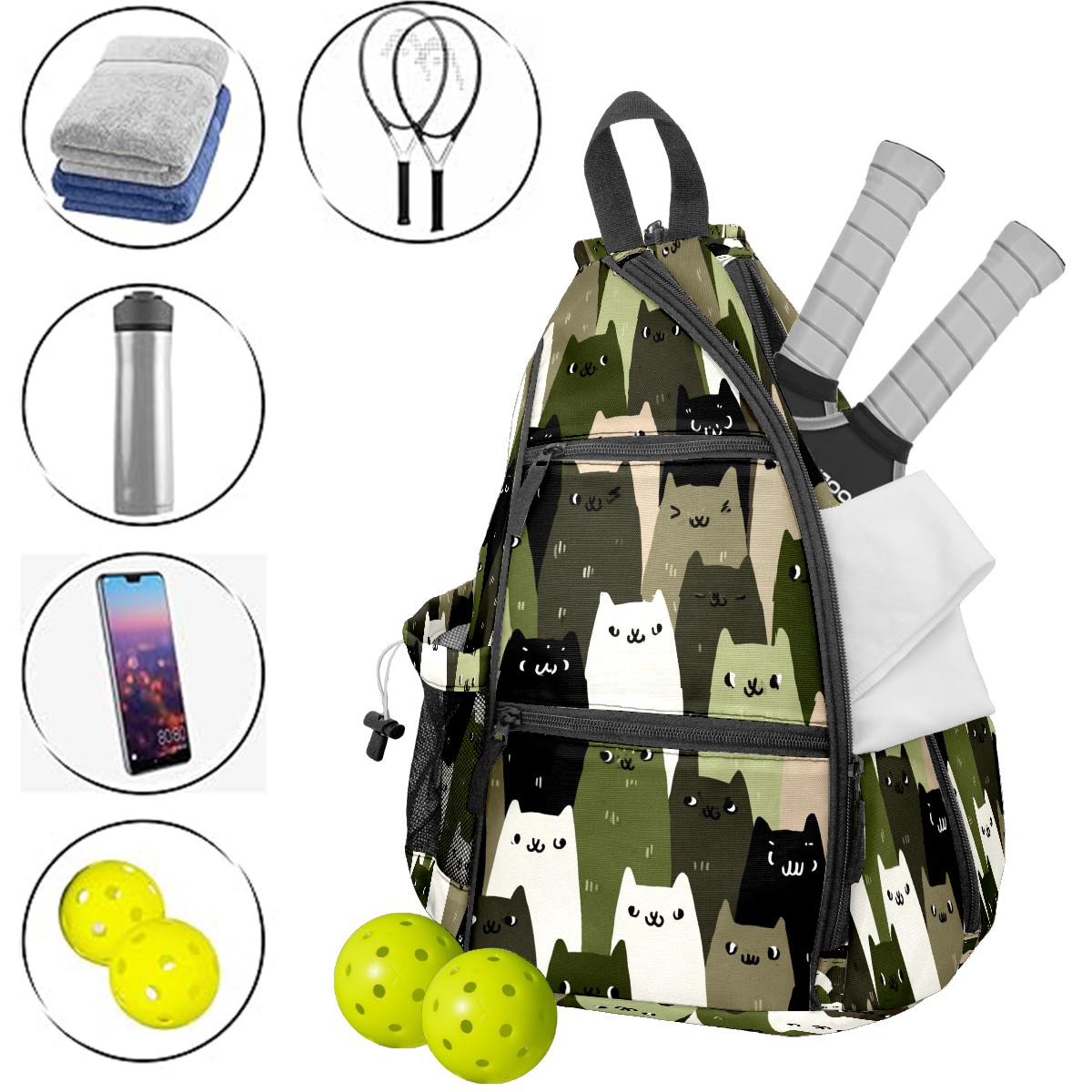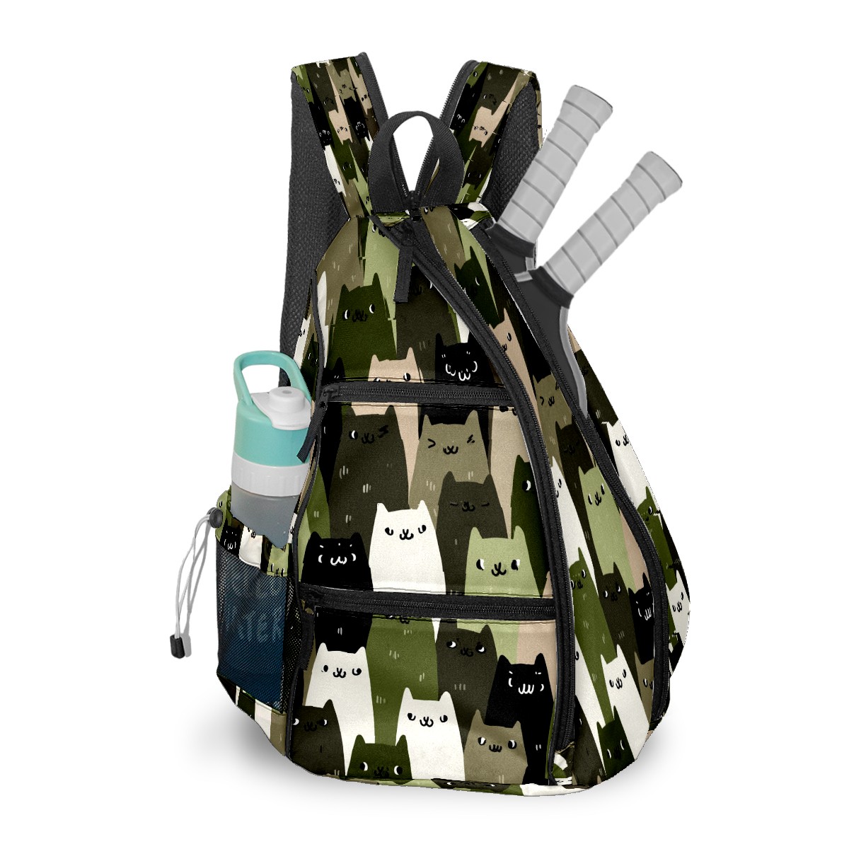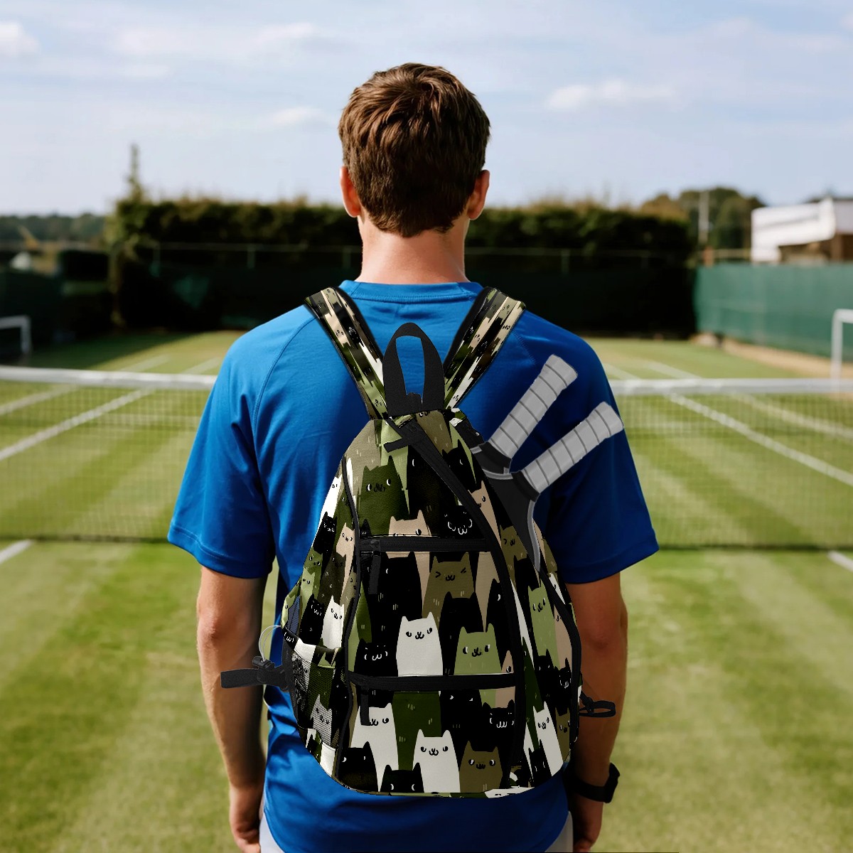 Pickleball Backpack Trendy Cat Green for Women Men - Multi-Pocket Sports Bag with Shoe Compartment | Versatile Tennis Bag & Gifts for Pickleball Lovers