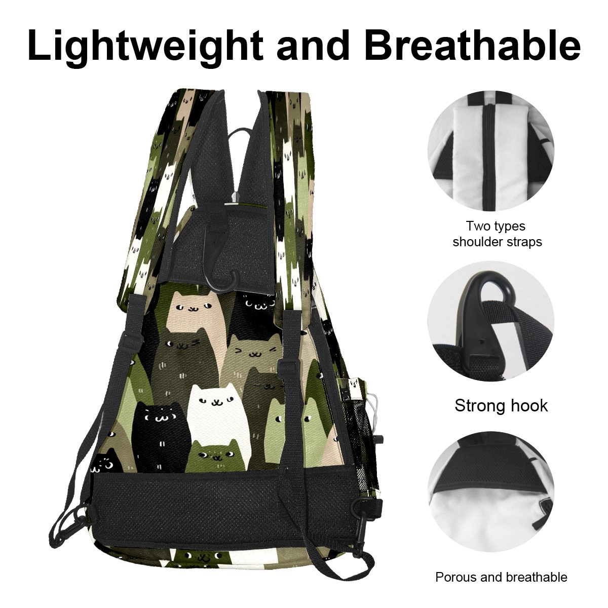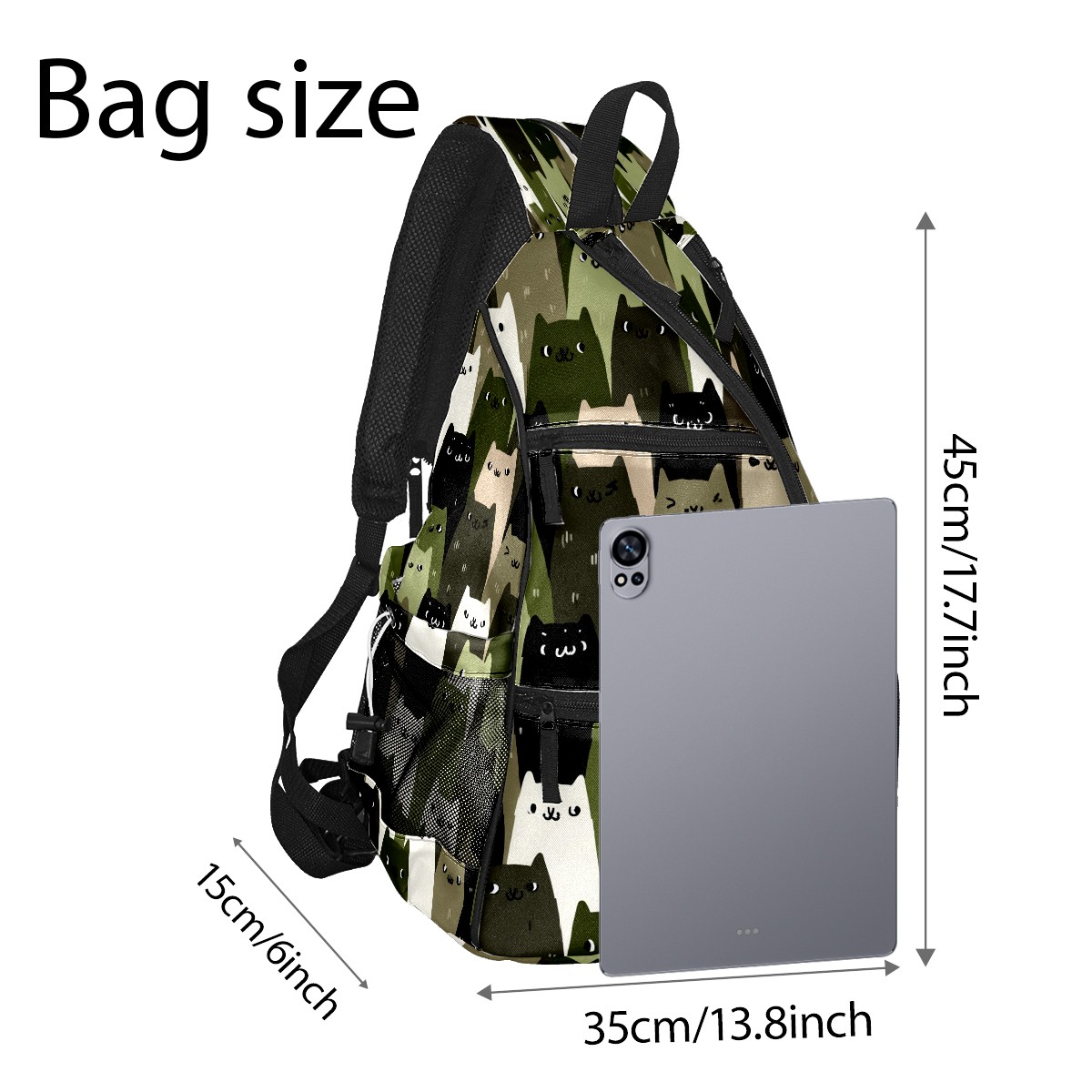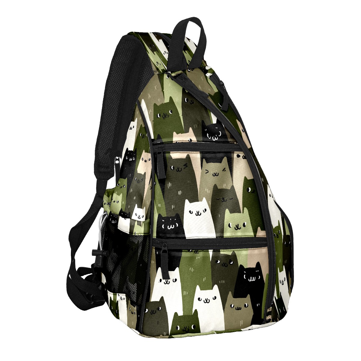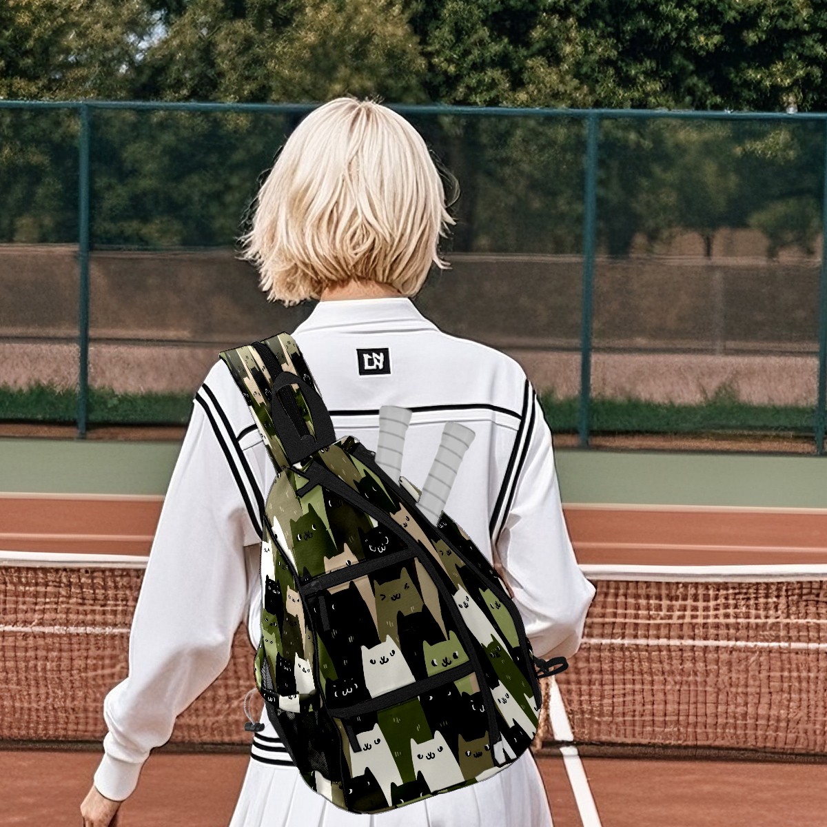 Pickleball Backpack Trendy Cat Green for Women Men - Multi-Pocket Sports Bag with Shoe Compartment | Versatile Tennis Bag & Gifts for Pickleball Lovers