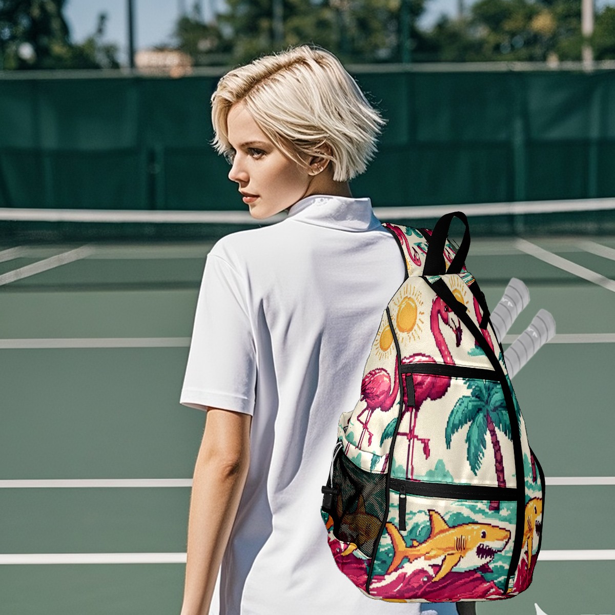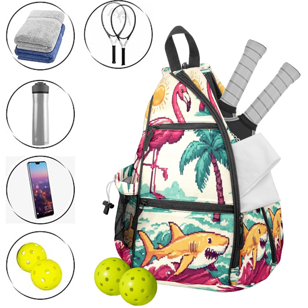 Pickleball Backpack Lively Flamingo Pink for Women Men - Multi-Pocket Sports Bag with Shoe Compartment | Versatile Tennis Bag & Gifts for Pickleball Lovers