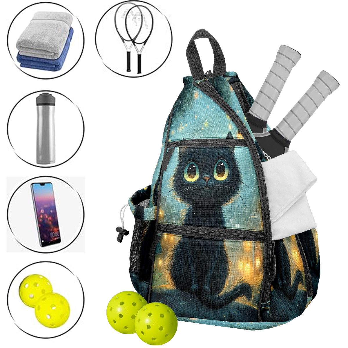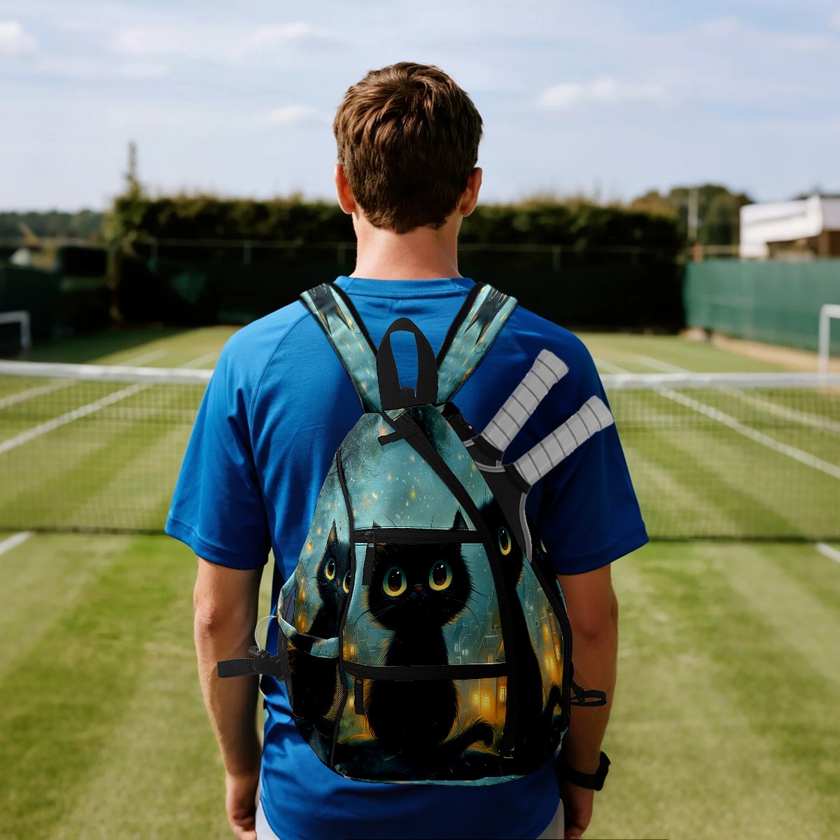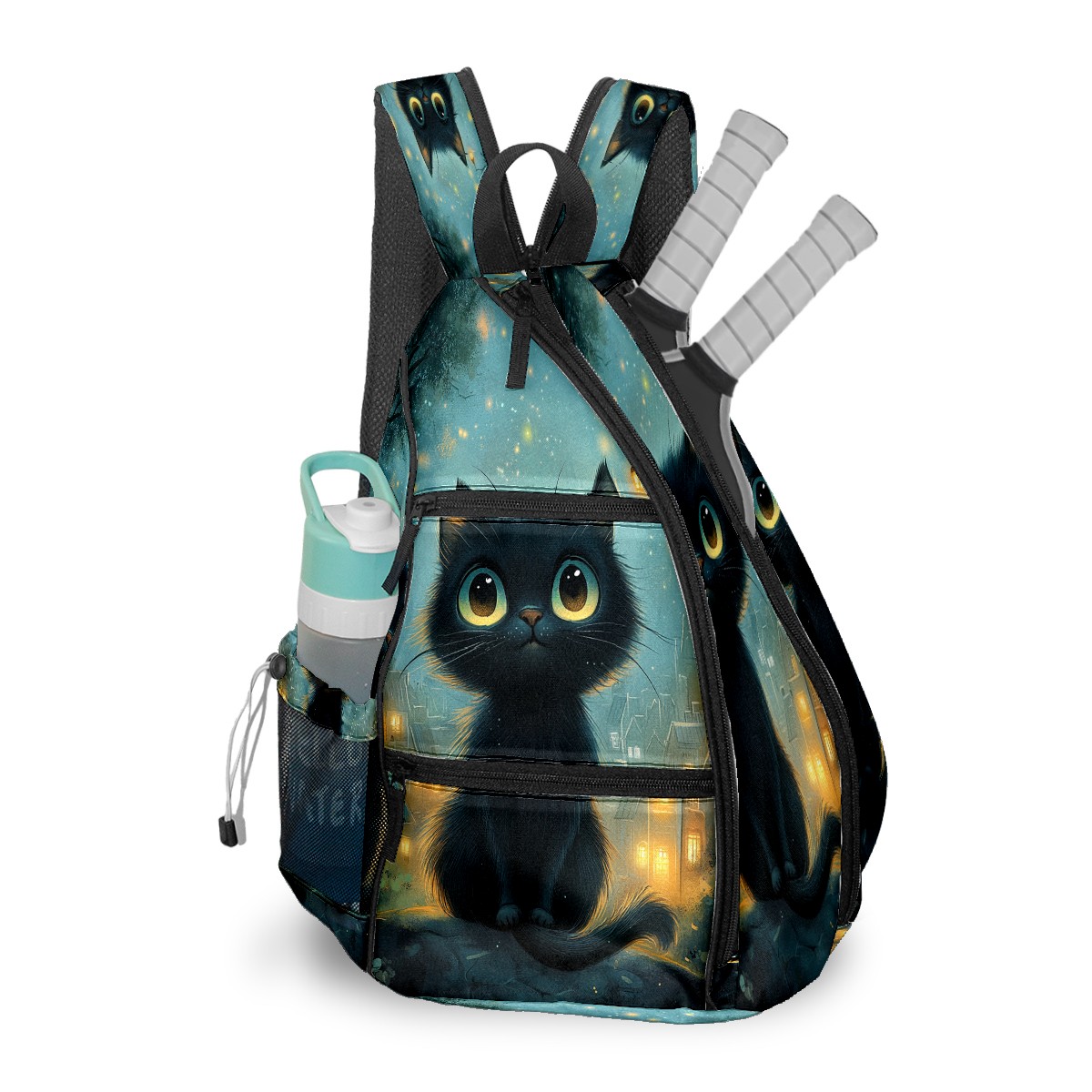 Pickleball Backpack Gentle Black Cat Blue for Women Men - Multi-Pocket Sports Bag with Shoe Compartment | Versatile Tennis Bag & Gifts for Pickleball Lovers