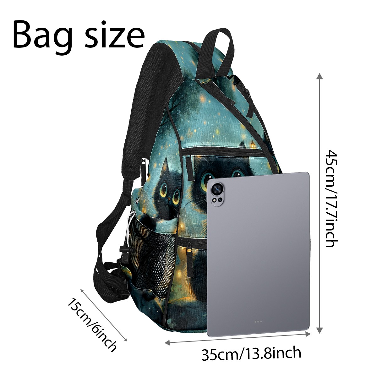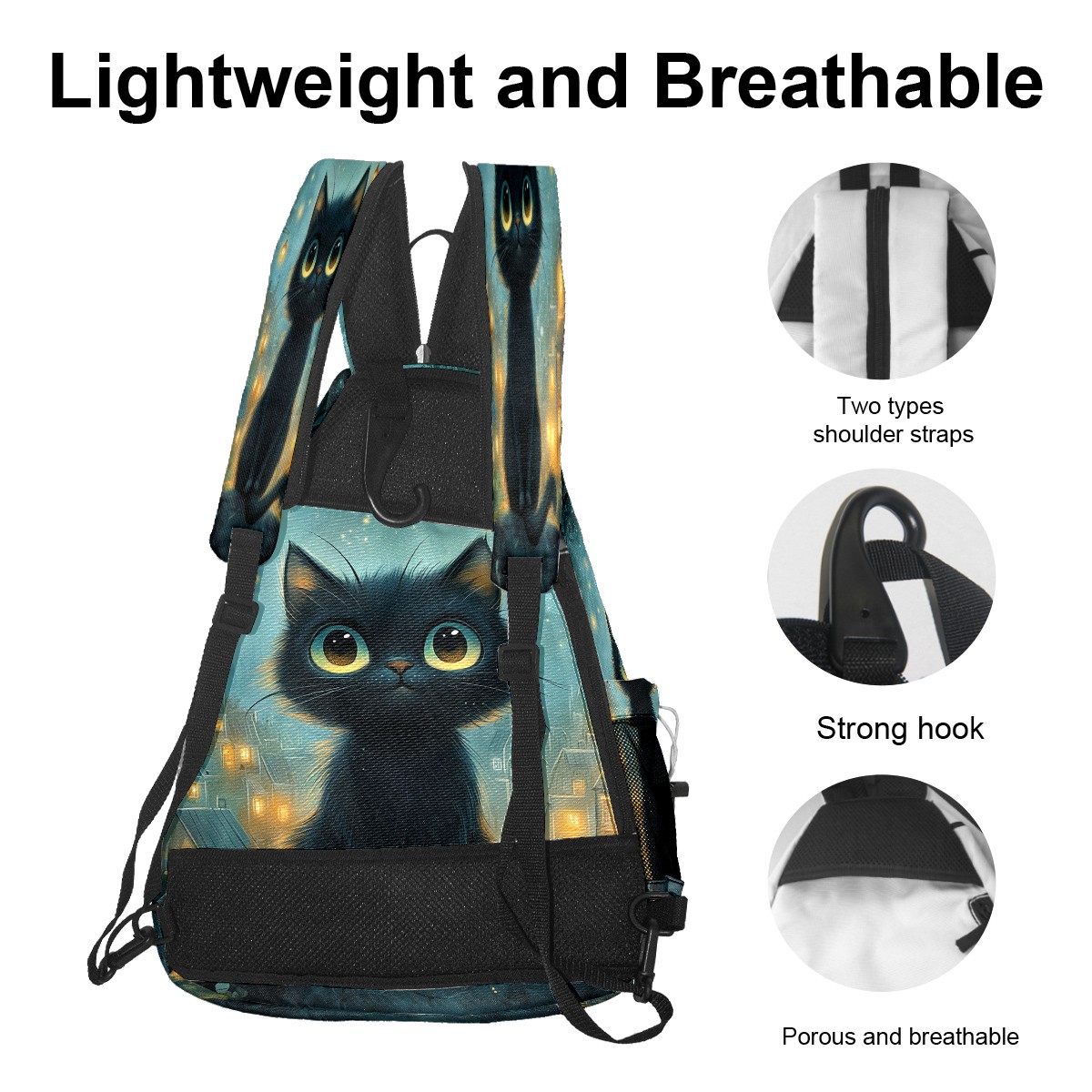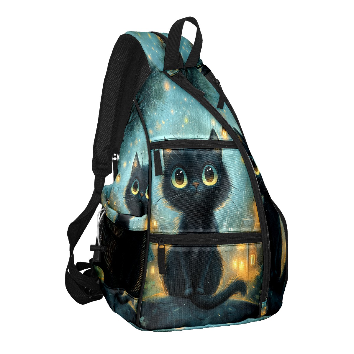 Pickleball Backpack Gentle Black Cat Blue for Women Men - Multi-Pocket Sports Bag with Shoe Compartment | Versatile Tennis Bag & Gifts for Pickleball Lovers