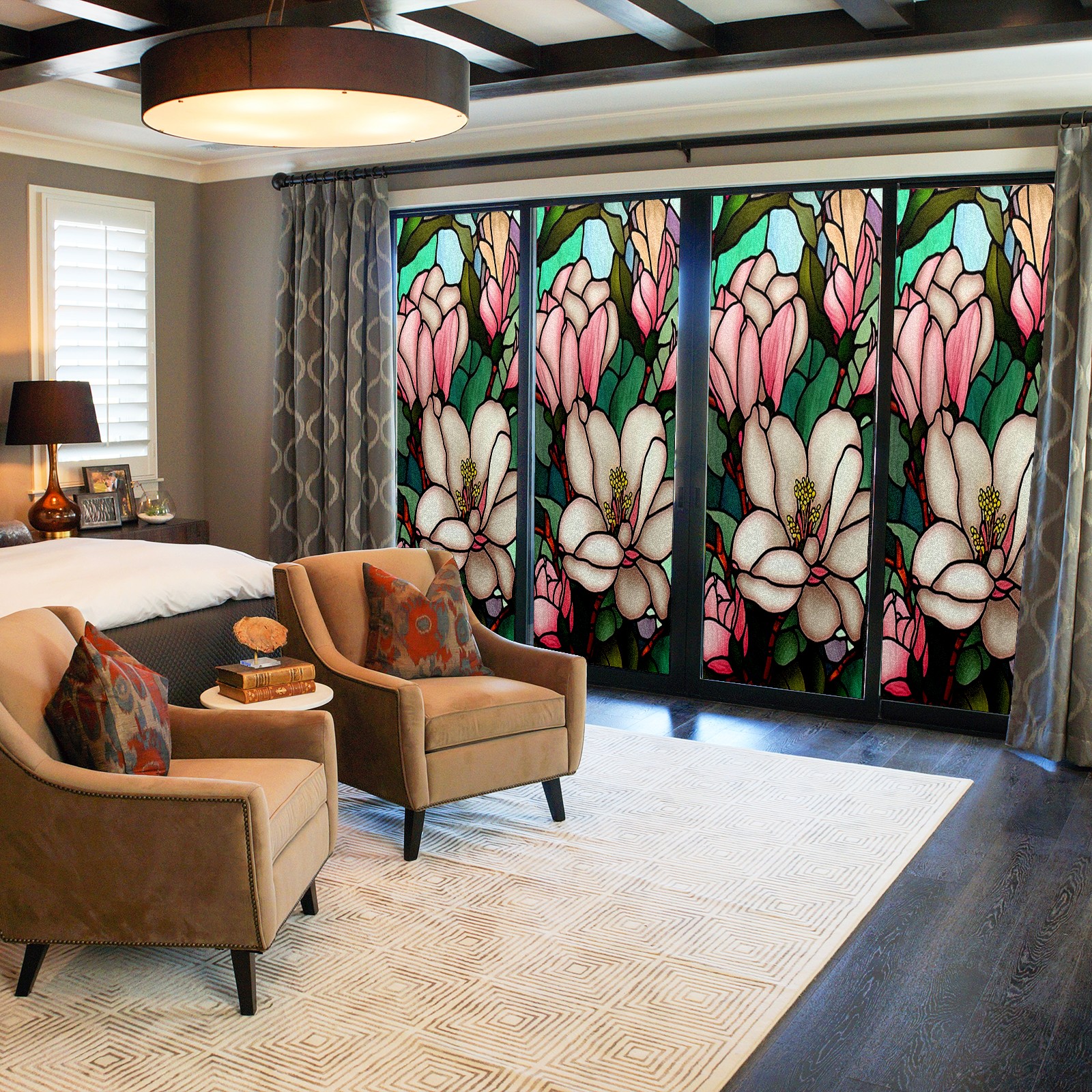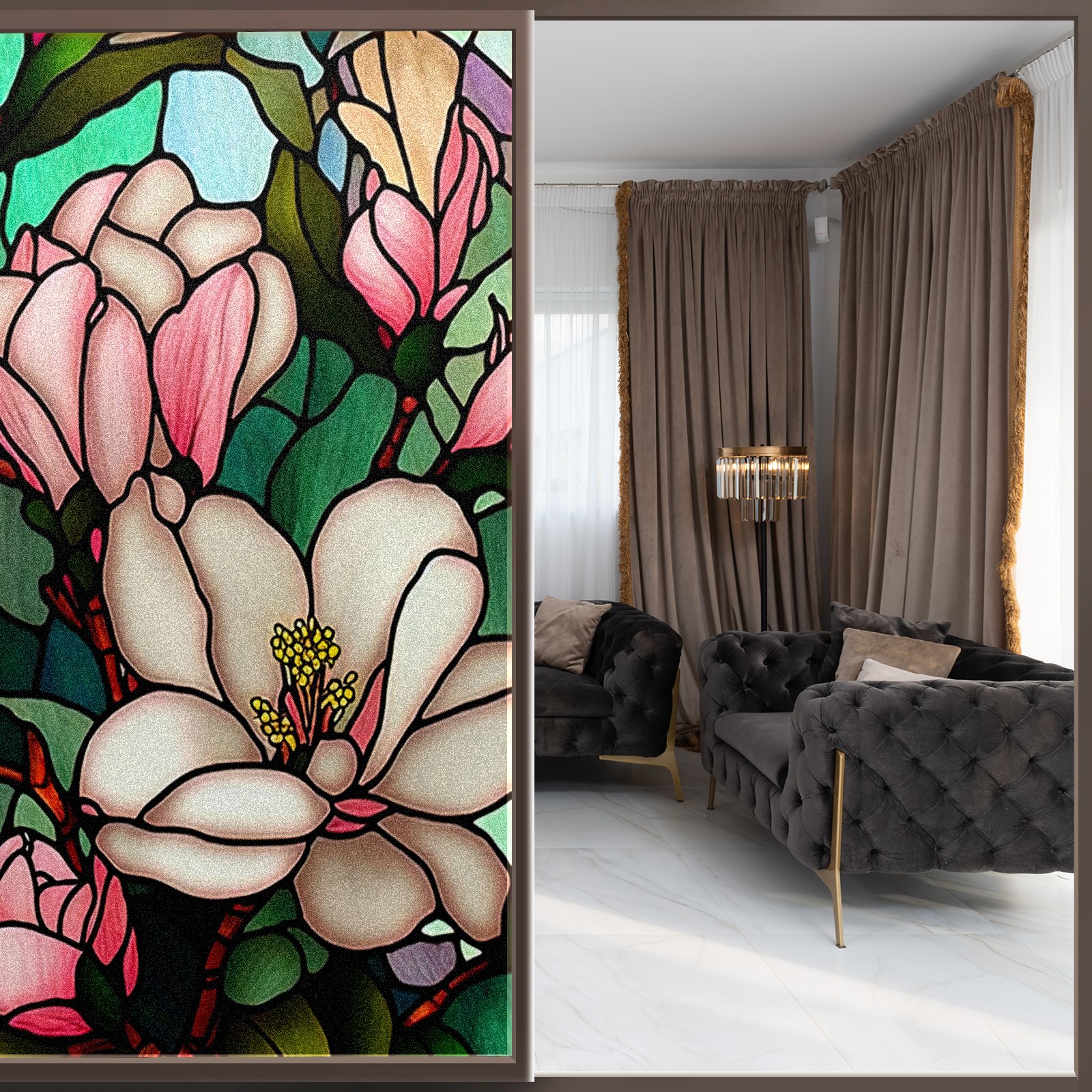 • <p><b>Privacy Protection with Aesthetic Design</b></p><p>The frosted privacy window film protection for bathrooms, bedrooms, offices, and storefronts. Its light-diffusing texture maintains natural daylight while blocking 95% of UV rays and external visibility. Our window glass films offers excellent sun blocking capabilities, effectively reducing heat and glare, give privacy while still allowing natural soft light in.This window glass films with graphic printings, bright and vivid color, long term non fading</p><p><b>Effortless Installation &amp; Versatile Application</b></p><p>This frosted window film works perfectly for bathroom glass partitions, bedroom bay windows, kitchen sliding doors, office dividers, and storefront windows. With a 3-step installation process (clean, spray, smooth), it takes just 10 minutes to transform any glass surface. The film is trimmable for custom sizes and shapes, compatible with curved or unique glass designs.&nbsp;</p><p><b>We have various sizes and patterns, and there is always one that meets your preferences. Welcome to purchase Counullo frosted glass sticker.</b></p>