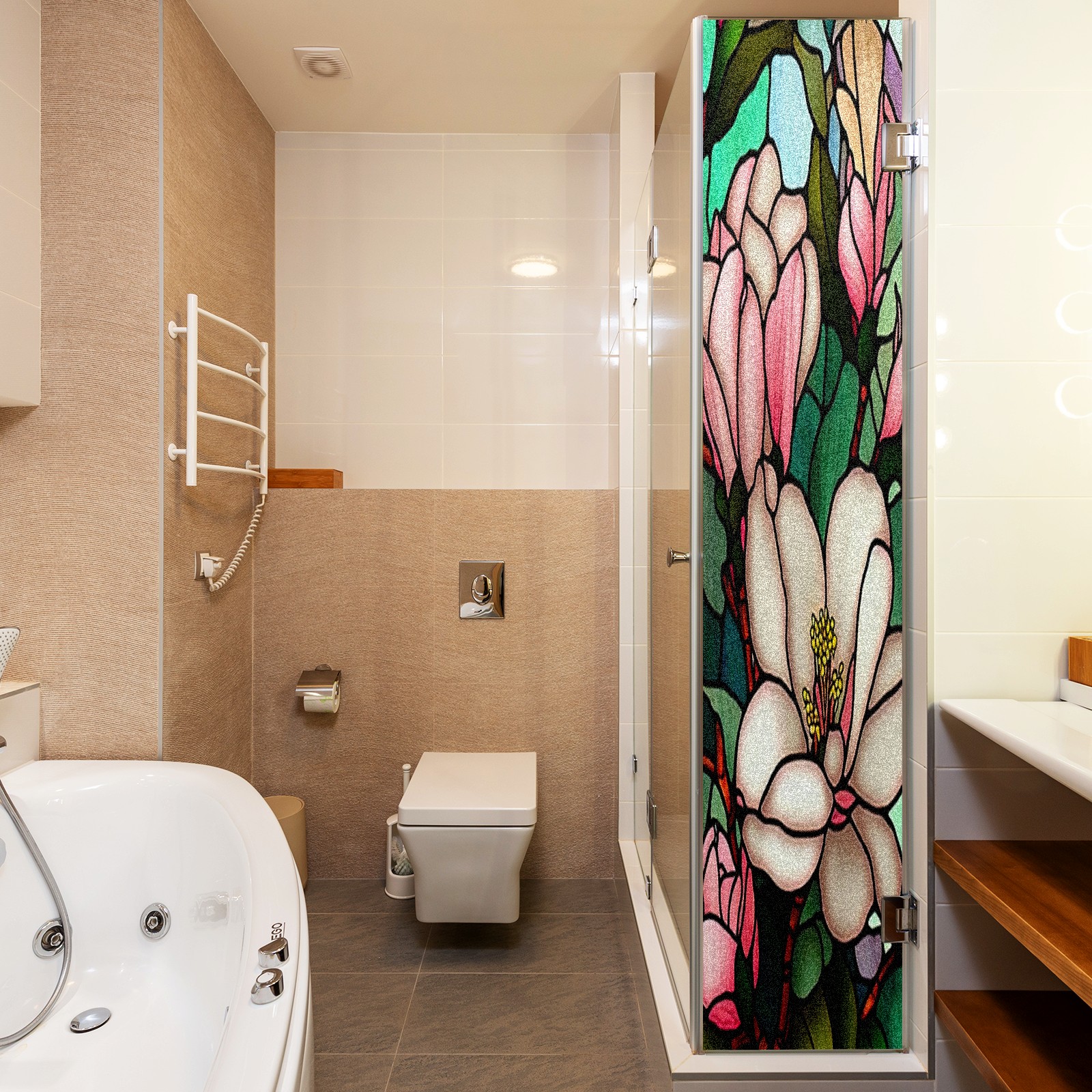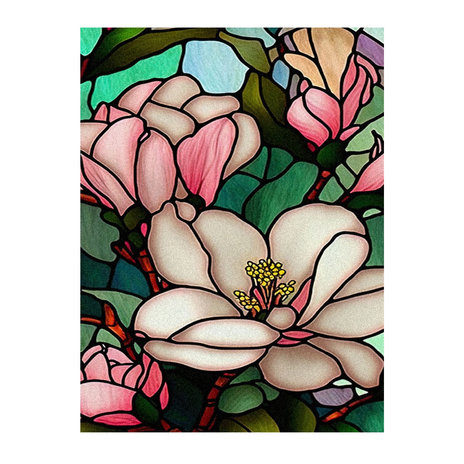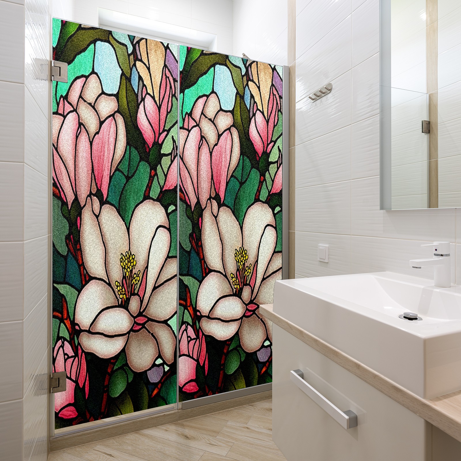 Window Privacy Film Frosted Stained Glass Film Decorative Static Cling for Bathroom Home Office Peel and Stick Window Film Pink Flowers Leaves(17.7x23.6in)