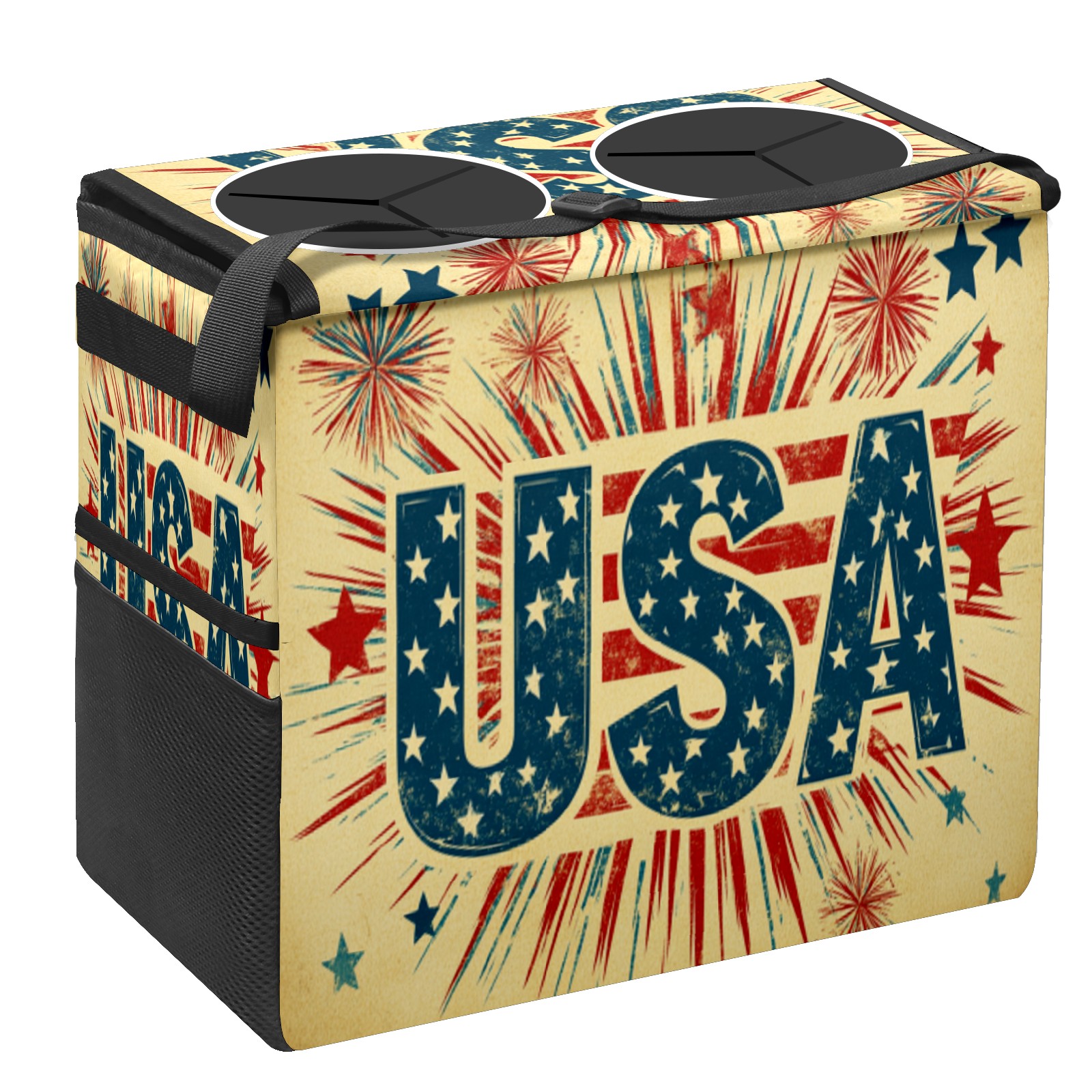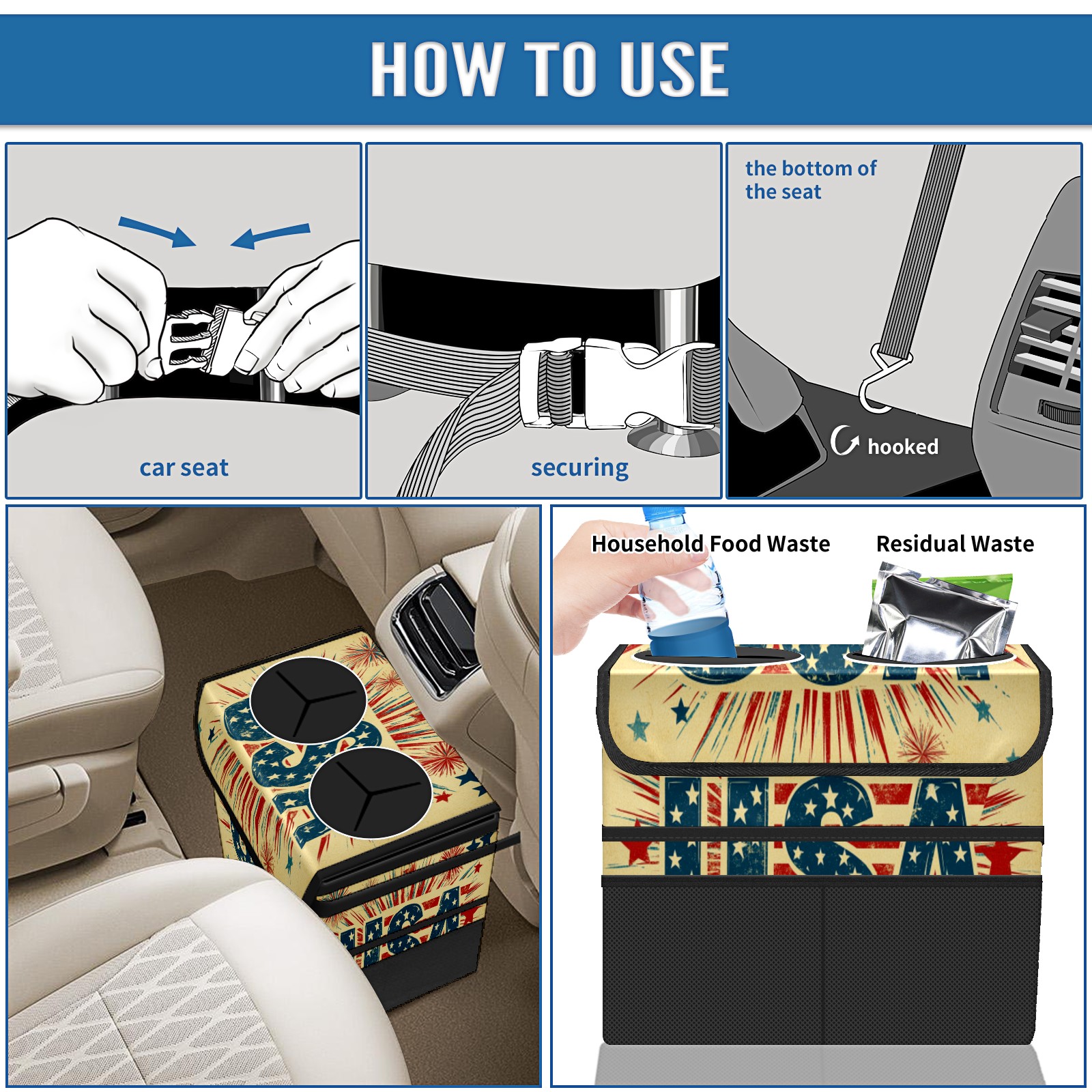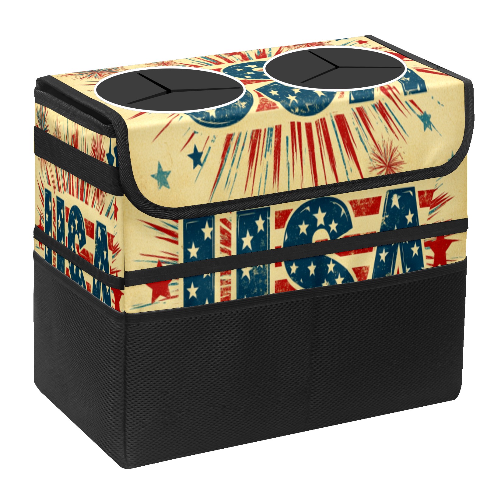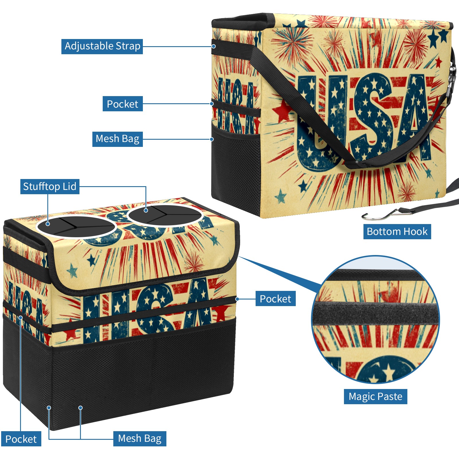 Car Trash Can with Lid & Multiple Pockets ,Foldable Large Capacity Vehicle Garbage Bin Waterproof & Leak Proof Automotive Garbage Cans Car Accessories for Women Men USA Pride