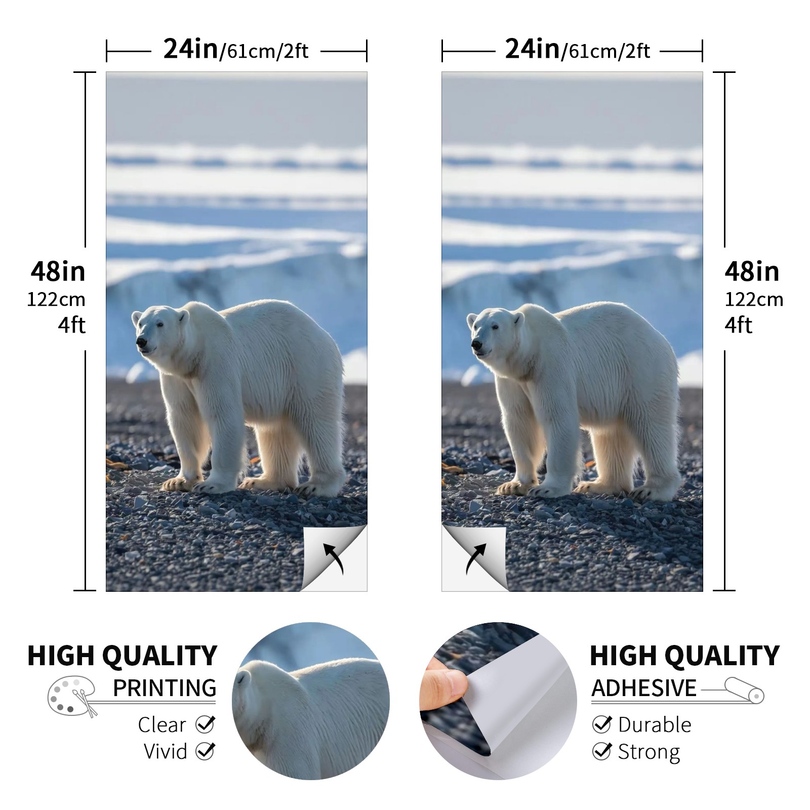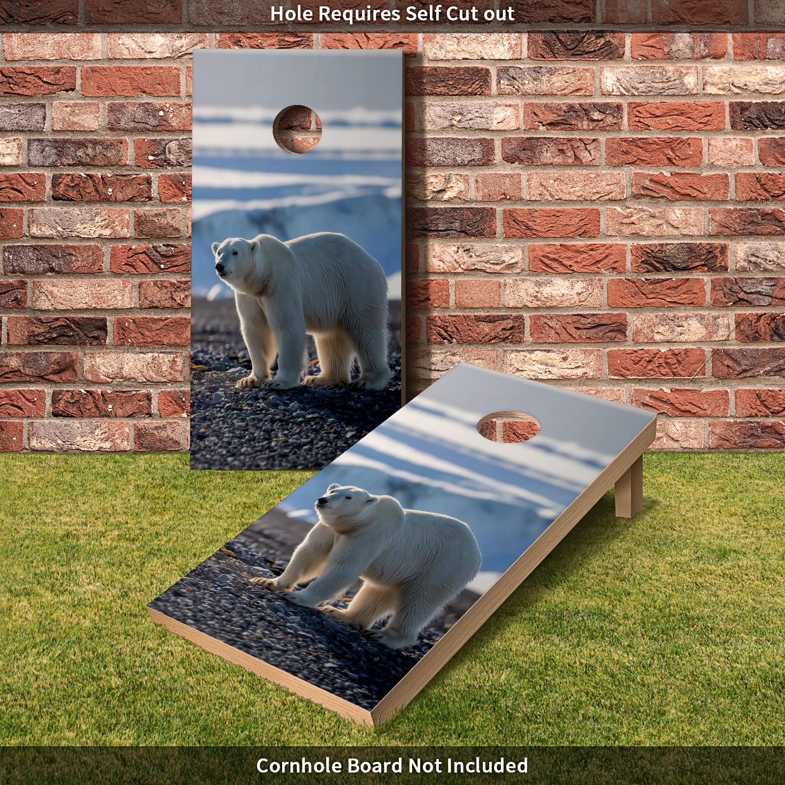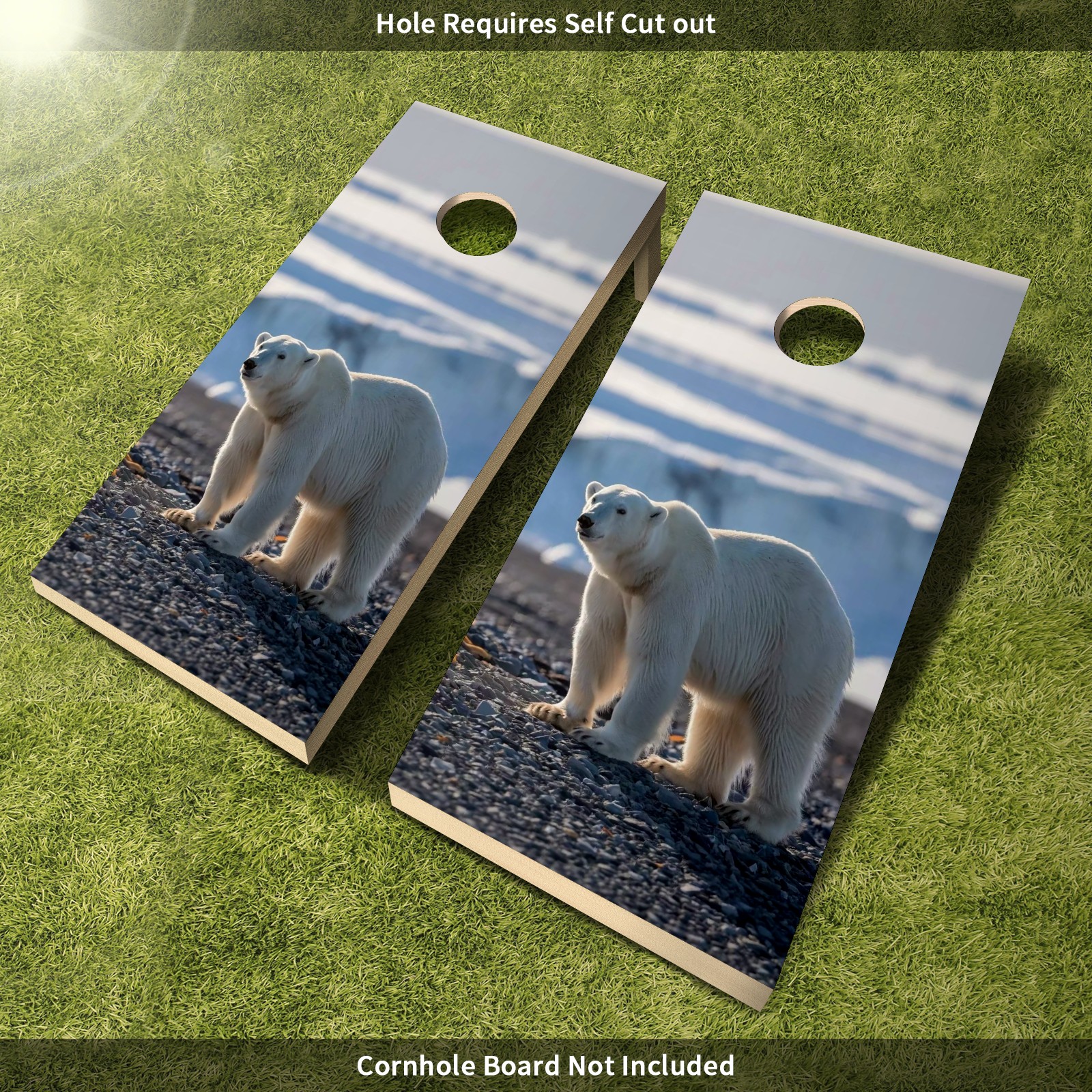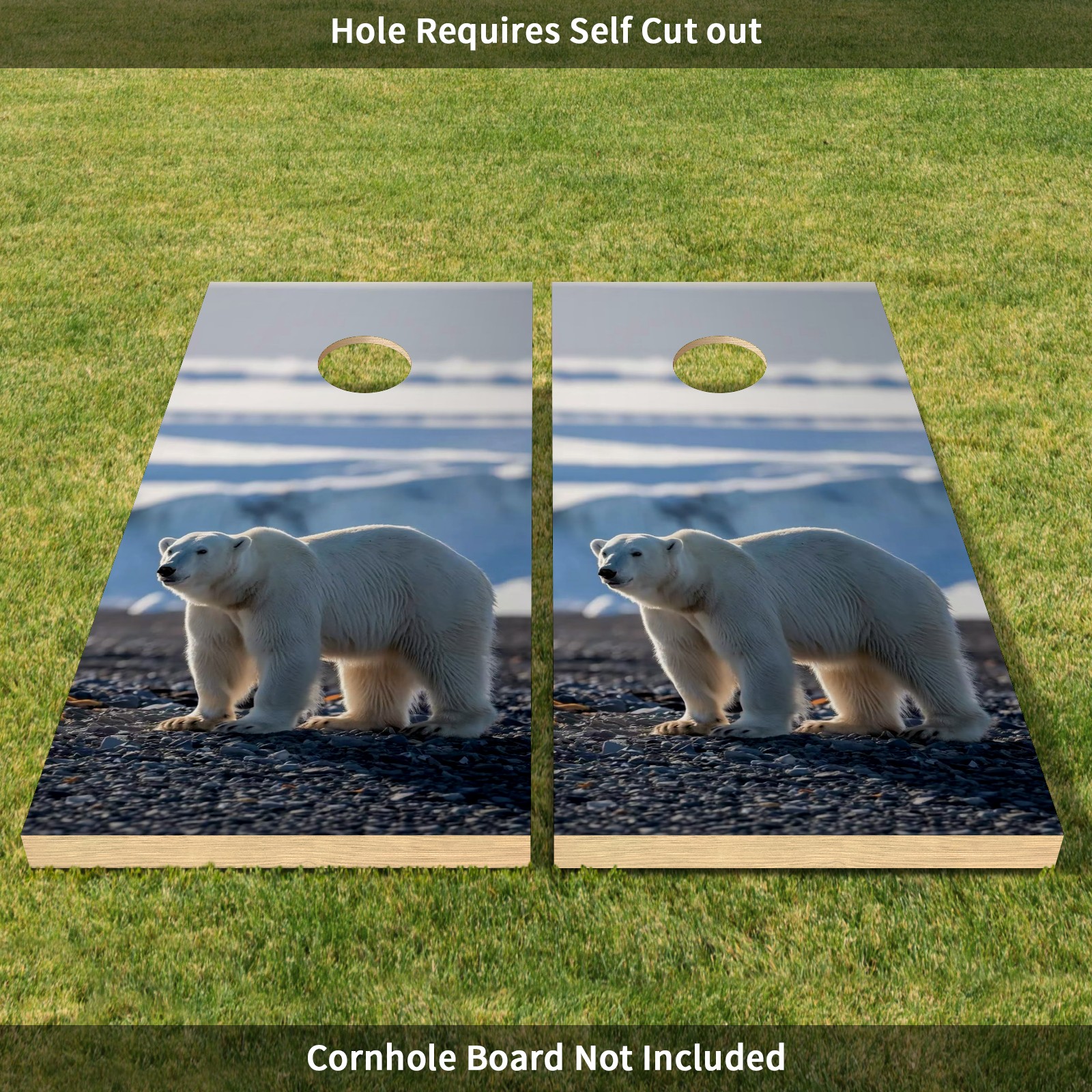 Cornhole Game Sticker- Wild Polar Bear Vinyl Skin, Perfect for Family Events, Social Gatherings, Decorative Games Stickers Dimensions: 2' x 4' - Set of 2