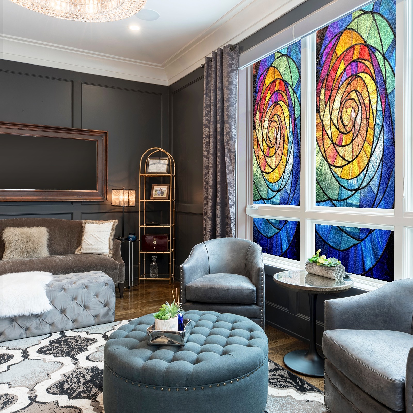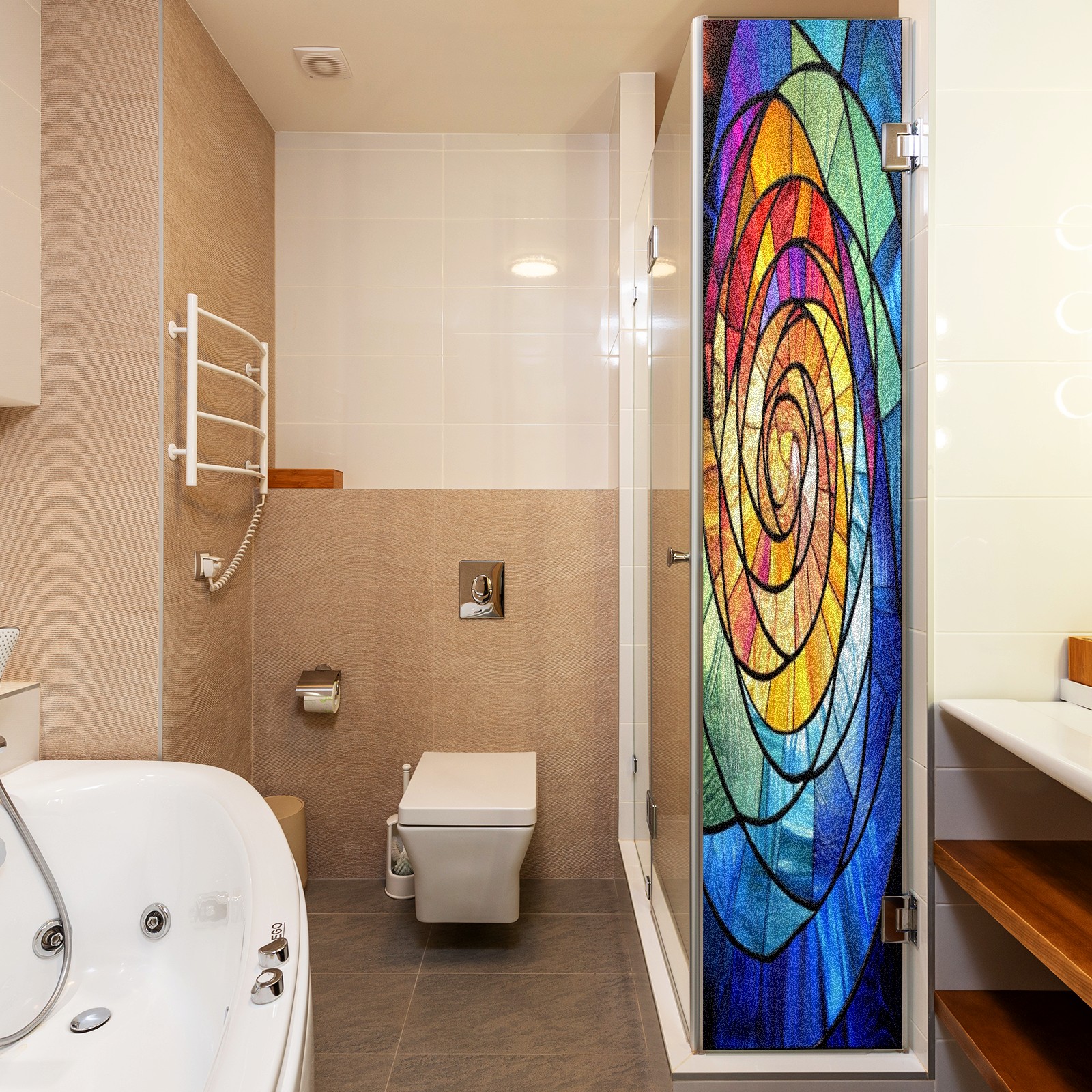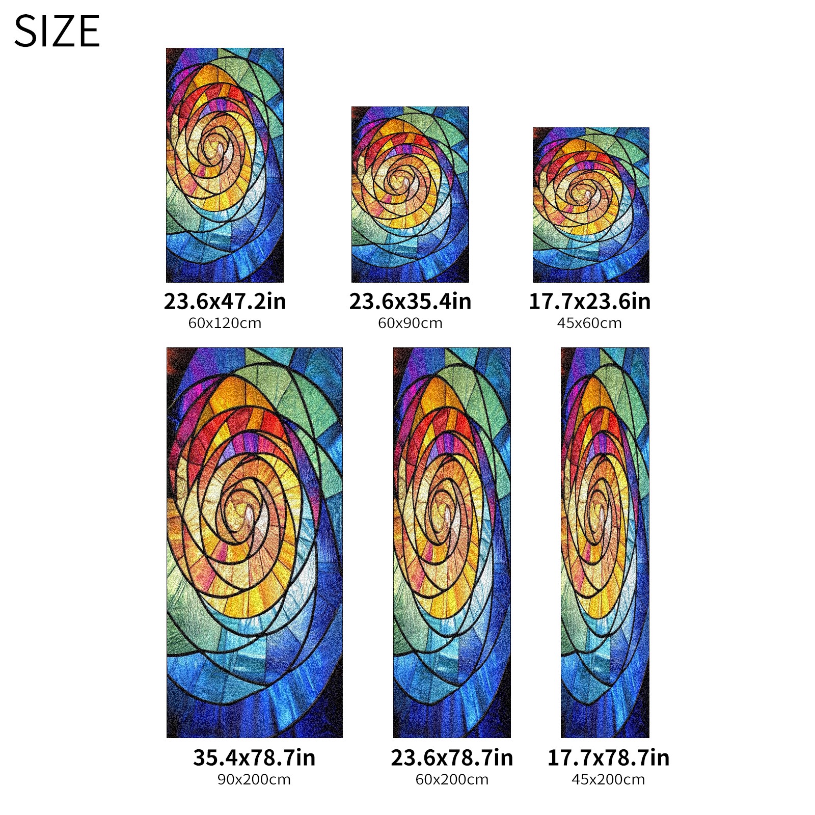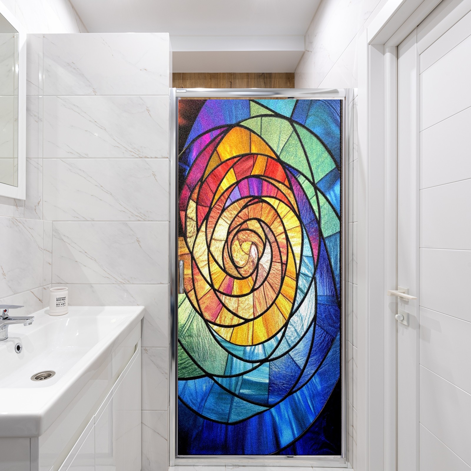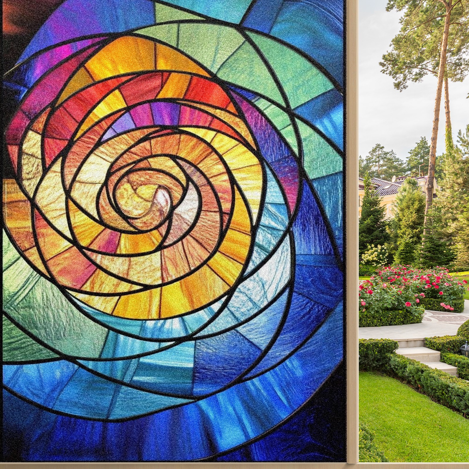 Window Privacy Film Frosted Stained Glass Film Decorative Static Cling for Bathroom Home Office Peel and Stick Window Film Rainbow Spiral(17.7x23.6in)