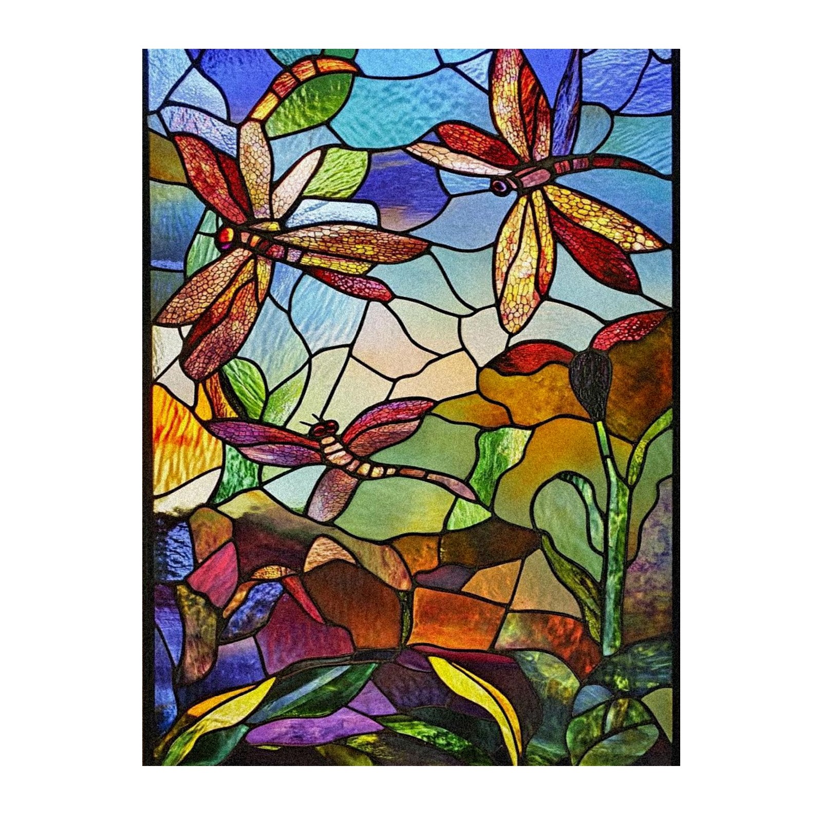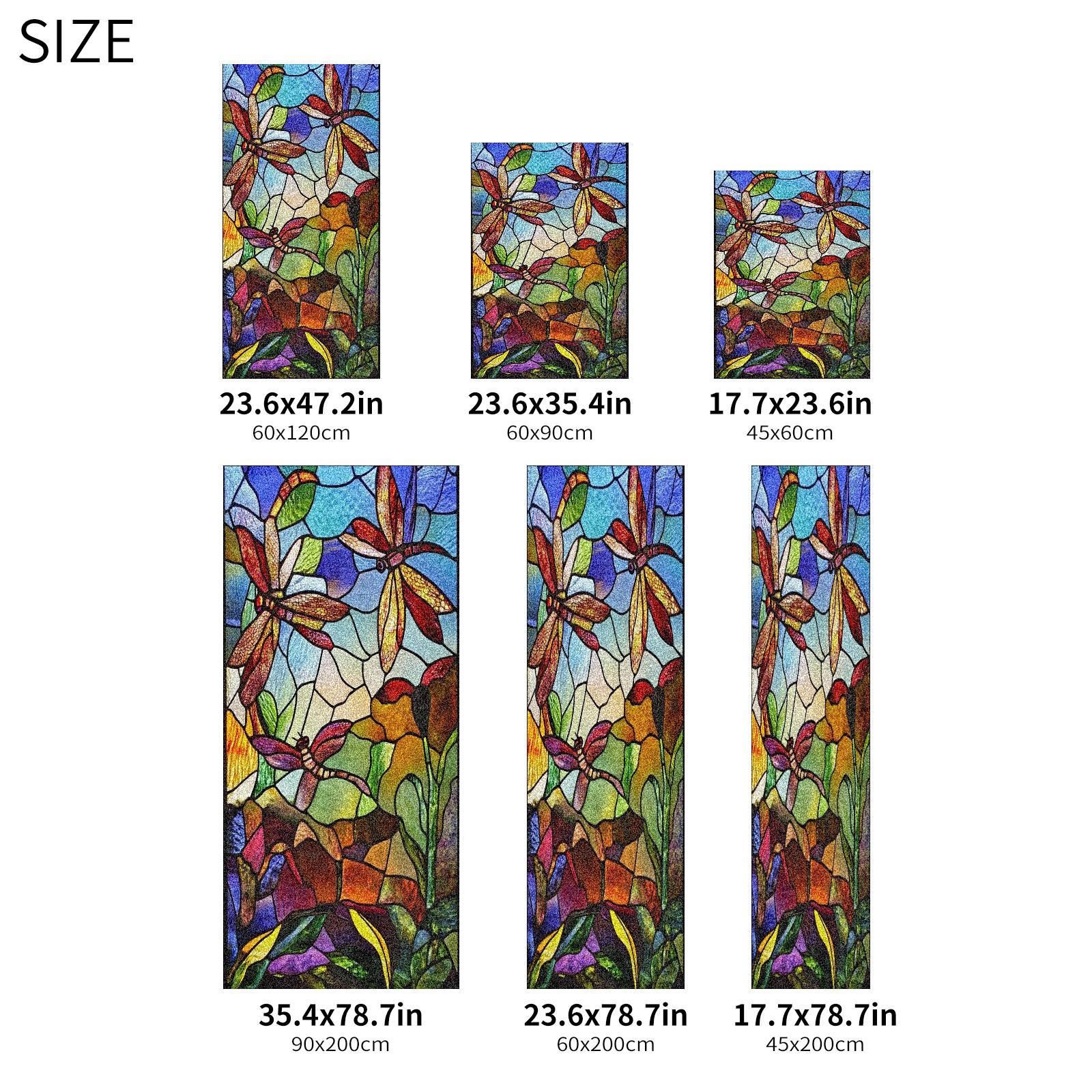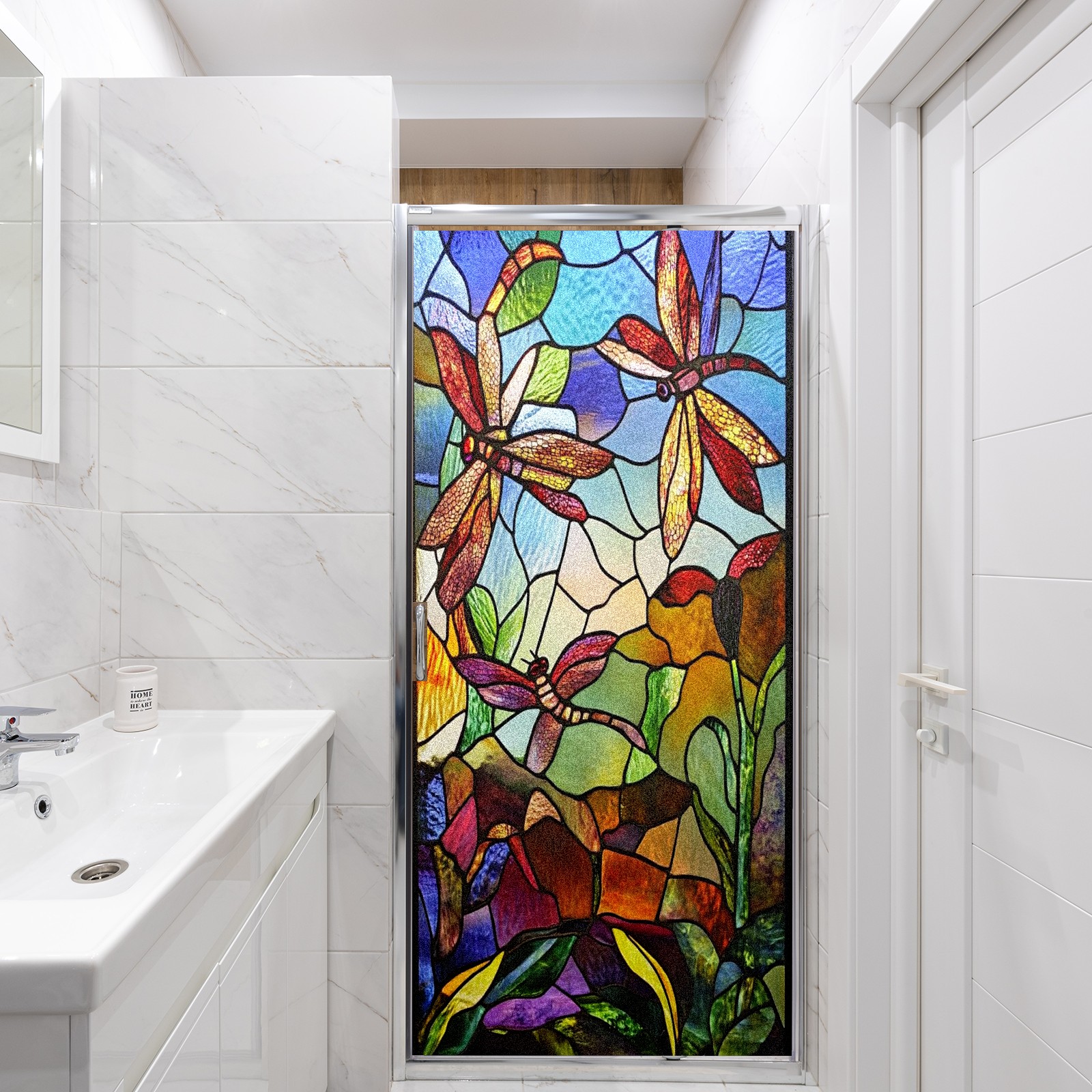 Window Privacy Film Frosted Stained Glass Film Decorative Static Cling for Bathroom Home Office Peel and Stick Window Film Vintage Colorful Dragonfly(17.7x23.6in)