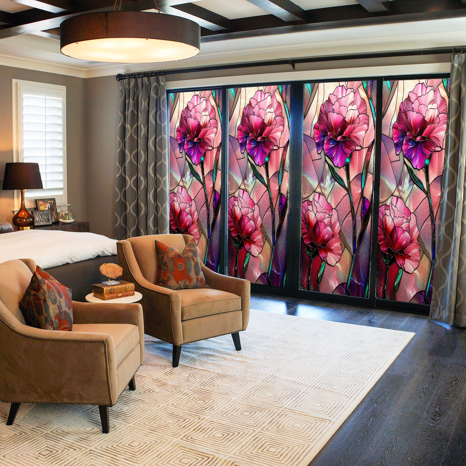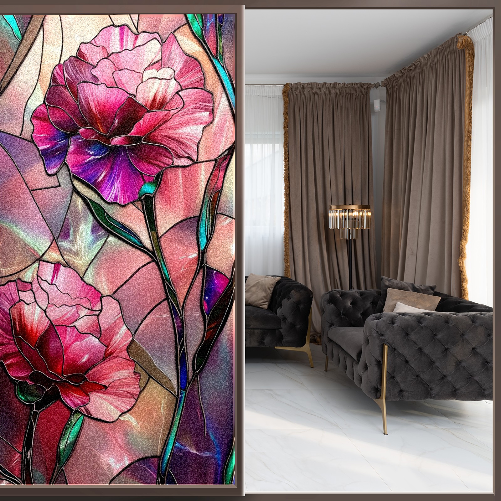 • <p><b>Privacy Protection with Aesthetic Design</b></p><p>The frosted privacy window film protection for bathrooms, bedrooms, offices, and storefronts. Its light-diffusing texture maintains natural daylight while blocking 95% of UV rays and external visibility. Our window glass films offers excellent sun blocking capabilities, effectively reducing heat and glare, give privacy while still allowing natural soft light in.This window glass films with graphic printings, bright and vivid color, long term non fading</p><p><b>Effortless Installation &amp; Versatile Application</b></p><p>This frosted window film works perfectly for bathroom glass partitions, bedroom bay windows, kitchen sliding doors, office dividers, and storefront windows. With a 3-step installation process (clean, spray, smooth), it takes just 10 minutes to transform any glass surface. The film is trimmable for custom sizes and shapes, compatible with curved or unique glass designs.&nbsp;</p><p><b>We have various sizes and patterns, and there is always one that meets your preferences. Welcome to purchase Counullo frosted glass sticker.</b></p>