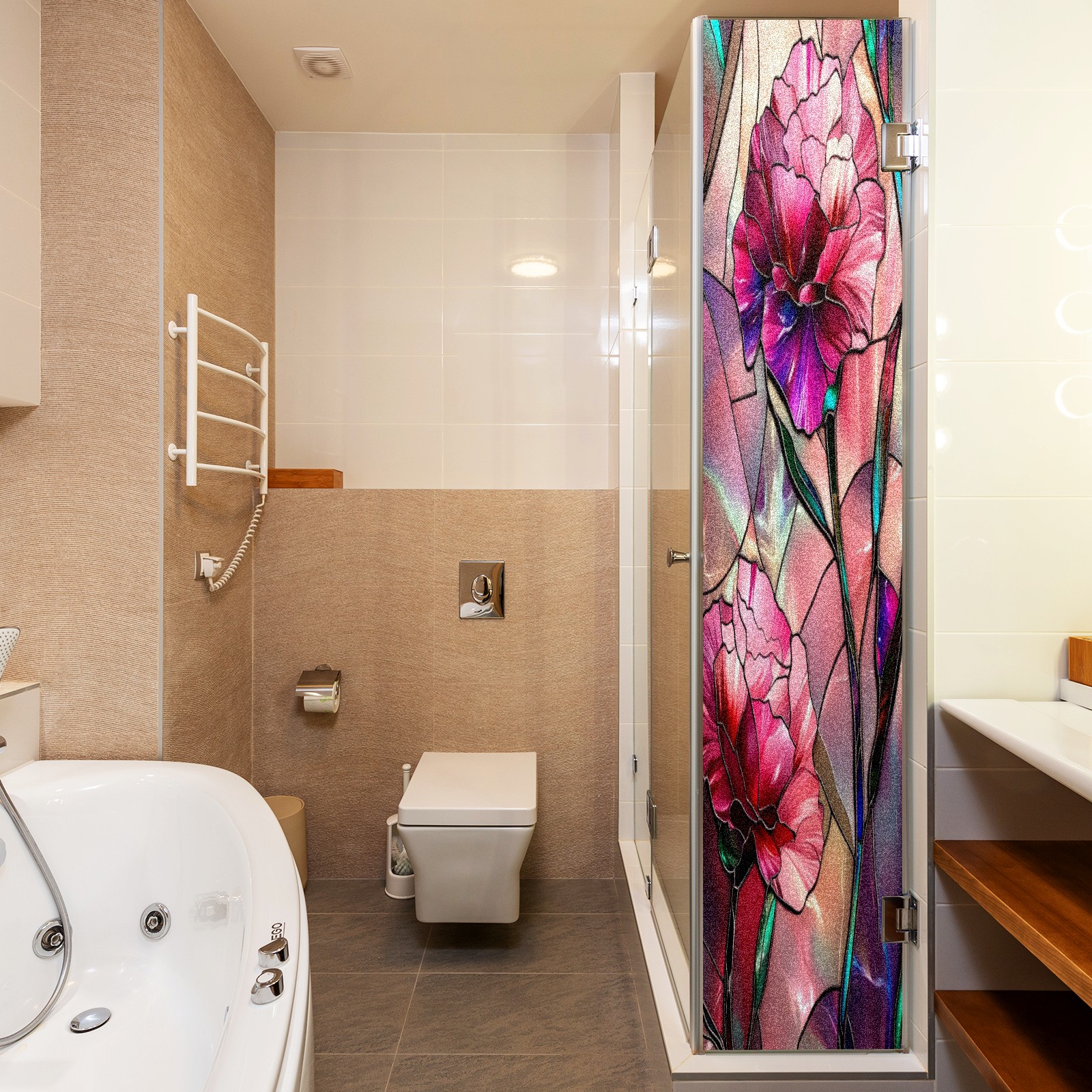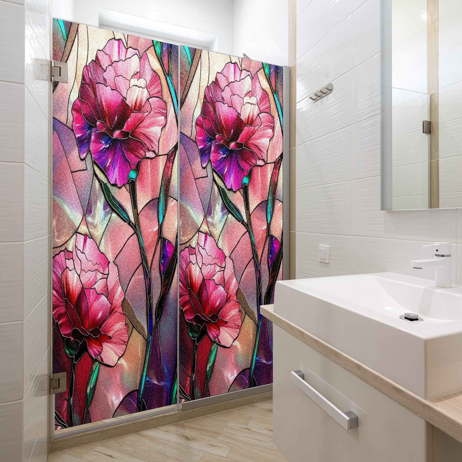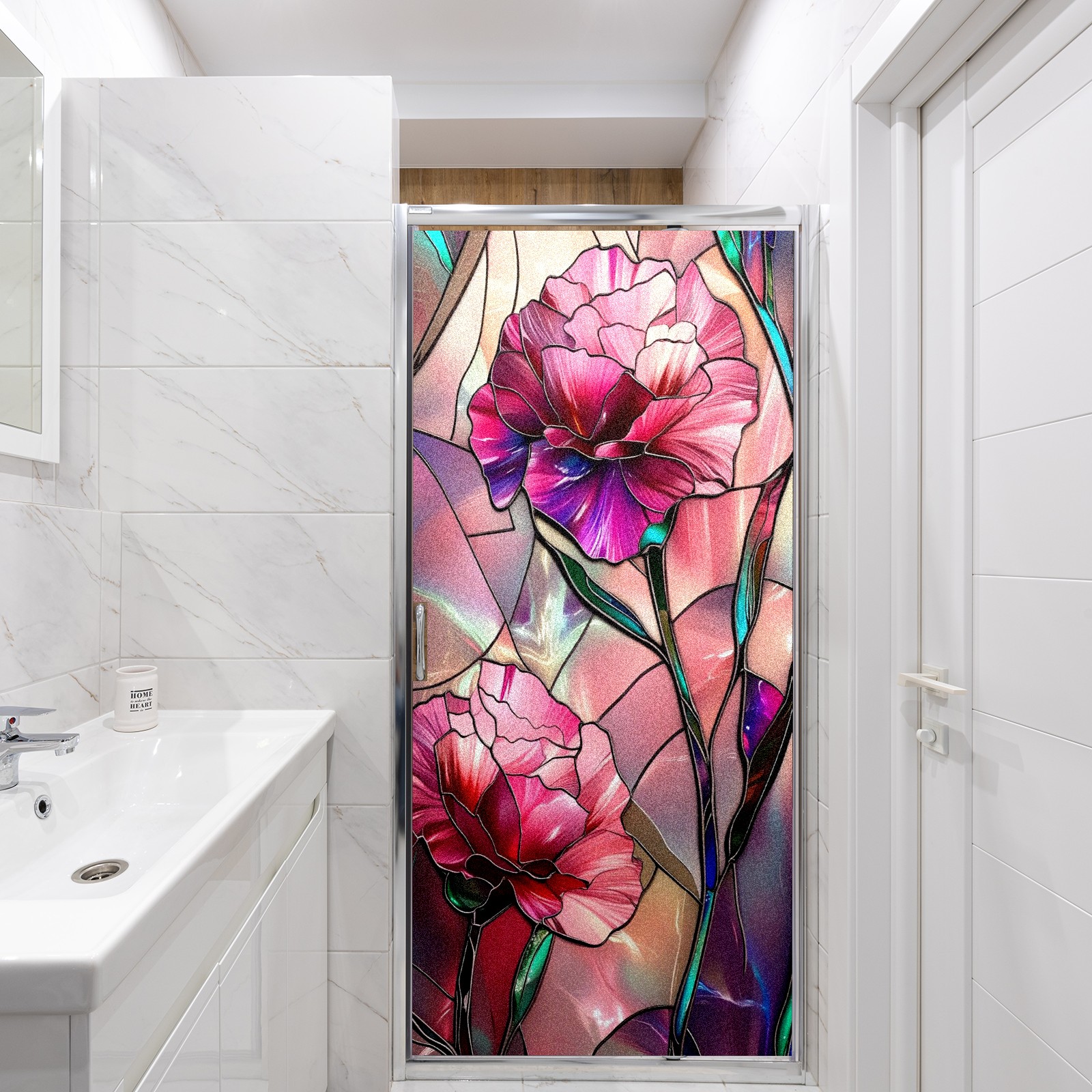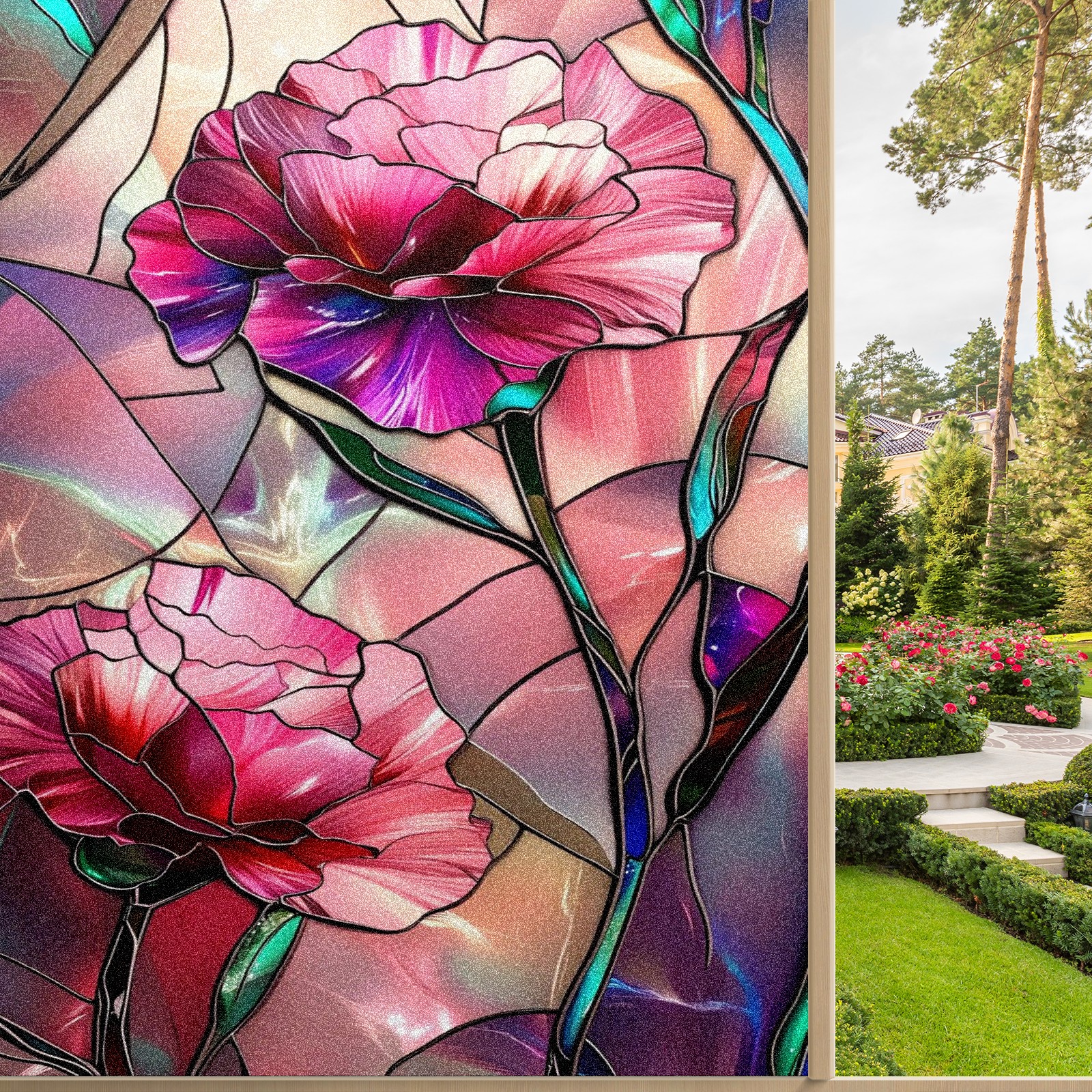 Window Privacy Film Frosted Stained Glass Film Decorative Static Cling for Bathroom Home Office Peel and Stick Window Film Pink Flowers(17.7x23.6in)