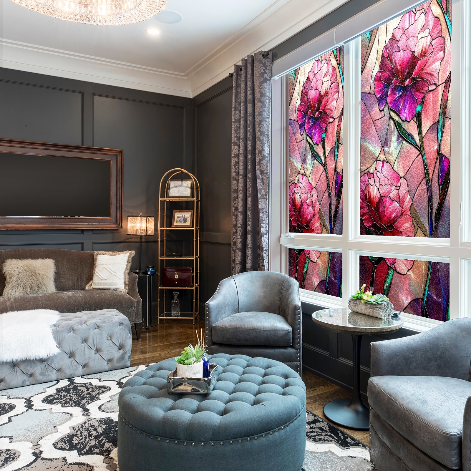 <p><b>Privacy Protection with Aesthetic Design</b></p><p>The frosted privacy window film protection for bathrooms, bedrooms, offices, and storefronts. Its light-diffusing texture maintains natural daylight while blocking 95% of UV rays and external visibility. Our window glass films offers excellent sun blocking capabilities, effectively reducing heat and glare, give privacy while still allowing natural soft light in.This window glass films with graphic printings, bright and vivid color, long term non fading</p><p><b>Effortless Installation &amp; Versatile Application</b></p><p>This frosted window film works perfectly for bathroom glass partitions, bedroom bay windows, kitchen sliding doors, office dividers, and storefront windows. With a 3-step installation process (clean, spray, smooth), it takes just 10 minutes to transform any glass surface. The film is trimmable for custom sizes and shapes, compatible with curved or unique glass designs.&nbsp;</p><p><b>We have various sizes and patterns, and there is always one that meets your preferences. Welcome to purchase Counullo frosted glass sticker.</b></p>