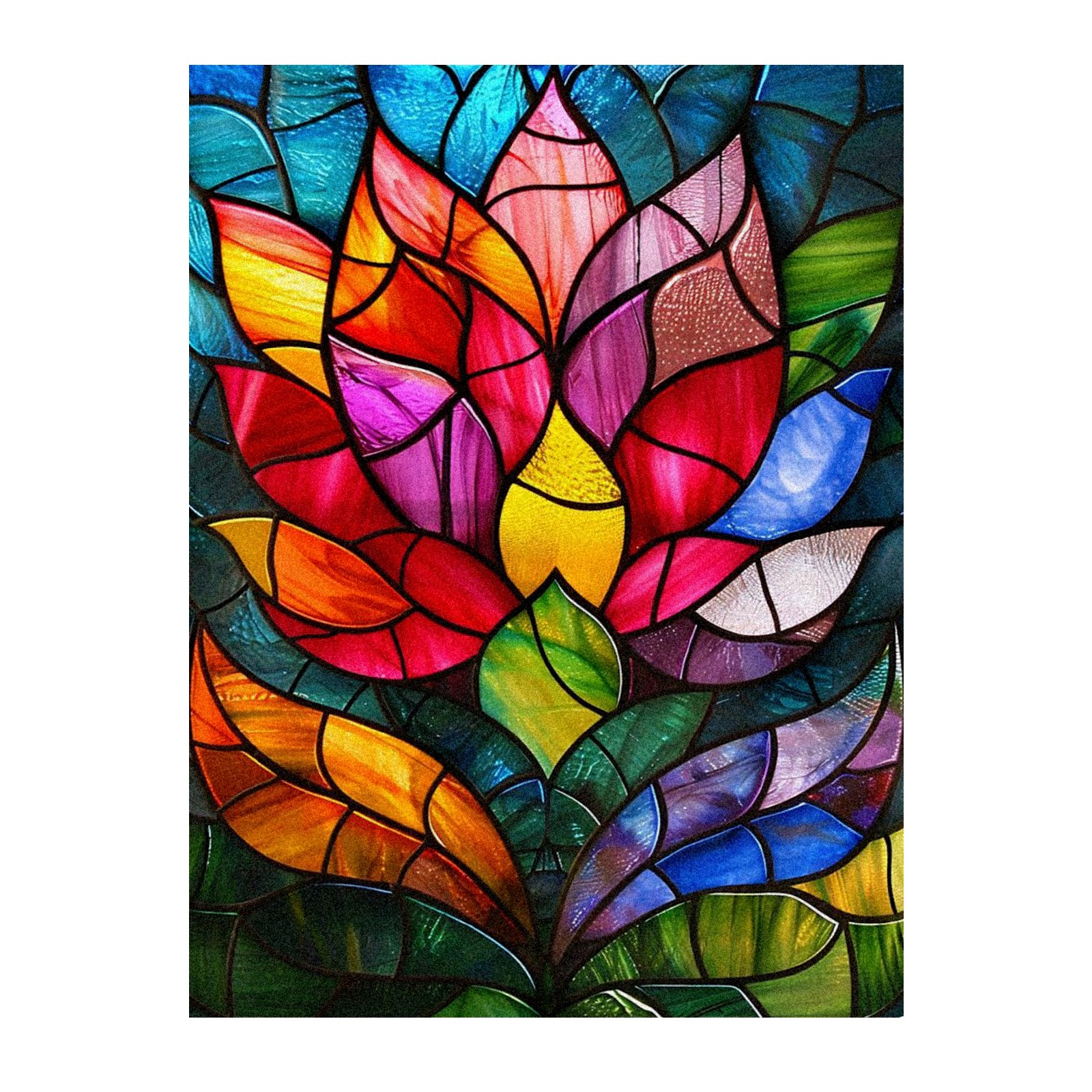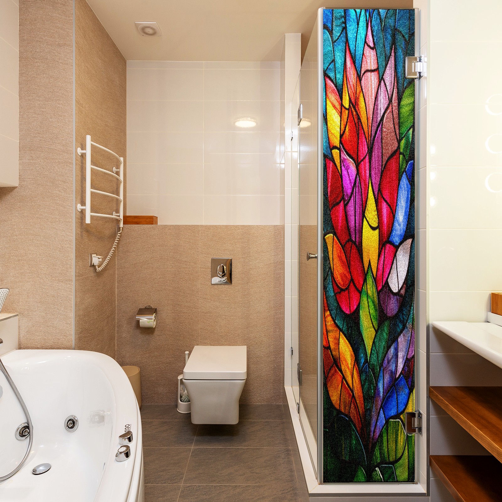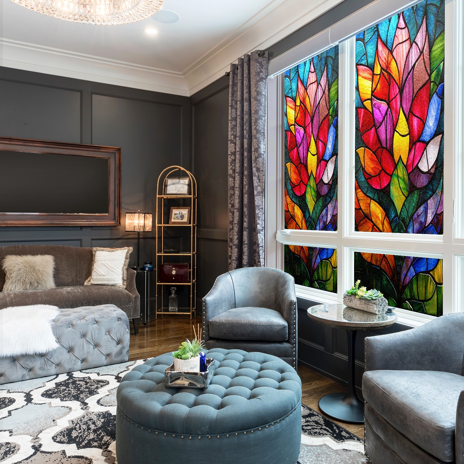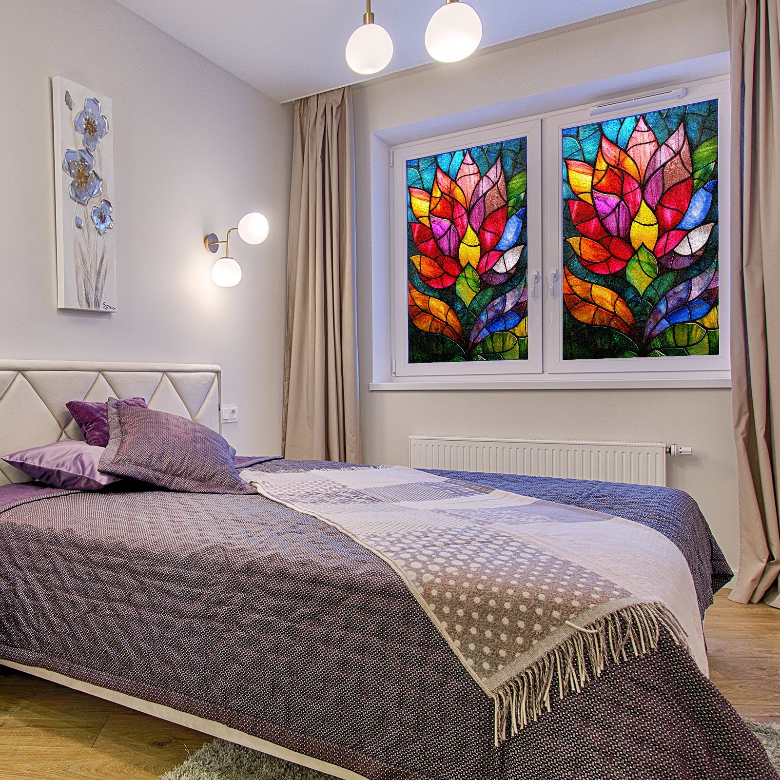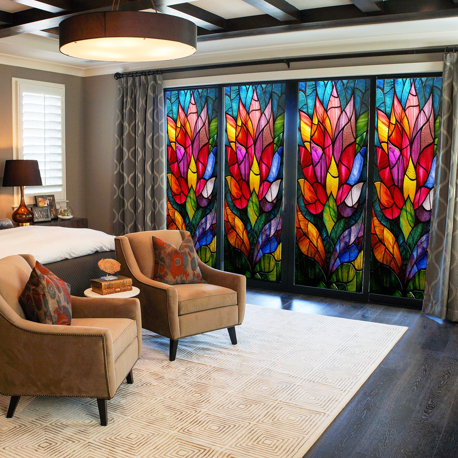 Window Privacy Film Frosted Stained Glass Film Decorative Static Cling for Bathroom Home Office Peel and Stick Window Film Colorful Lotus Flowers(17.7x23.6in)