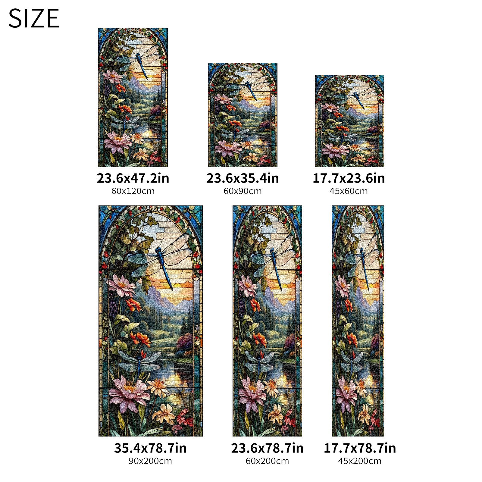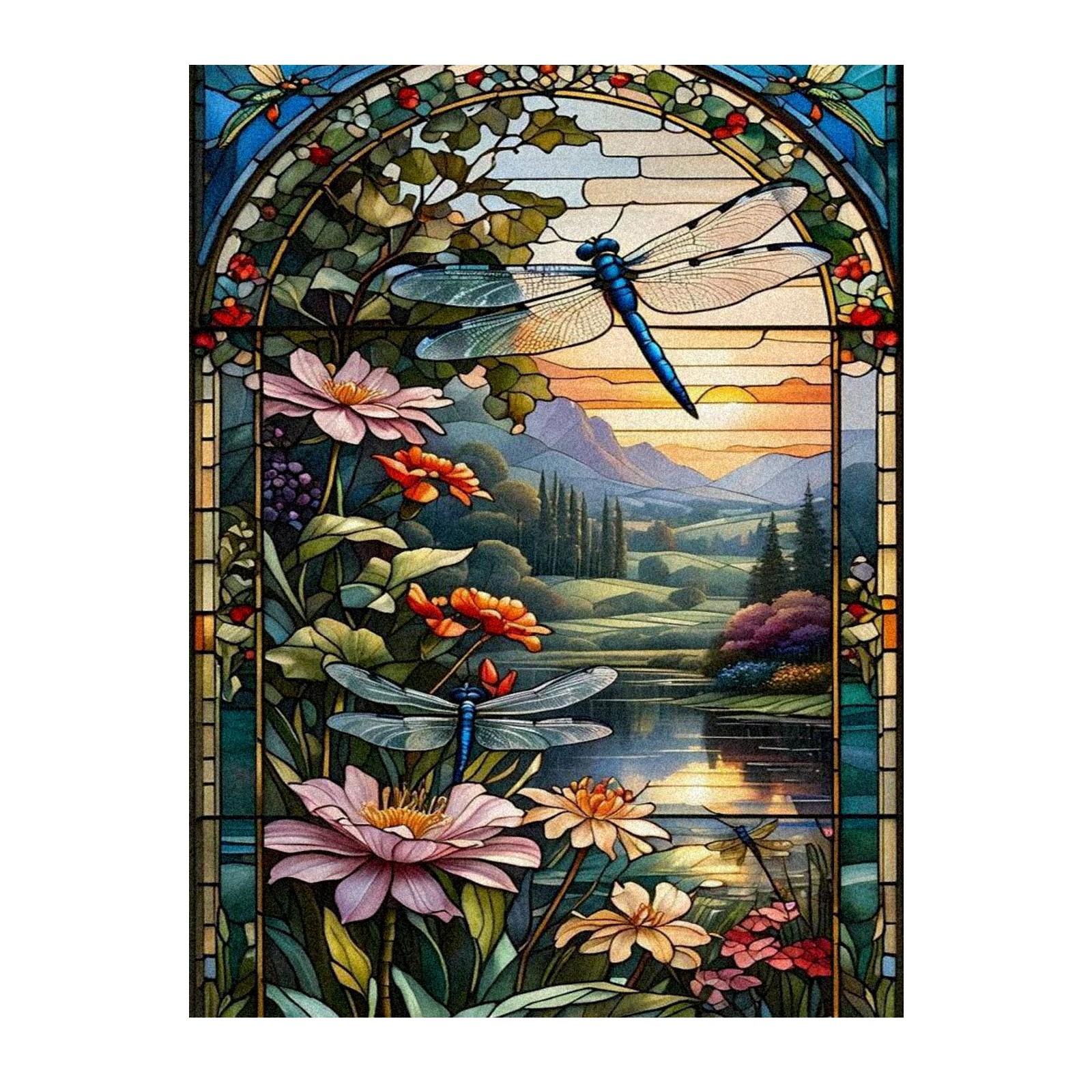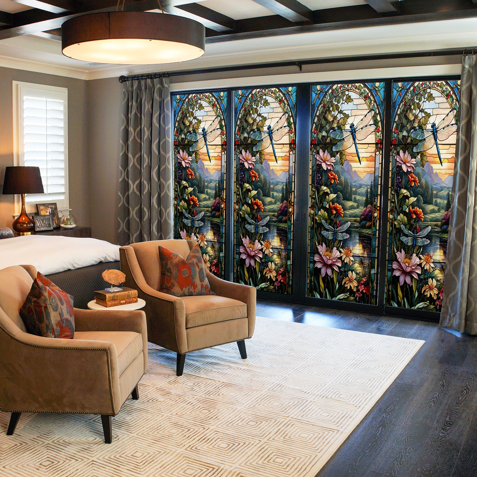 Window Privacy Film Frosted Stained Glass Film Decorative Static Cling for Bathroom Home Office Peel and Stick Window Film Colorful Flowers Dragonfies(17.7x23.6in)