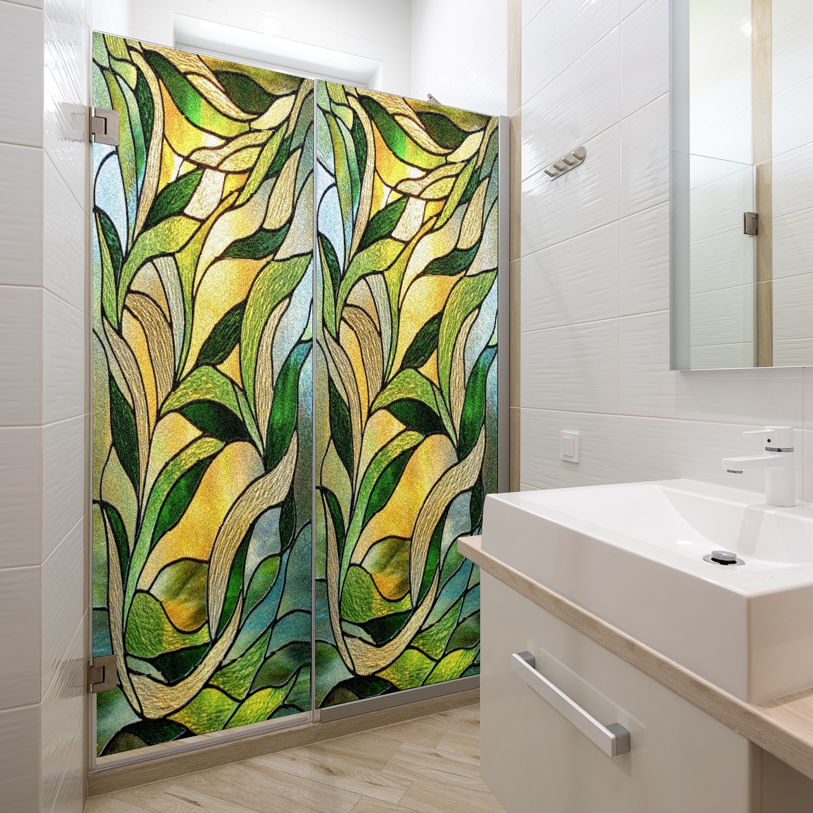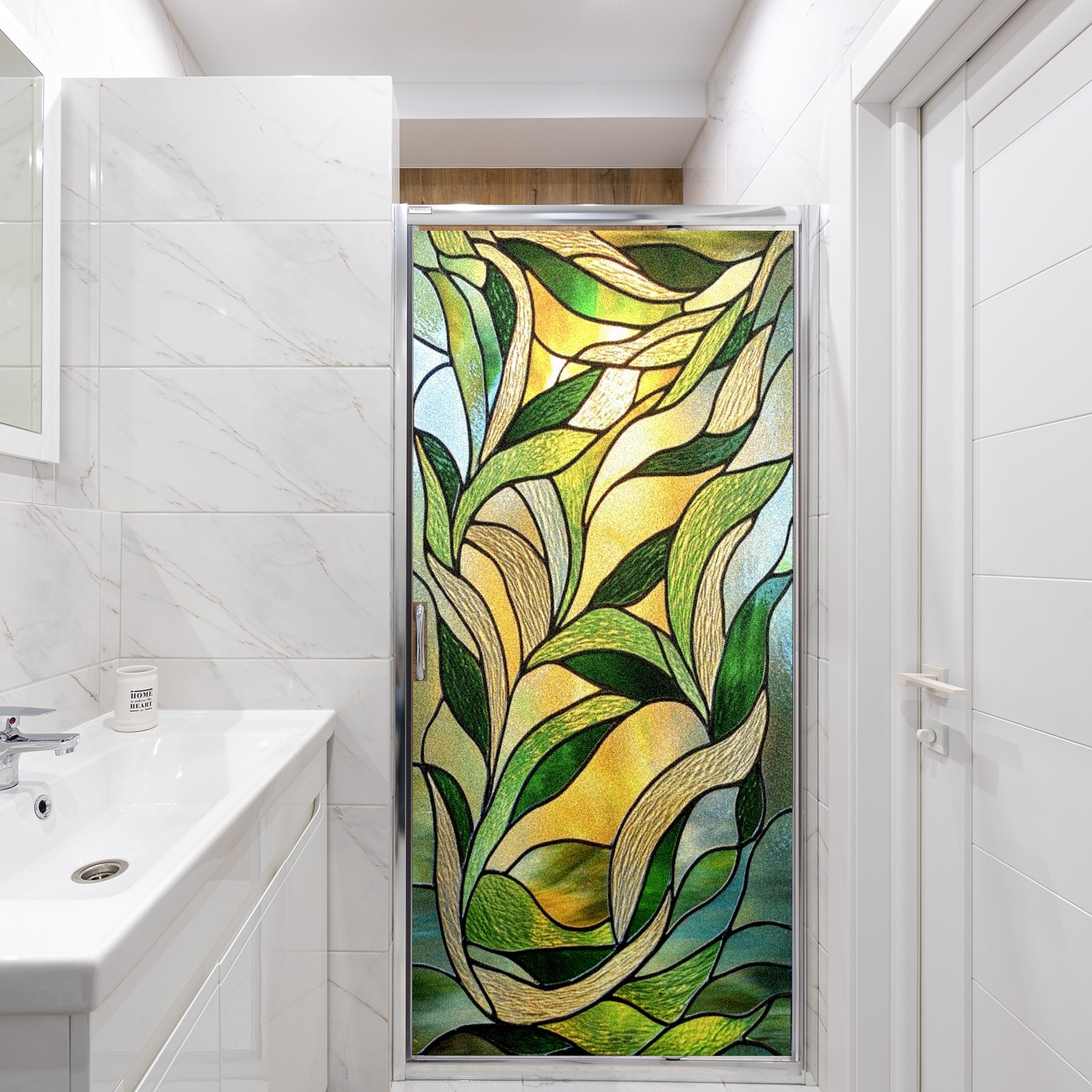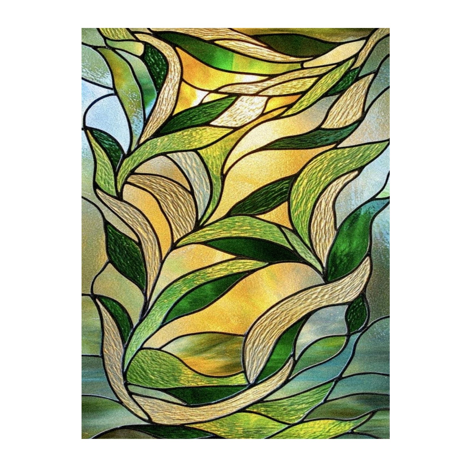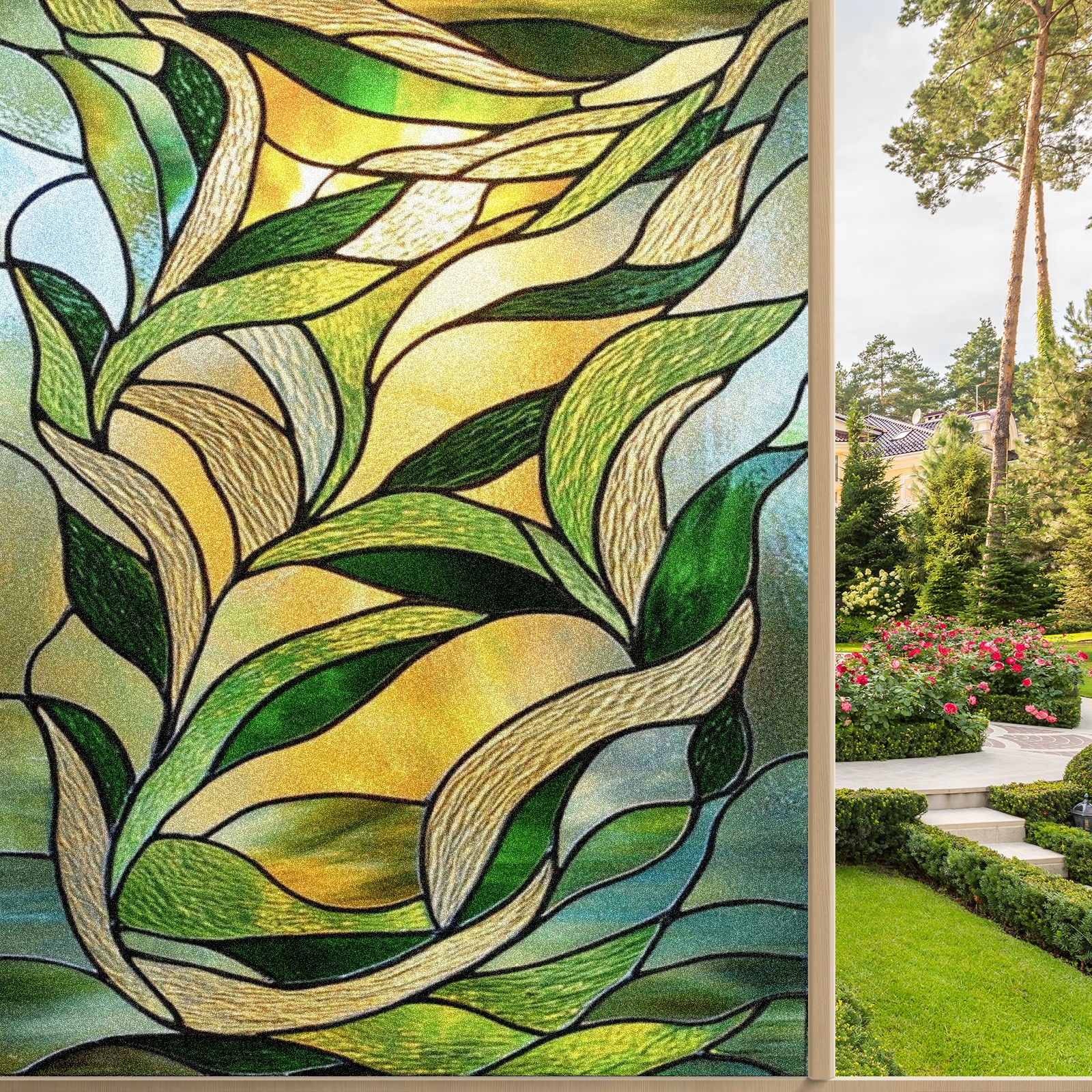 Window Privacy Film Frosted Stained Glass Film Decorative Static Cling for Bathroom Home Office Peel and Stick Window Film Green Leaves(17.7x23.6in)