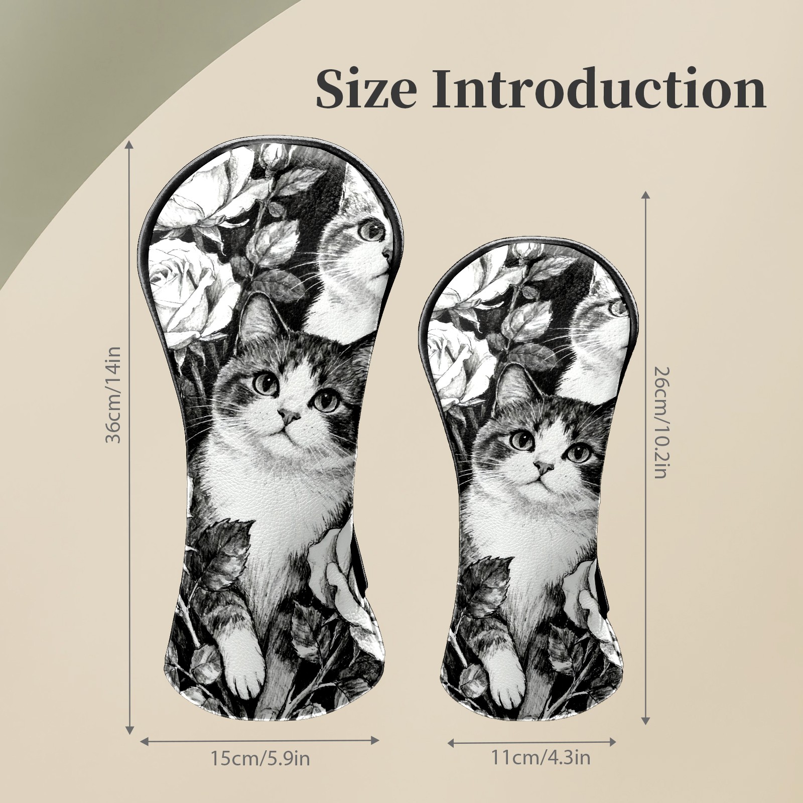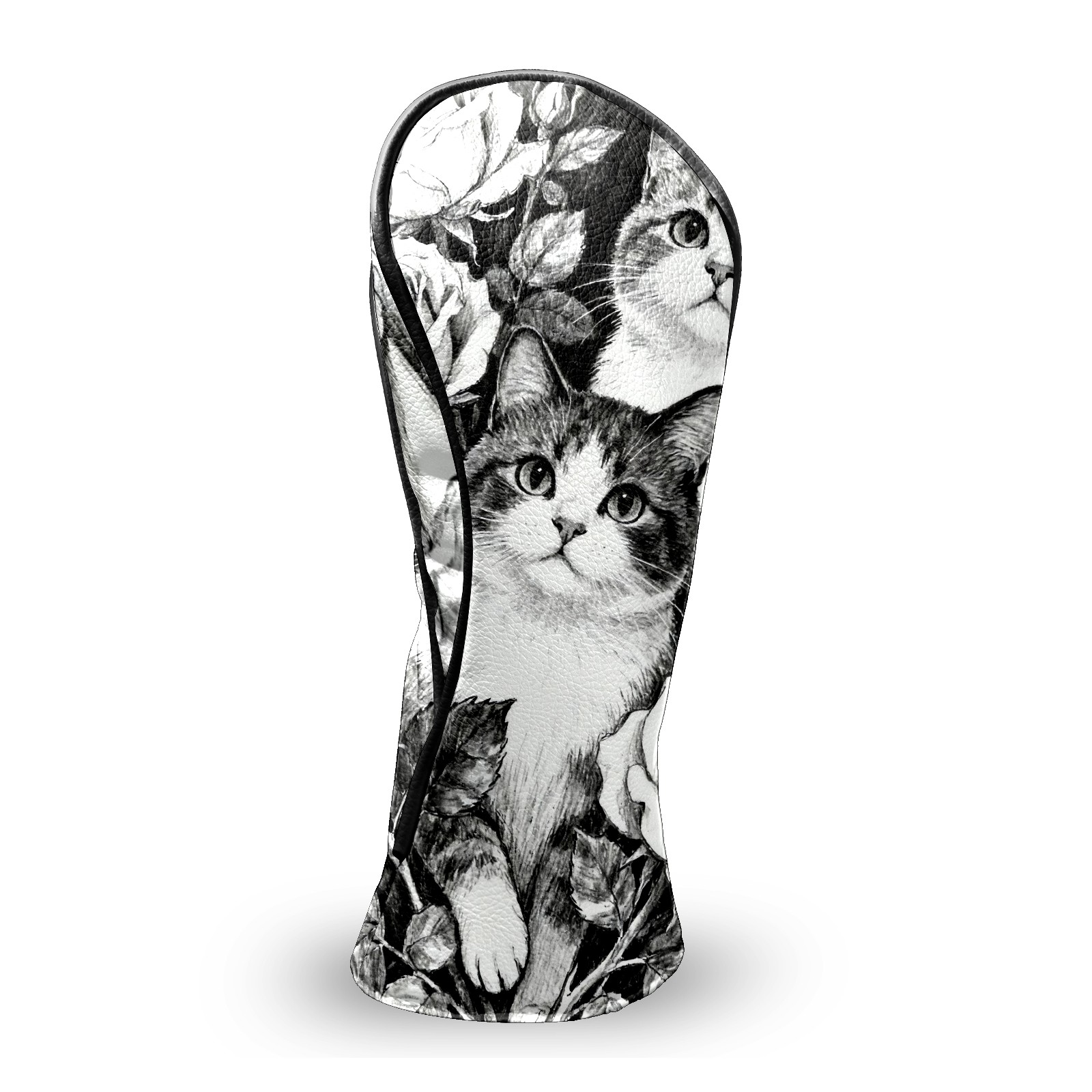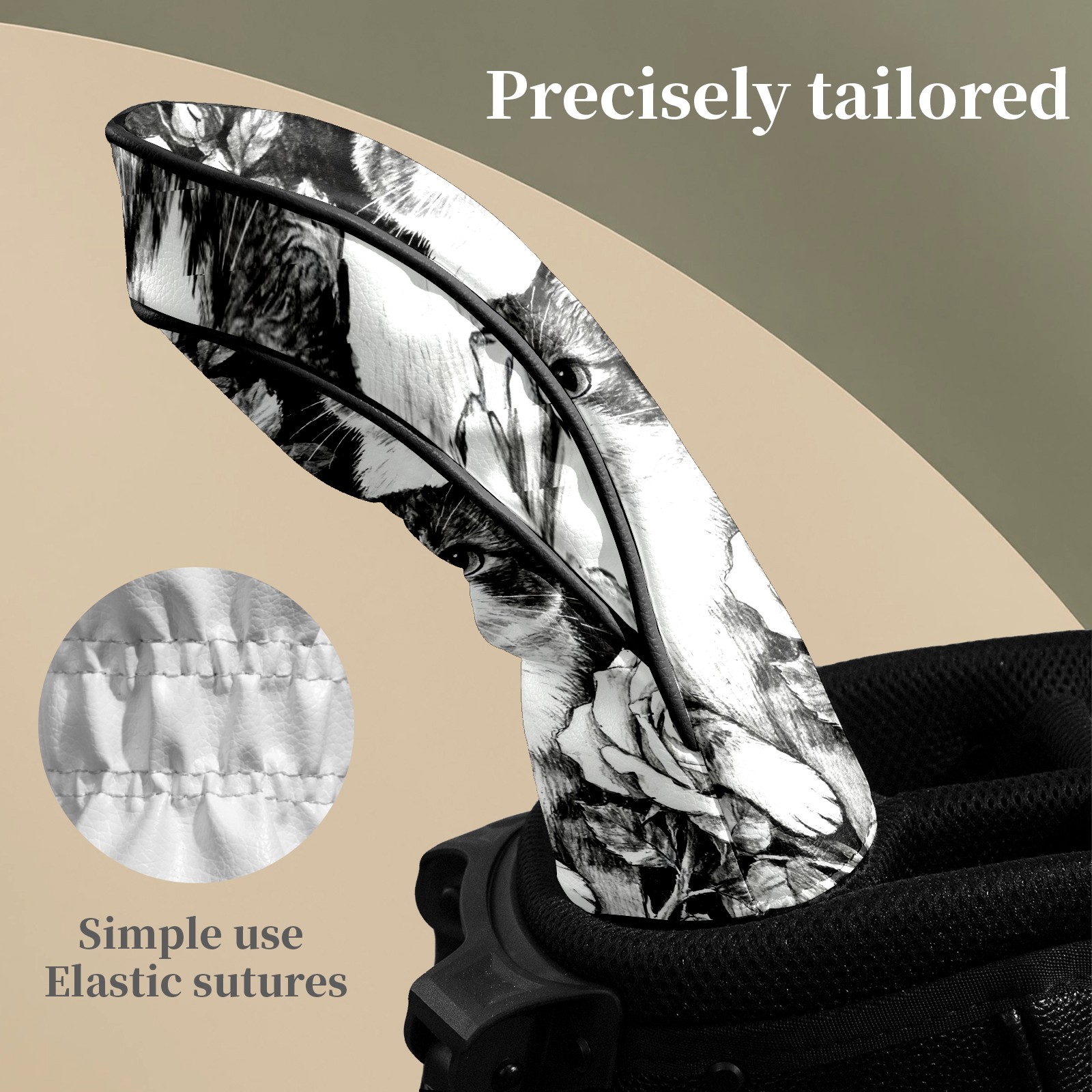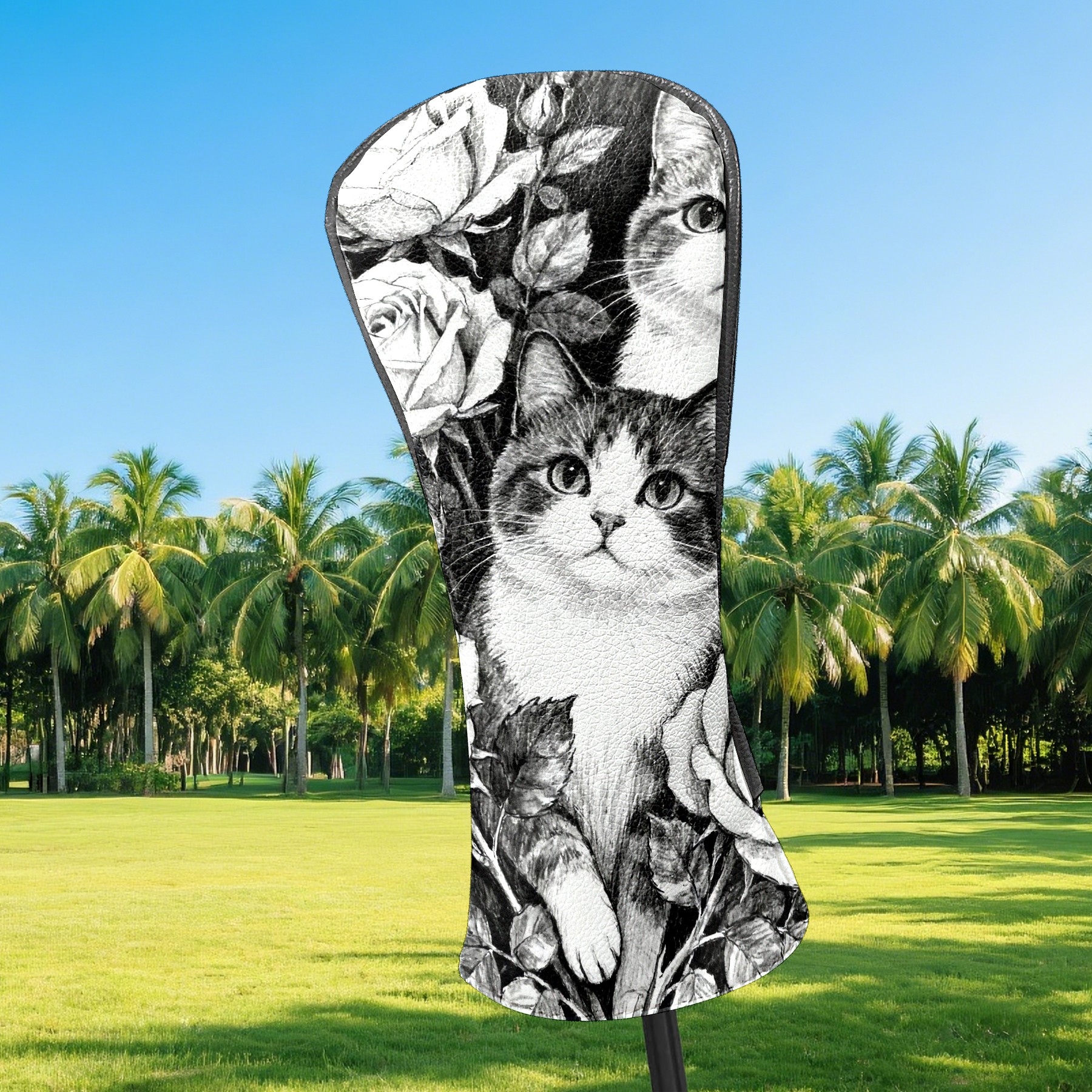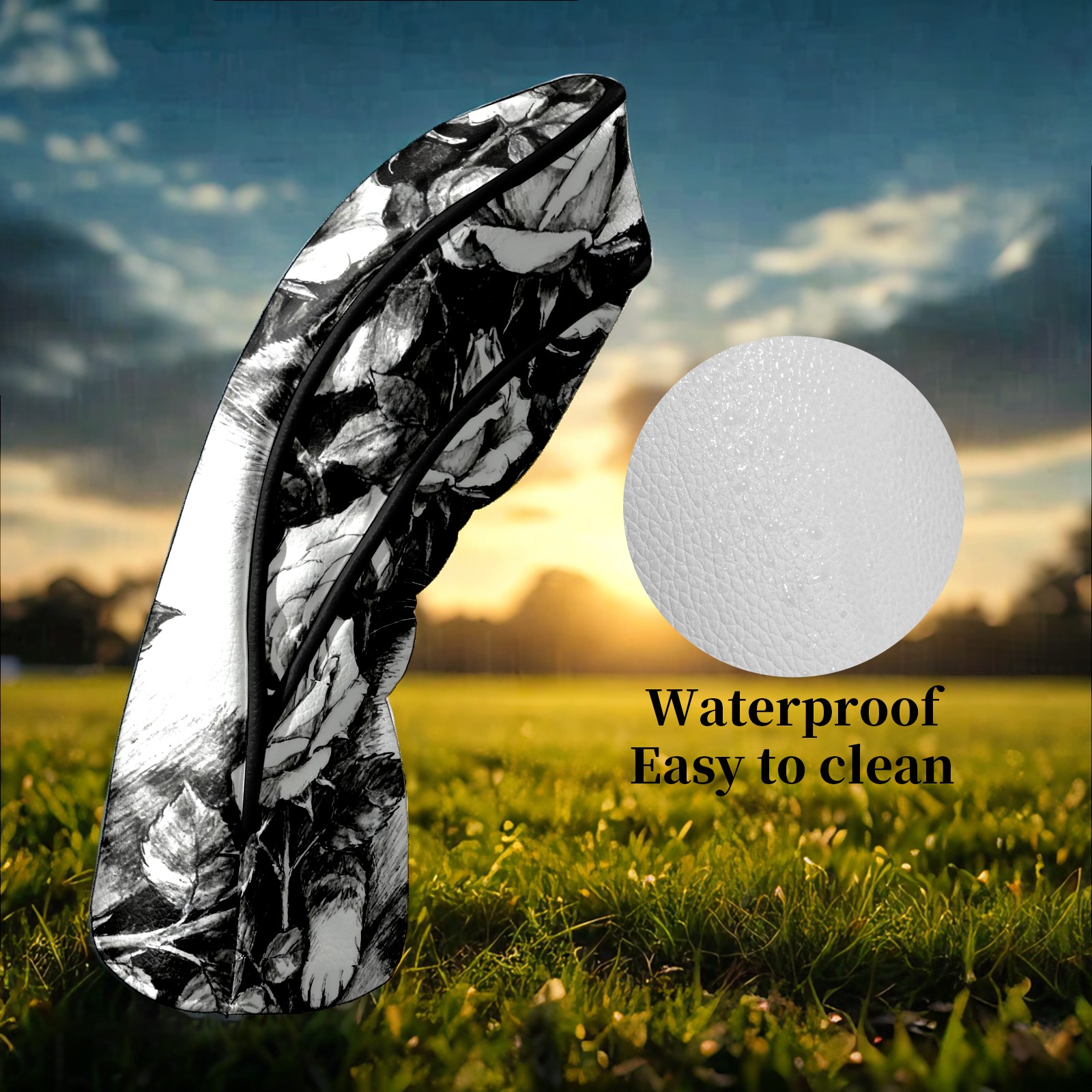 Golf Head Covers Leather Driver Head Cover, Premium Golf Club Covers with Soft Lining Fits Driver Hybrid Fairway 3/5 Wood for Women Men (Cat Flowers Black White)
