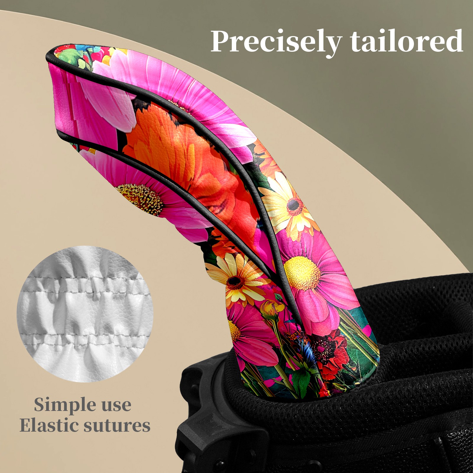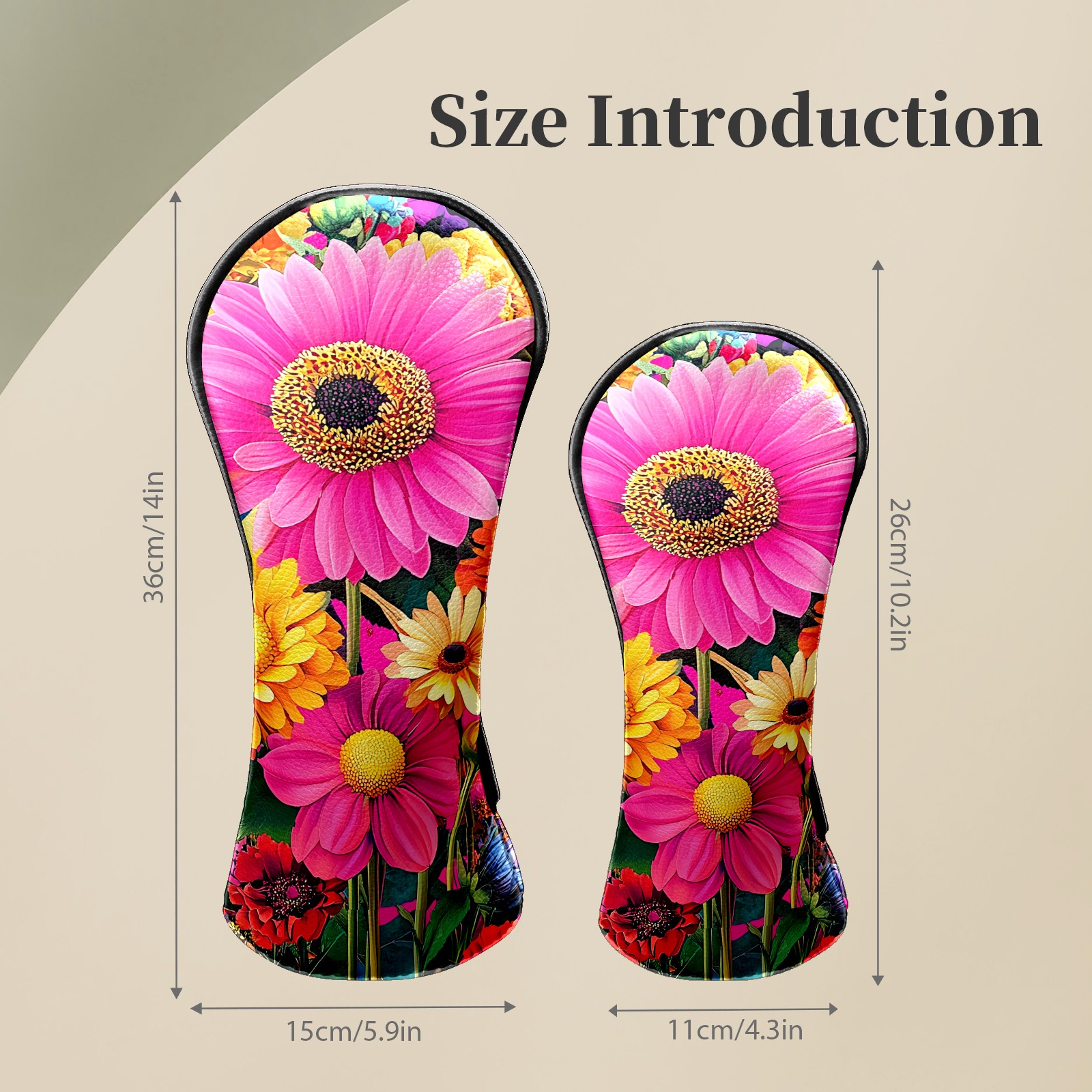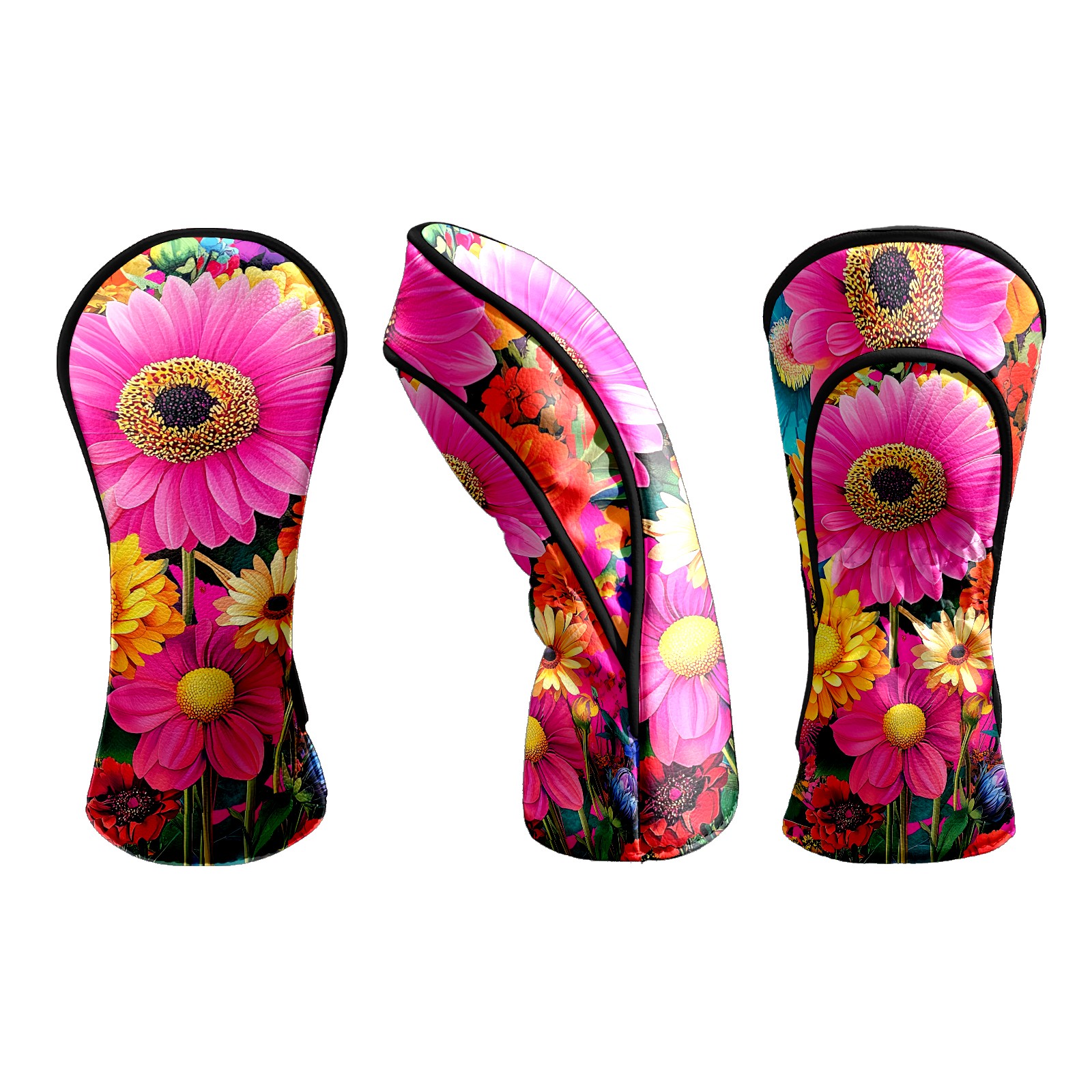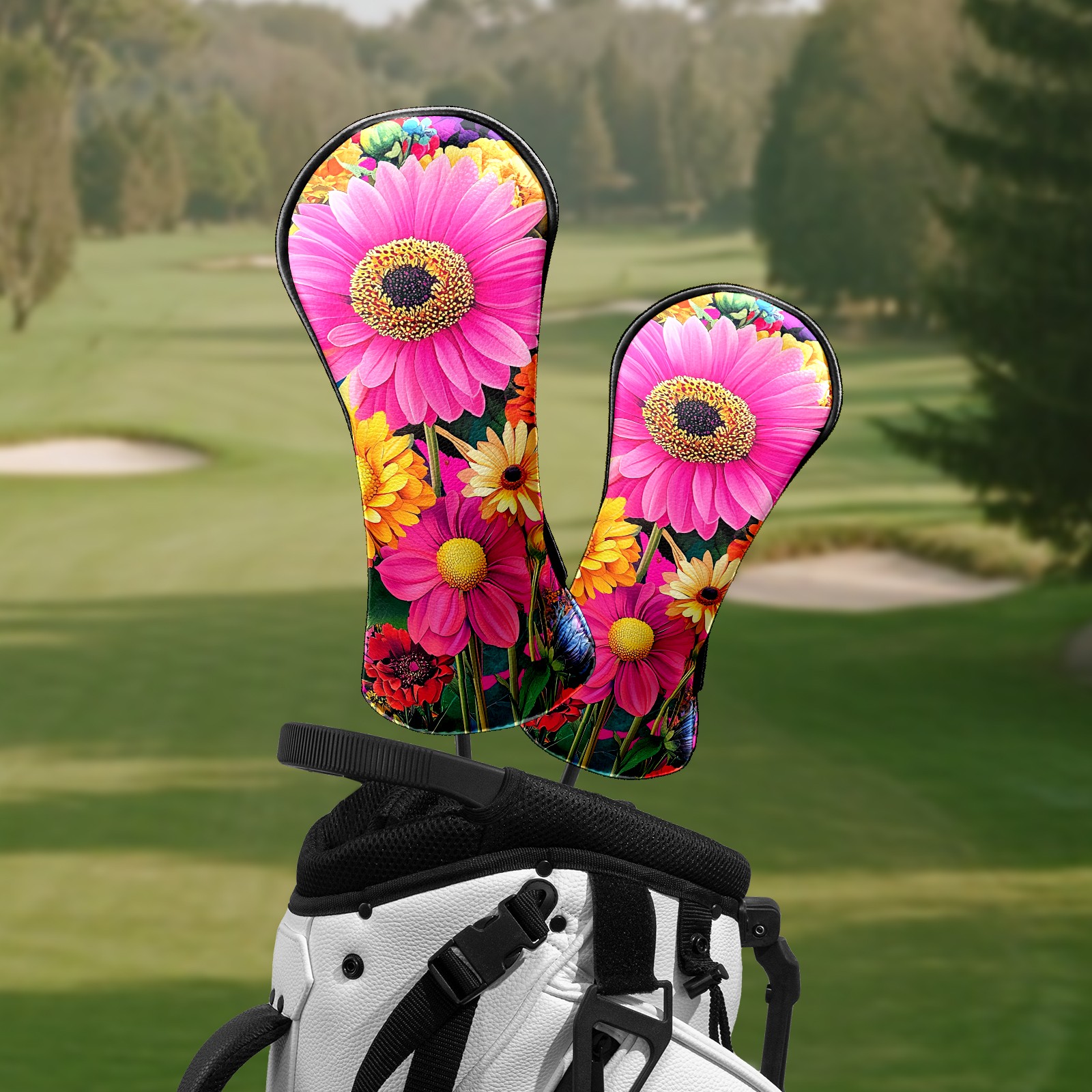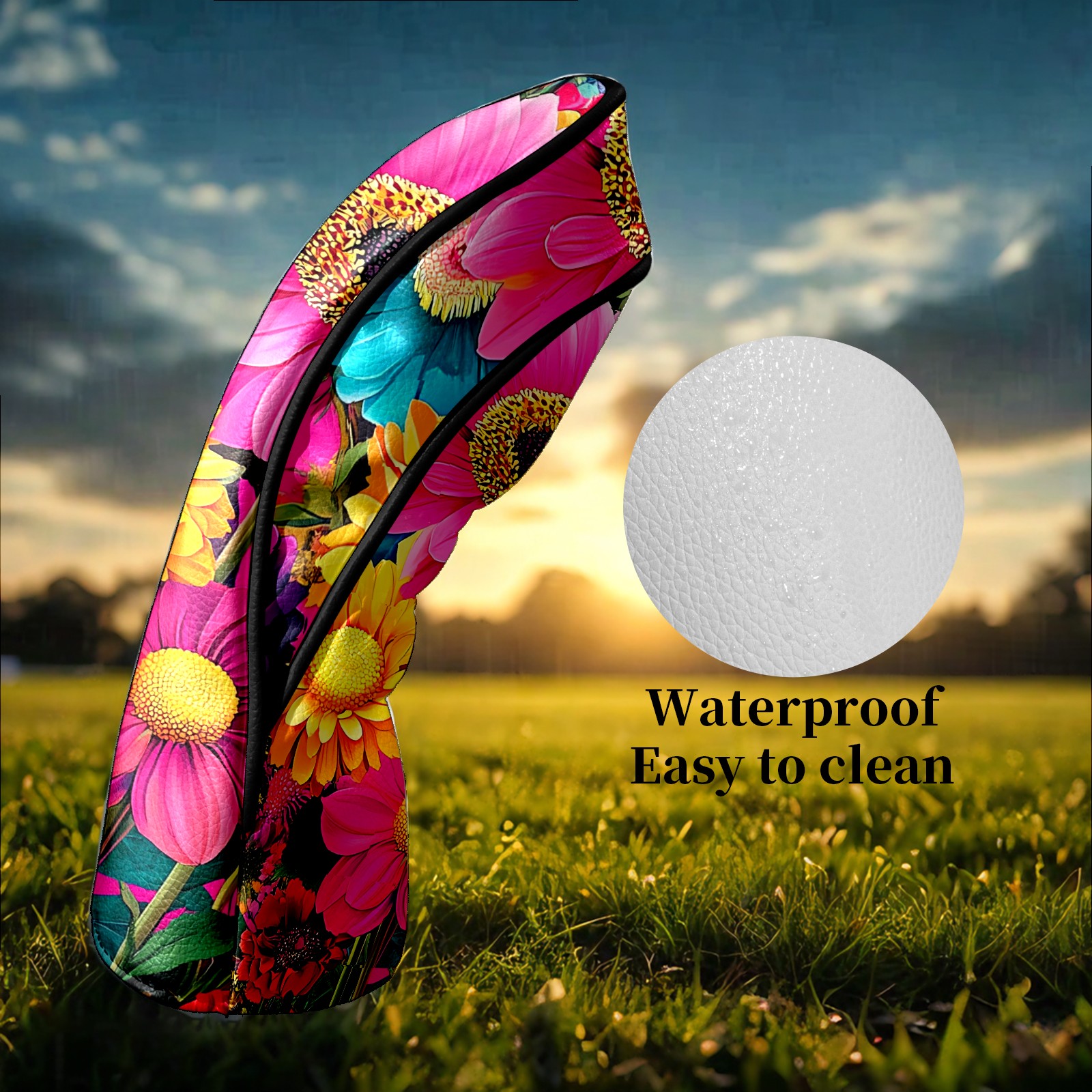 Golf Head Covers Leather Driver Head Cover, Premium Golf Club Covers with Soft Lining Fits Driver Hybrid Fairway 3/5 Wood for Women Men (Colorful Flowers (1))