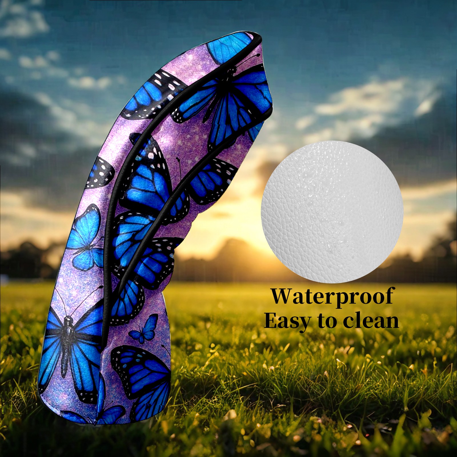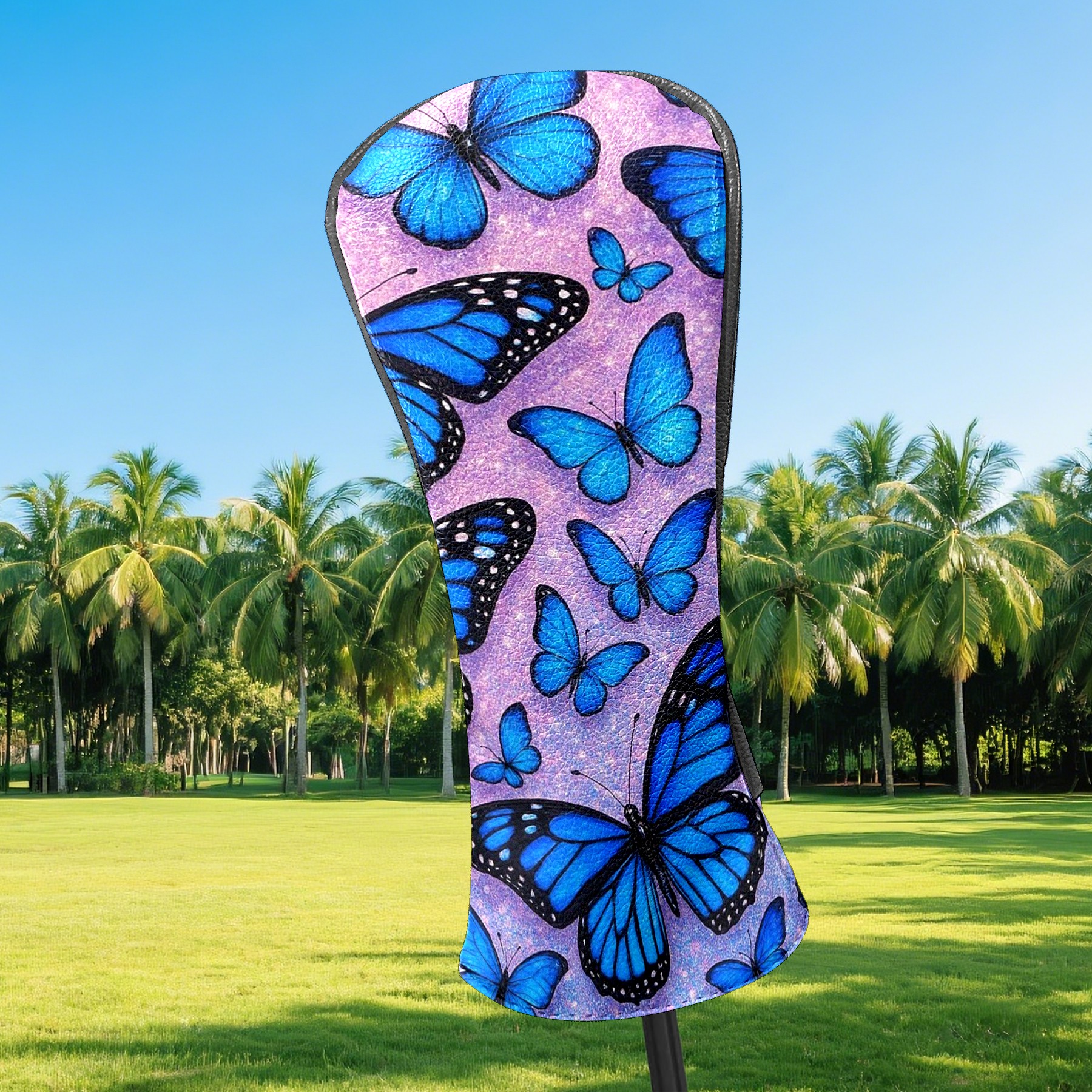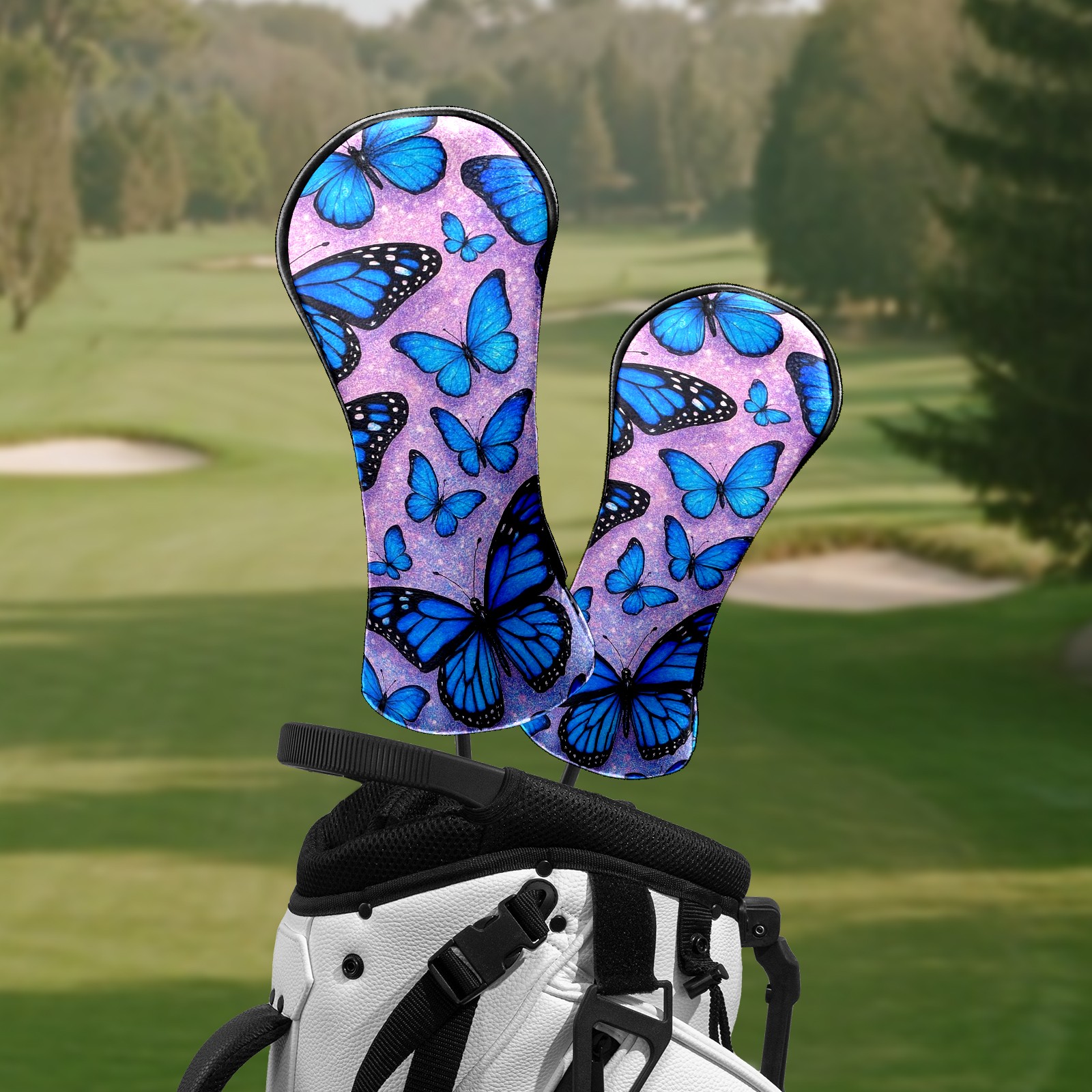Golf Head Covers Leather Driver Head Cover, Premium Golf Club Covers with Soft Lining Fits Driver Hybrid Fairway 3/5 Wood for Women Men (Blue Butterflies)