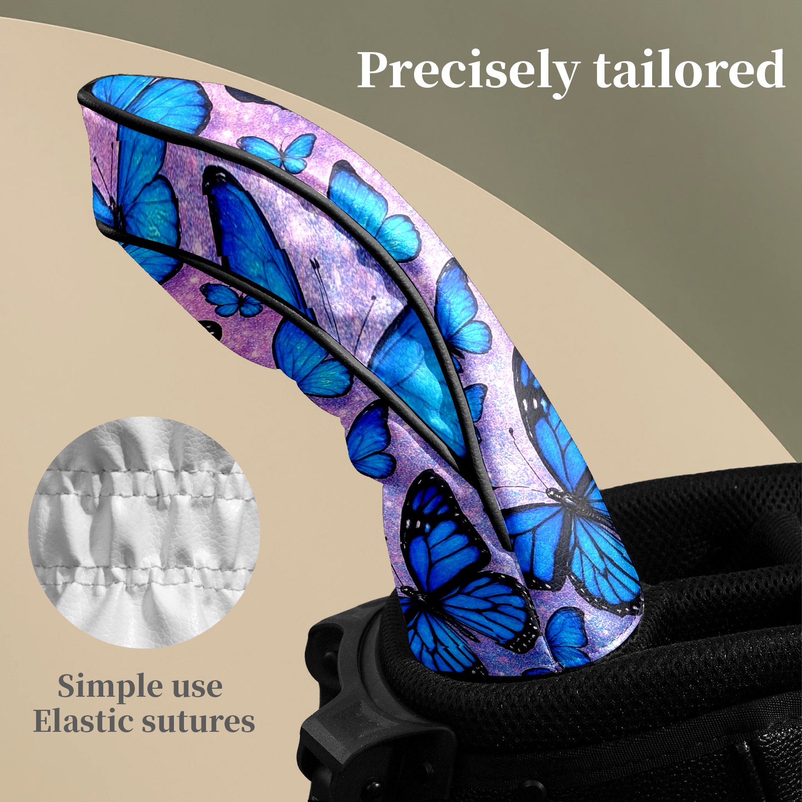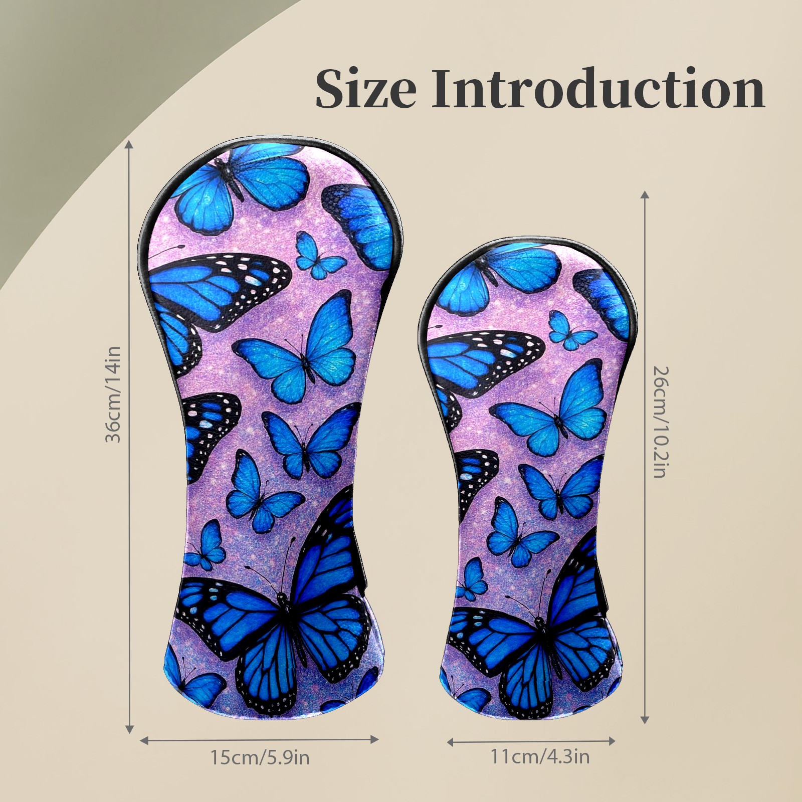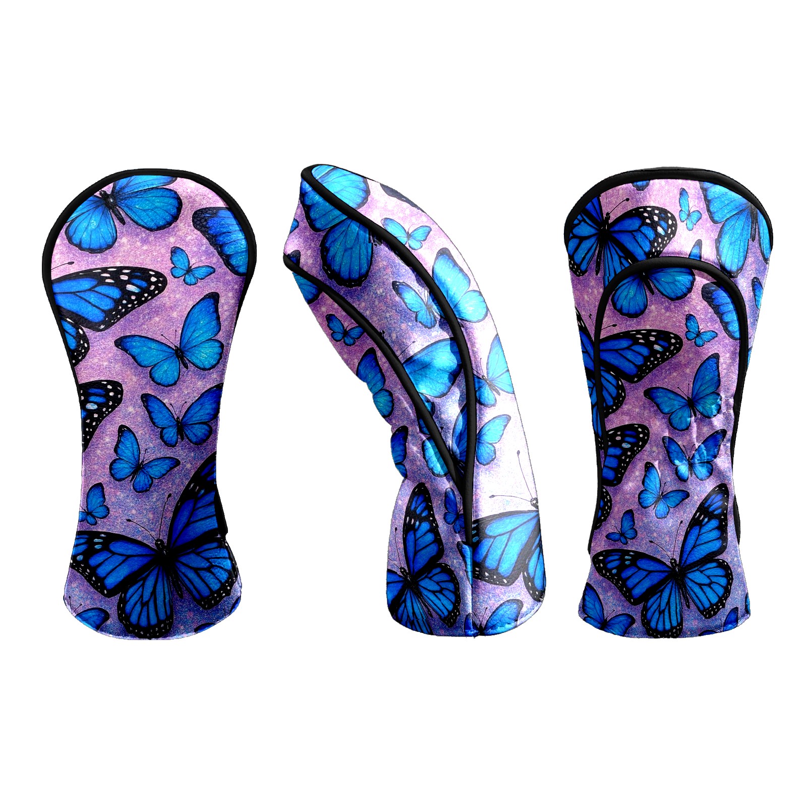 Golf Head Covers Leather Driver Head Cover, Premium Golf Club Covers with Soft Lining Fits Driver Hybrid Fairway 3/5 Wood for Women Men (Blue Butterflies)