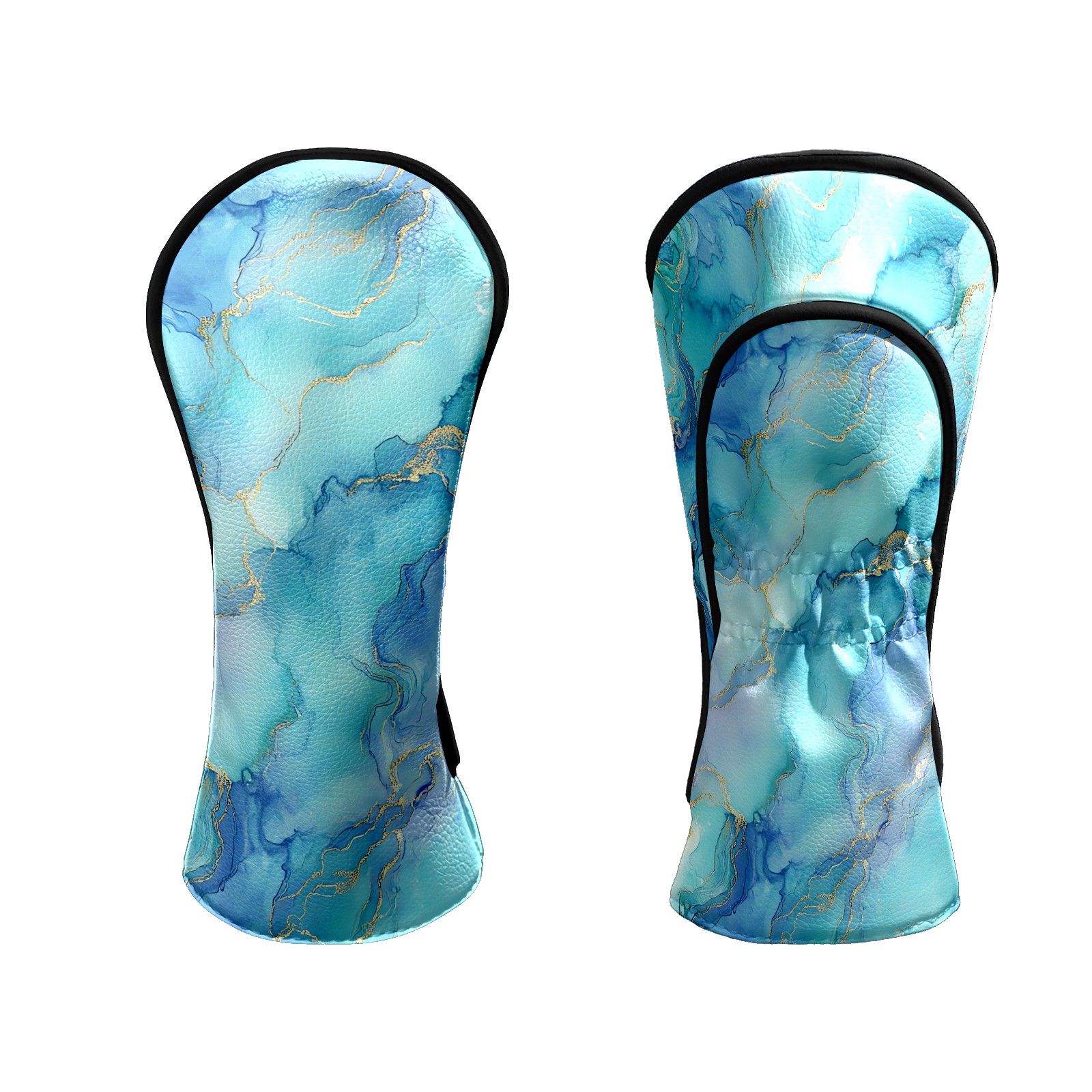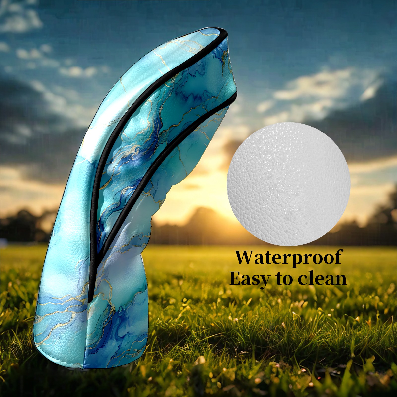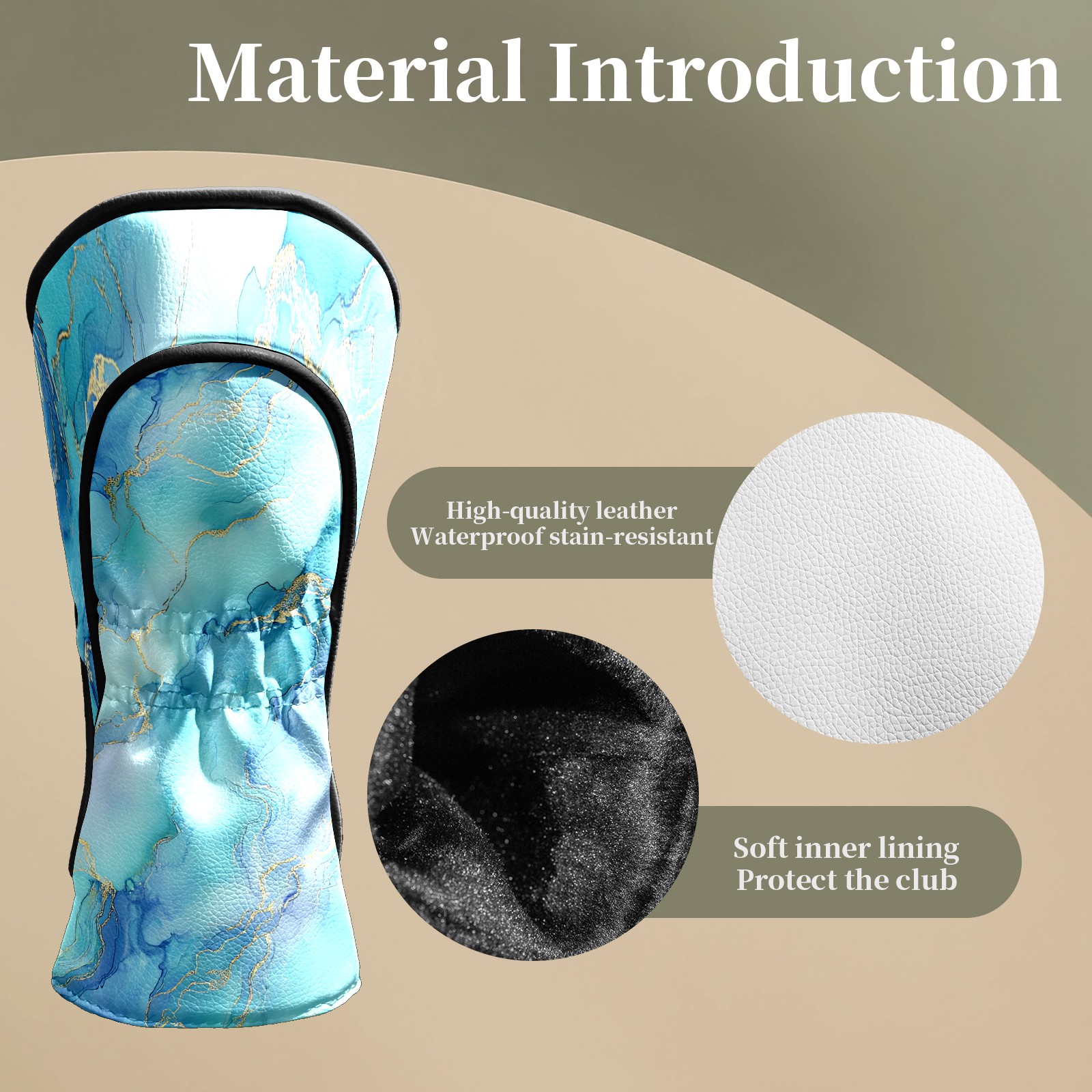 Golf Head Covers Leather Driver Head Cover, Premium Golf Club Covers with Soft Lining Fits Driver Hybrid Fairway 3/5 Wood for Women Men (Marble Blue (1))