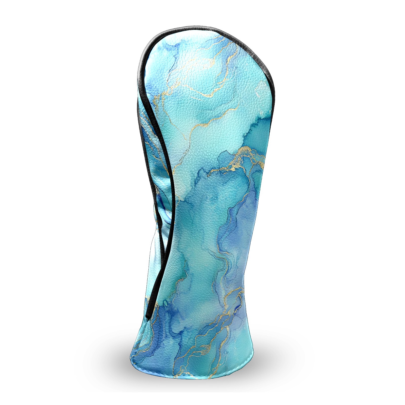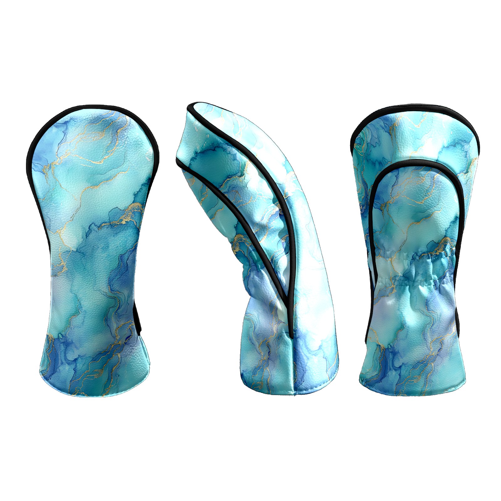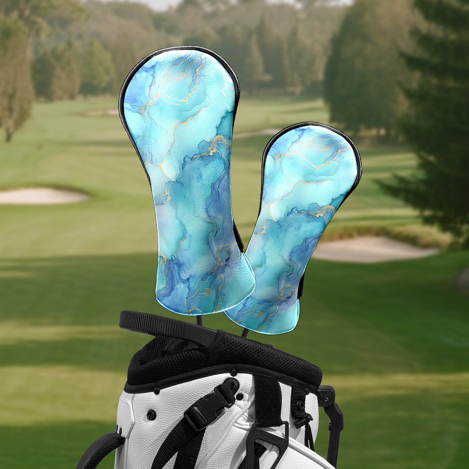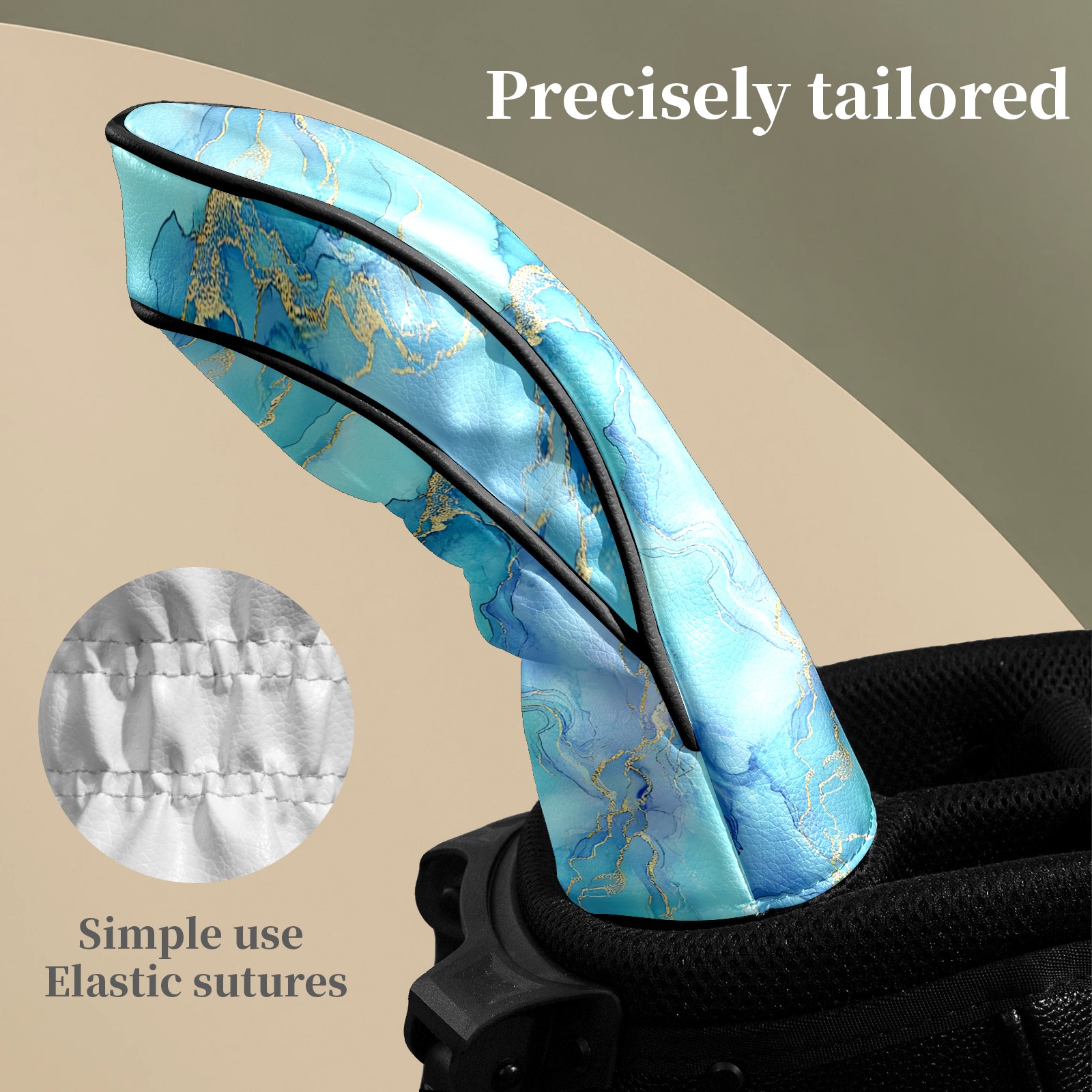 Golf Head Covers Leather Driver Head Cover, Premium Golf Club Covers with Soft Lining Fits Driver Hybrid Fairway 3/5 Wood for Women Men (Marble Blue (1))
