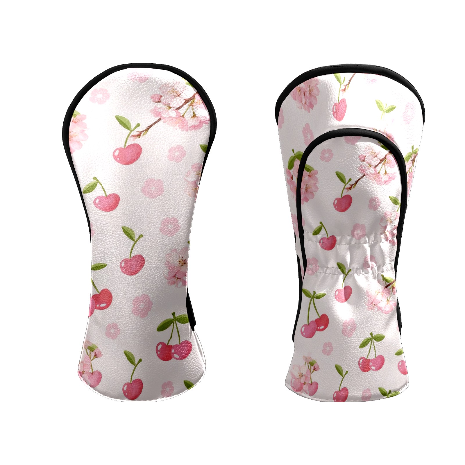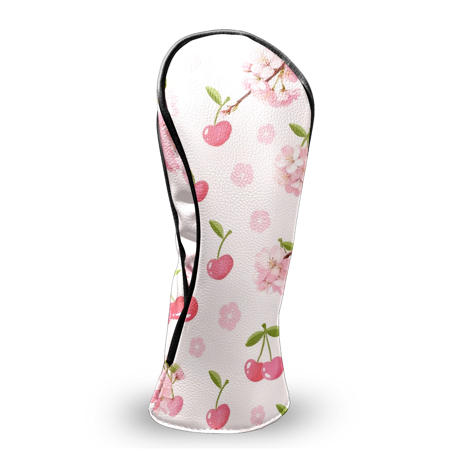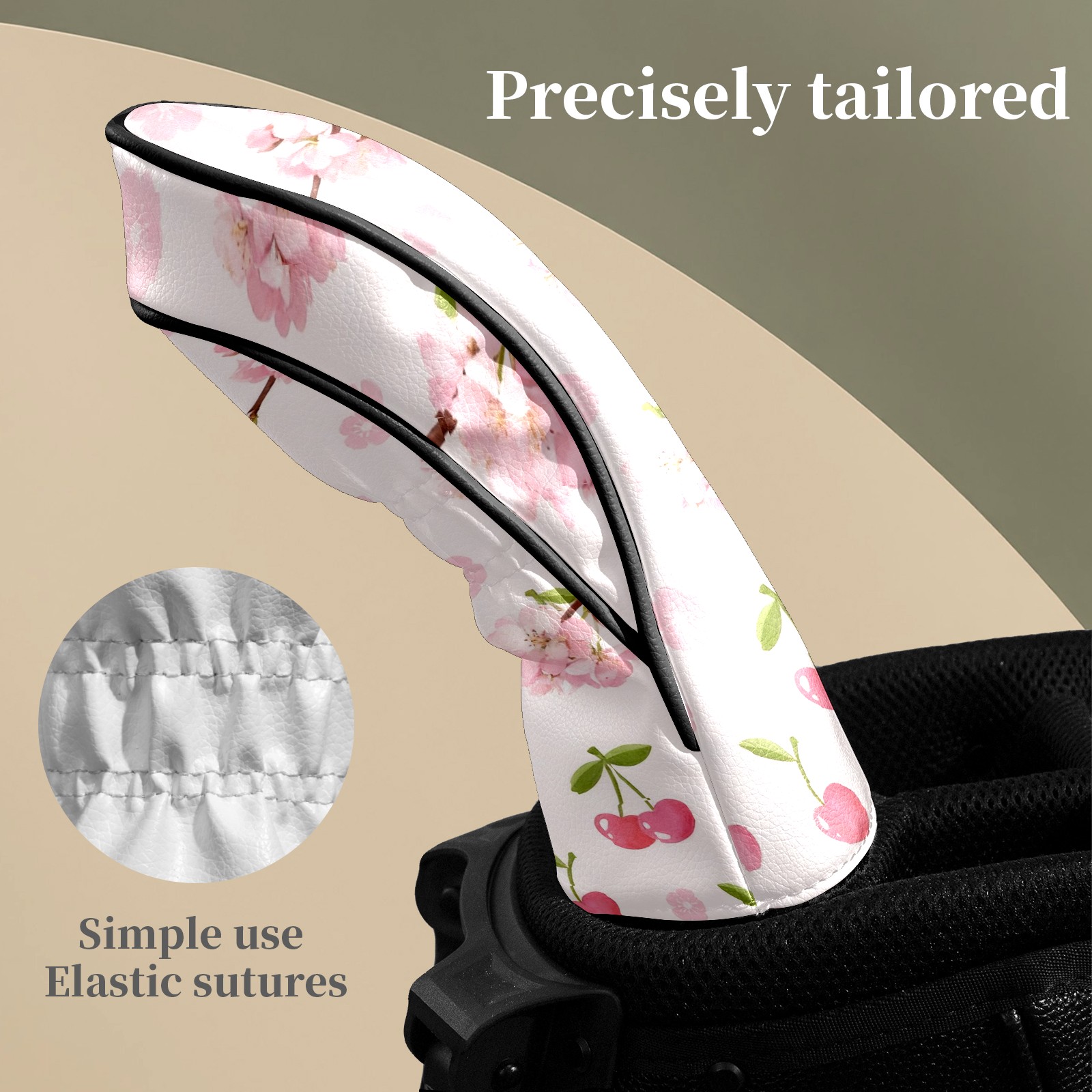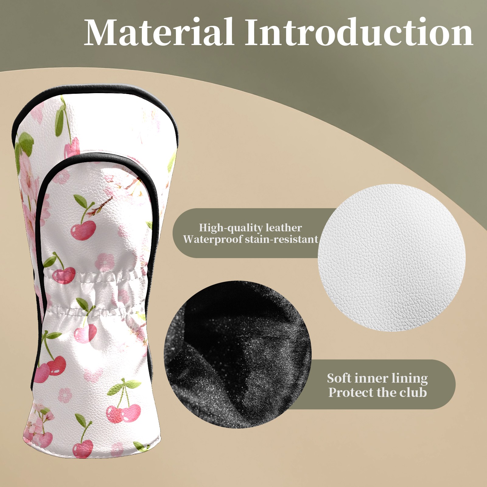 Golf Head Covers Leather Driver Head Cover, Premium Golf Club Covers with Soft Lining Fits Driver Hybrid Fairway 3/5 Wood for Women Men (Jimeng-2025-10-28-9464-参考图1的粉色和绿色配色,生成樱花枝条设计,粉色樱花花朵和绿色叶子,简约清新风格)