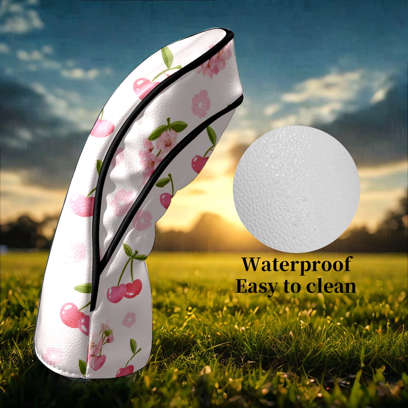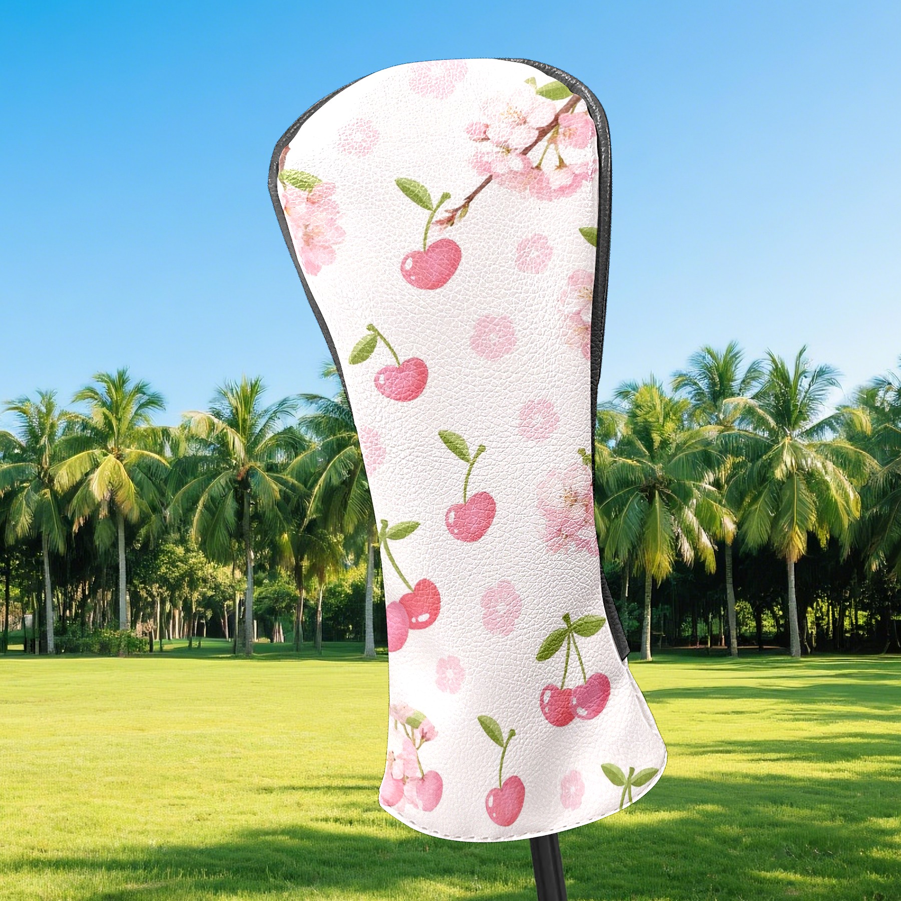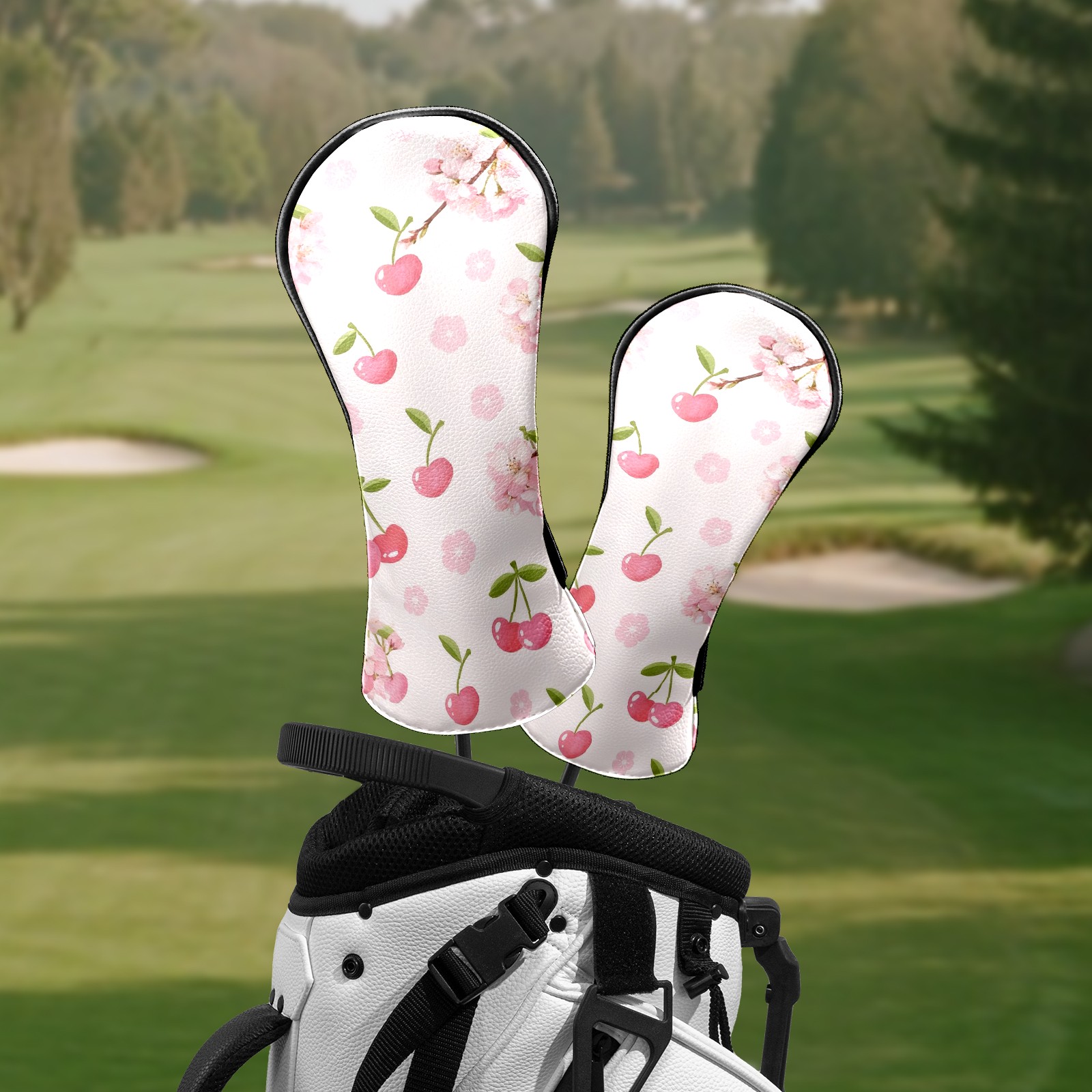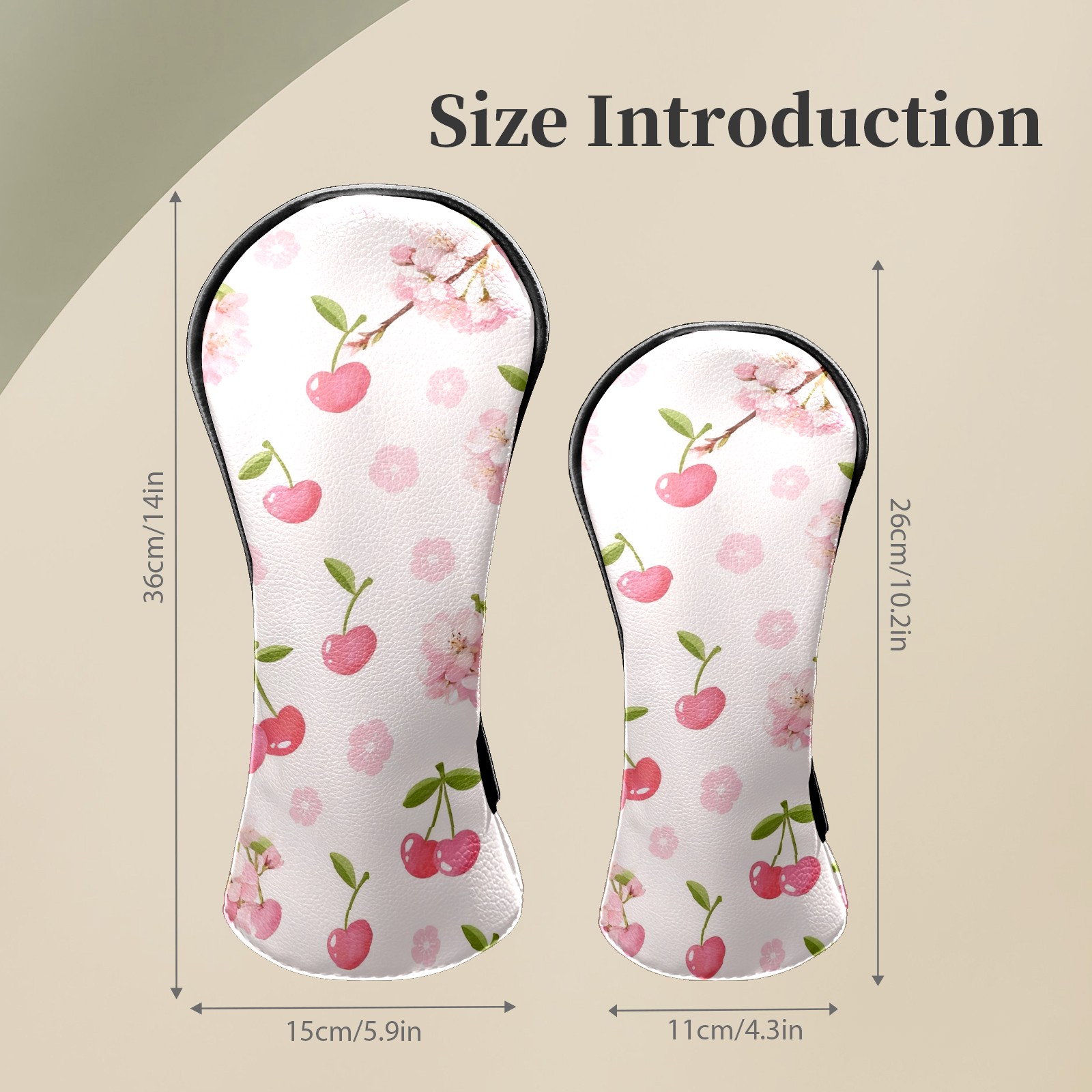 Golf Head Covers Leather Driver Head Cover, Premium Golf Club Covers with Soft Lining Fits Driver Hybrid Fairway 3/5 Wood for Women Men (Jimeng-2025-10-28-9464-参考图1的粉色和绿色配色,生成樱花枝条设计,粉色樱花花朵和绿色叶子,简约清新风格)
