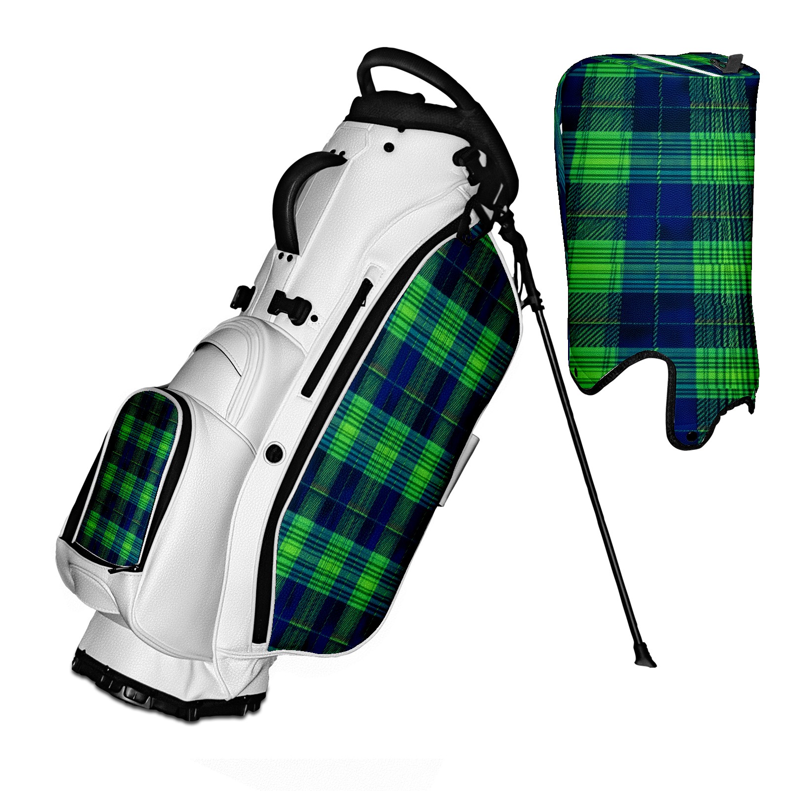• <p>The Golf Stand Bag, designed specifically for golf enthusiasts, offers a choice of 5 - way and 14 - way top dividers. Its 5/14 - compartment design with independent full - size club compartments safeguards clubs from collisions. Equipped with a rain cover, waterproof zippered pockets (tested to resist moderate to heavy rain), and a high - performance cooler pouch that can keep drinks cold for hours, it ensures a convenient golfing experience. The bag features thickened, breathable neoprene shoulder straps and an adjustable chest buckle, reducing shoulder fatigue by 35% compared to regular bags, and its automatic aluminum alloy stand provides stable support on various terrains. Crafted from top - tier, water - resistant litchi - grain PU leather, with double - stitched edges, reliable zippers tested for over 15,000 cycles, and anti - abrasion bottom studs, it guarantees durability. You can personalize it with embroidery on the front pocket and rain cover side (15*15cm area), and it comes in classic black and white, with a matte finish and litchi - grain texture that combines business and leisure styles. Measuring 130 cm in height, 37 cm in width, and 31 cm in depth (including rain cover) and 90 cm x 31 cm x 37 cm (excluding rain cover), it strikes a balance between storage and portability, capable of holding 14 standard - sized clubs and other essentials, and it also includes a dust cover. It's truly the perfect choice for golfers.<br></p>
