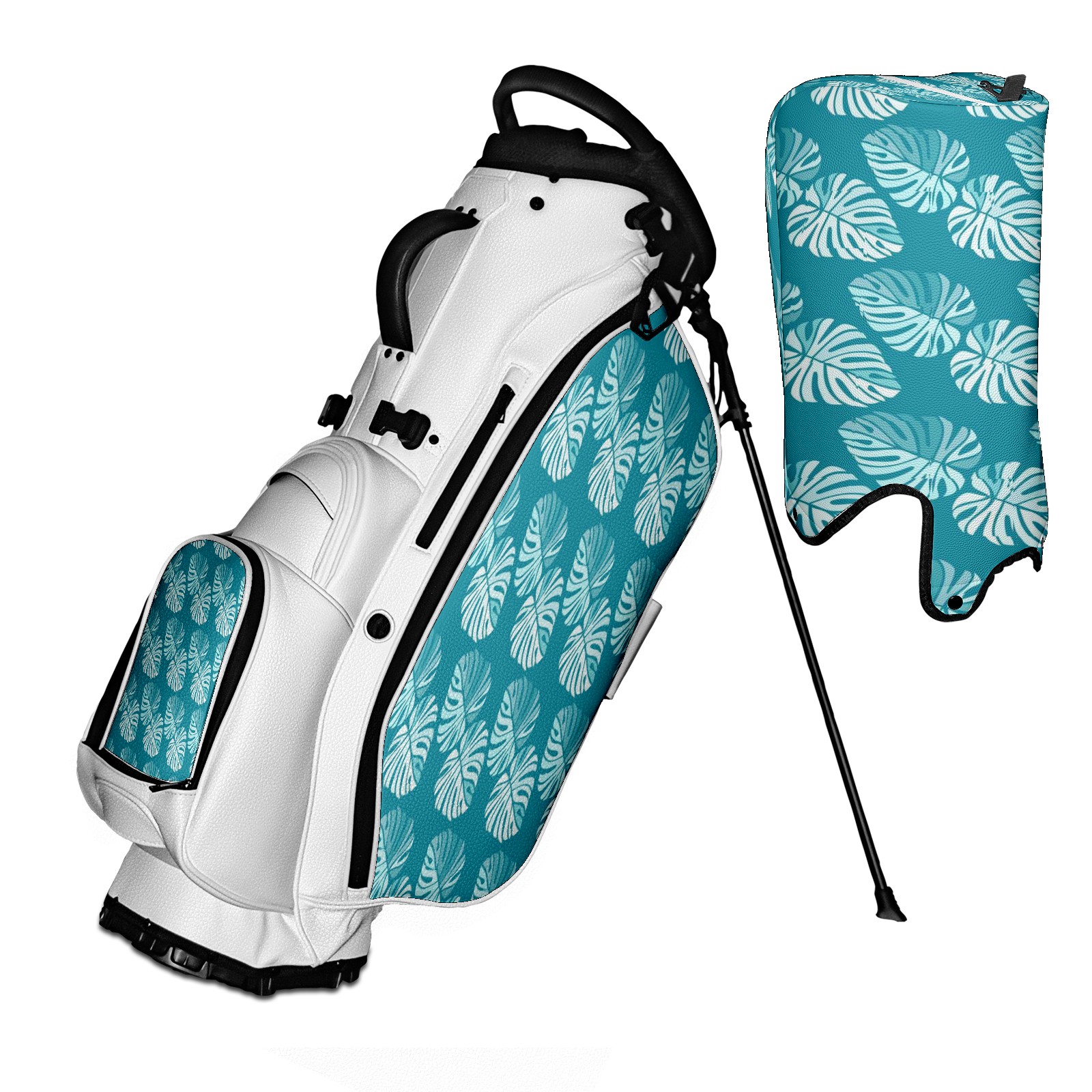 5 - Way Divider Golf Stand Bag, Lightweight Golf Bag with Padded Straps & Rain Cover for Men & Women, Ideal for Golf Courses & Driving Ranges Blue Monstera Leaf