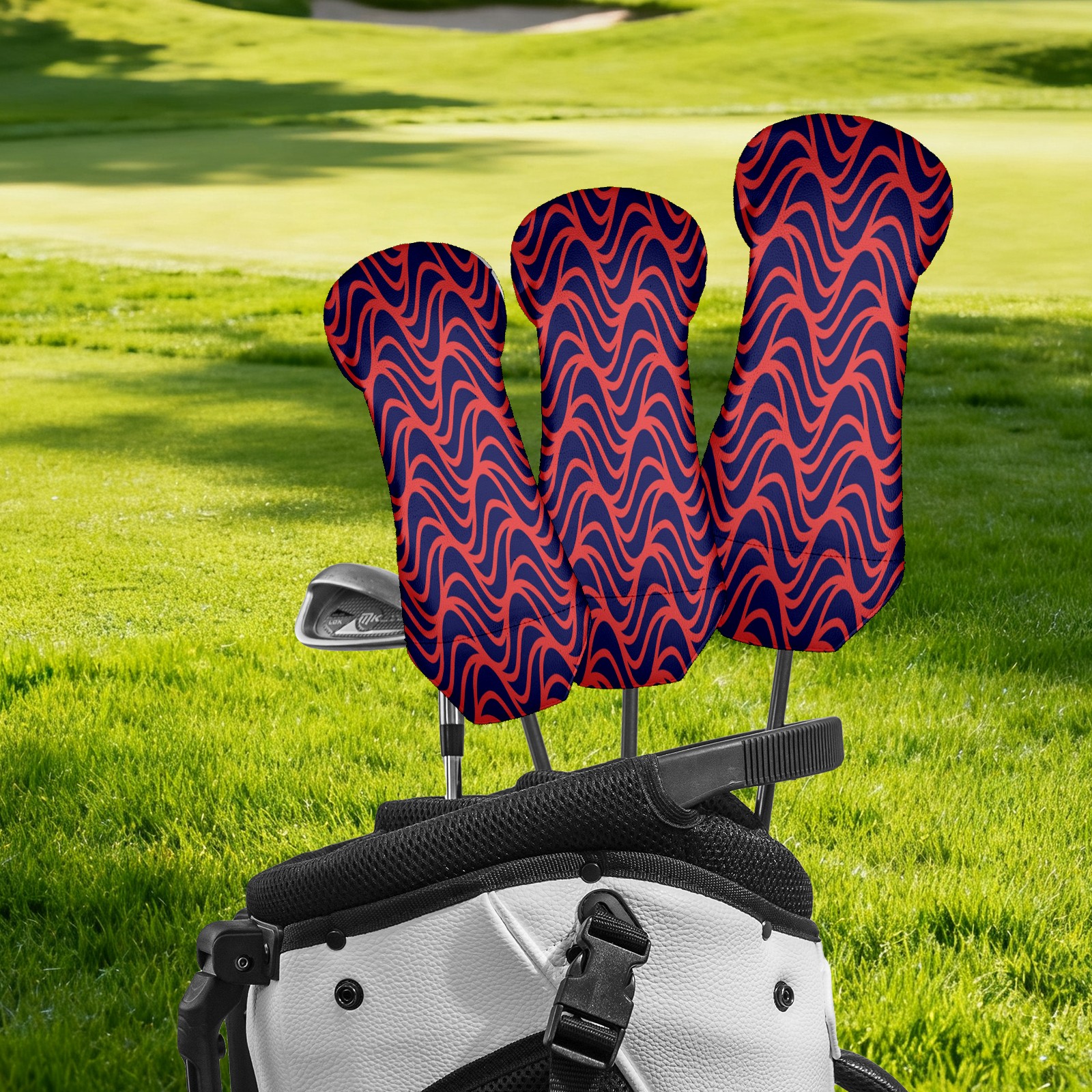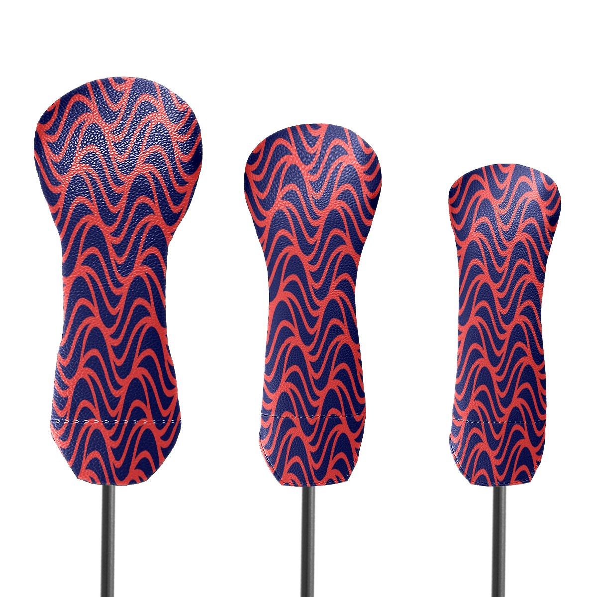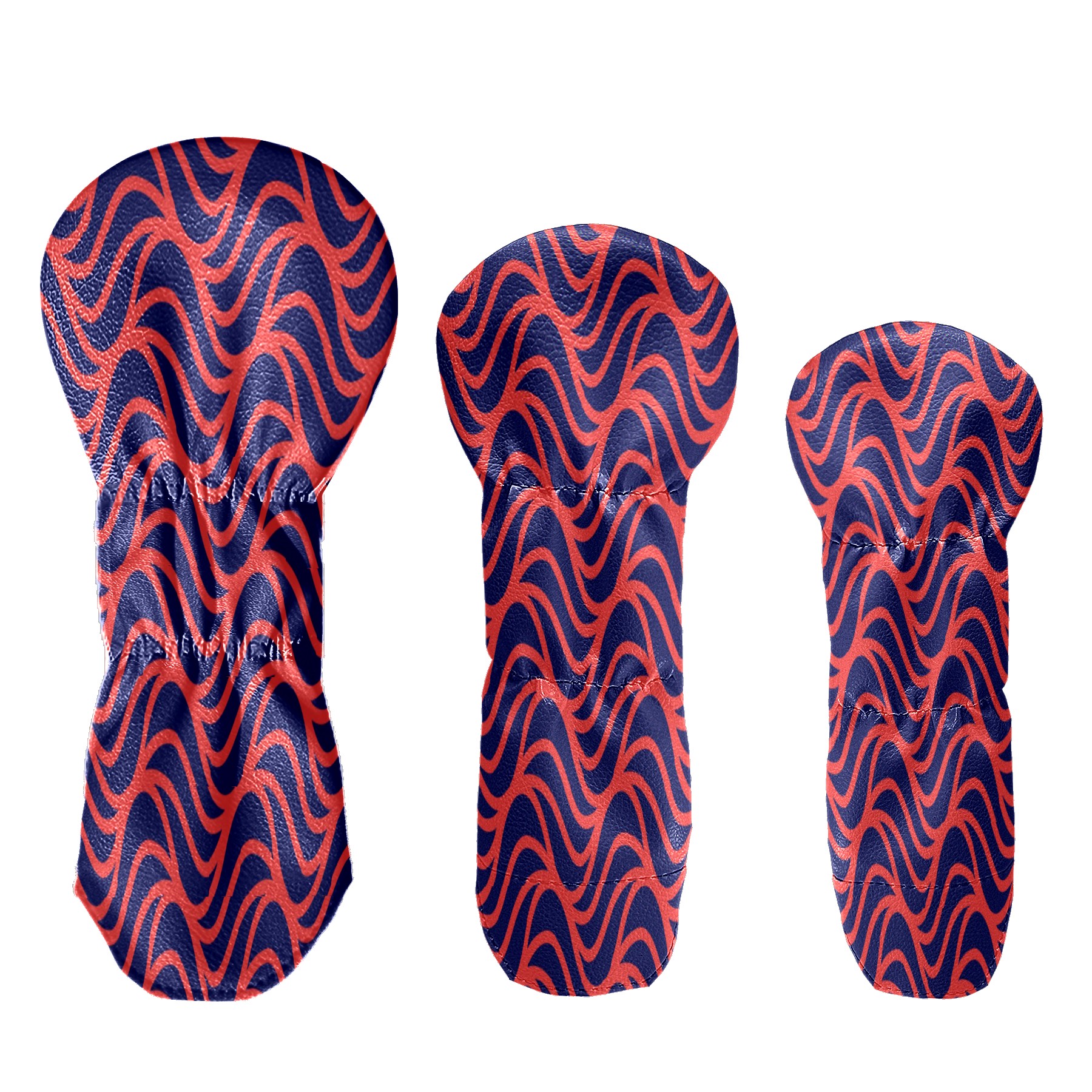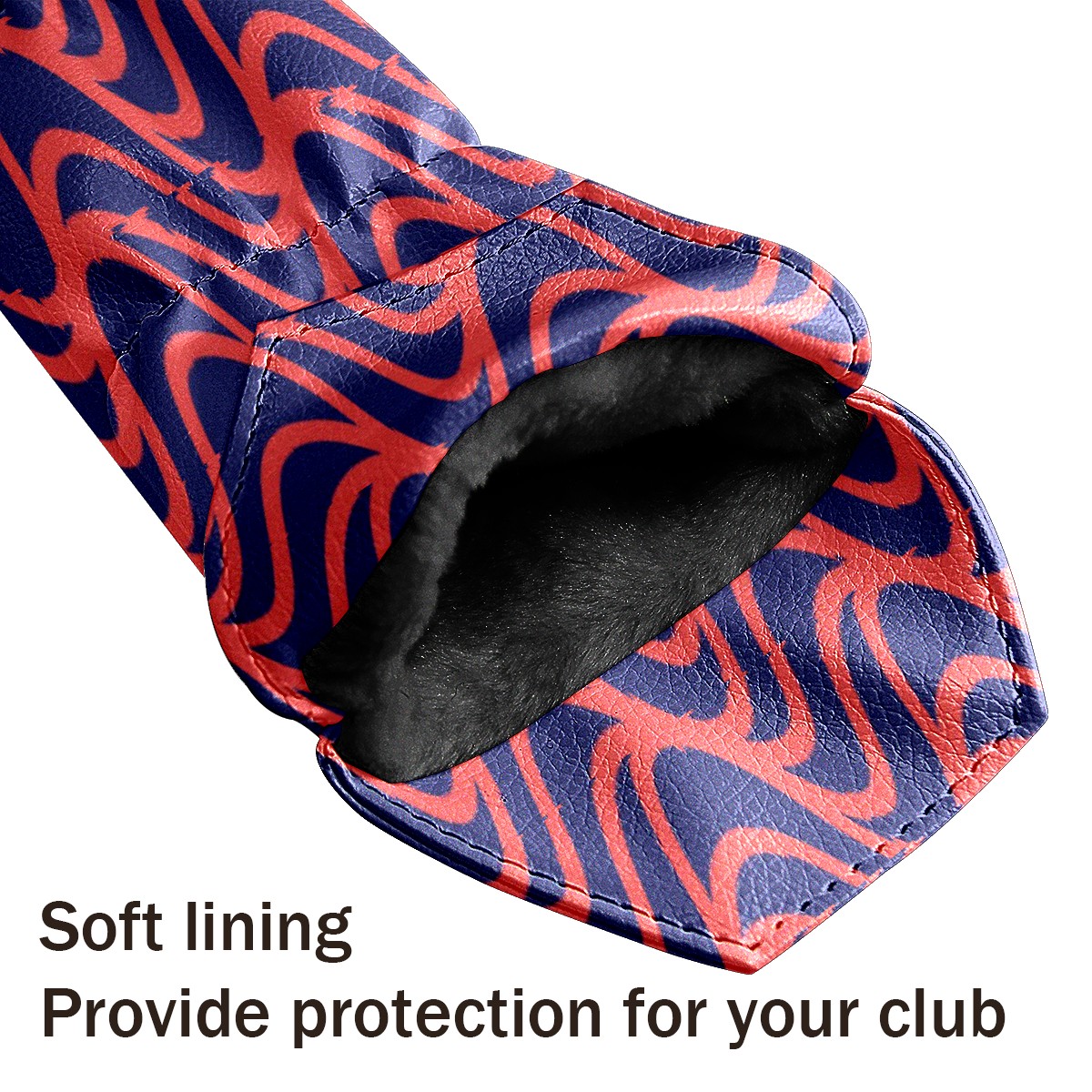 Golf Club Head Cover Waterproof Leather for Driver & Fairway Wood, Driver Headcovers, Golf Accessories for Men Women, Anti-Scratch, Golf Gift for Golfers, 1/3/5 Wood Cover Red Wave