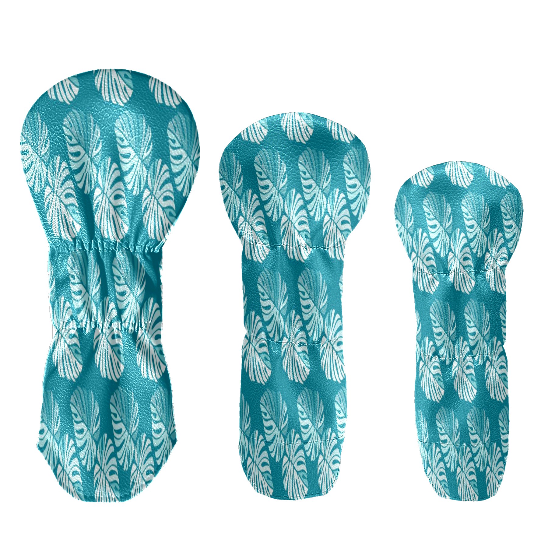 Golf Club Head Cover Waterproof Leather for Driver & Fairway Wood, Driver Headcovers, Golf Accessories for Men Women, Anti-Scratch, Golf Gift for Golfers, 1/3/5 Wood Cover Blue Monstera Leaf