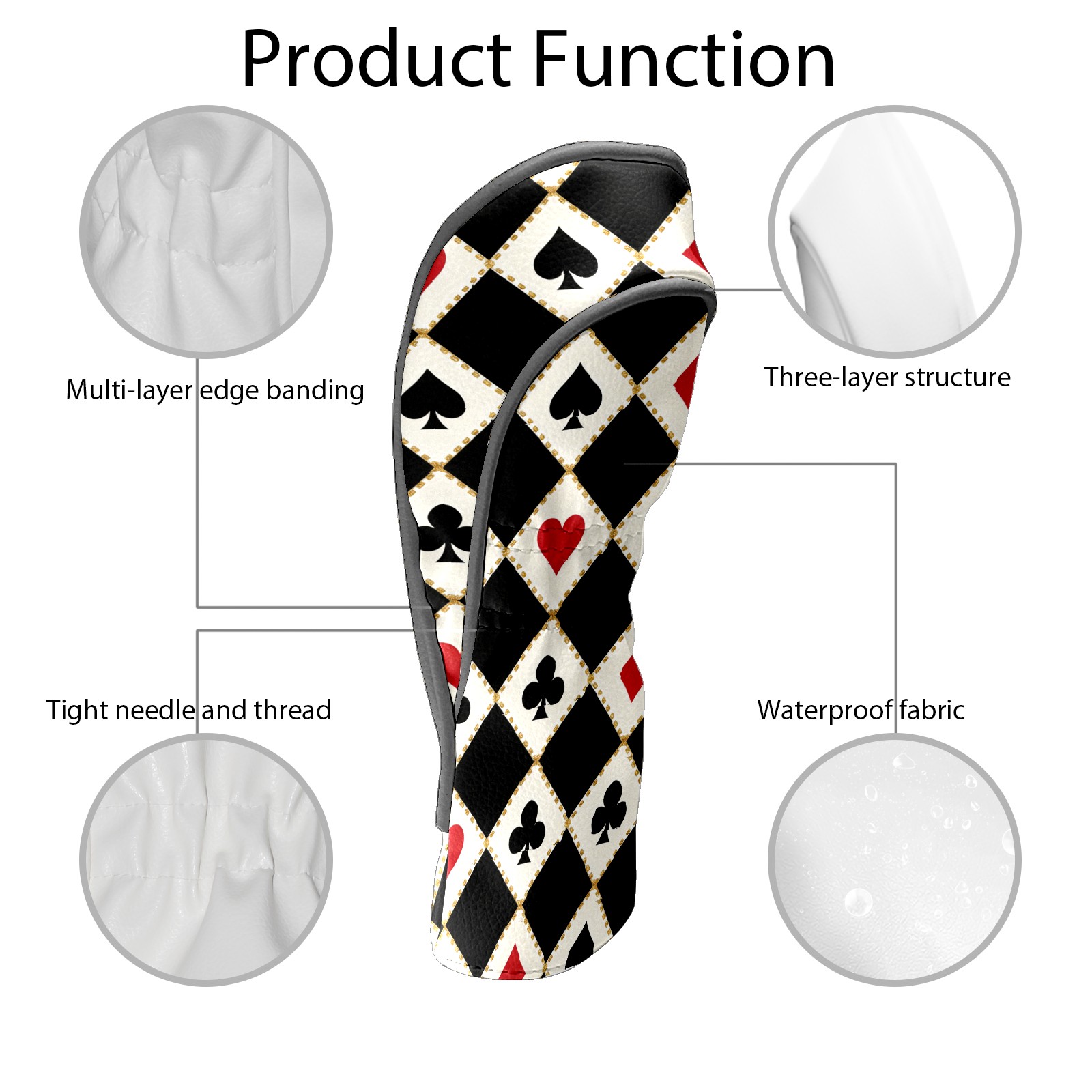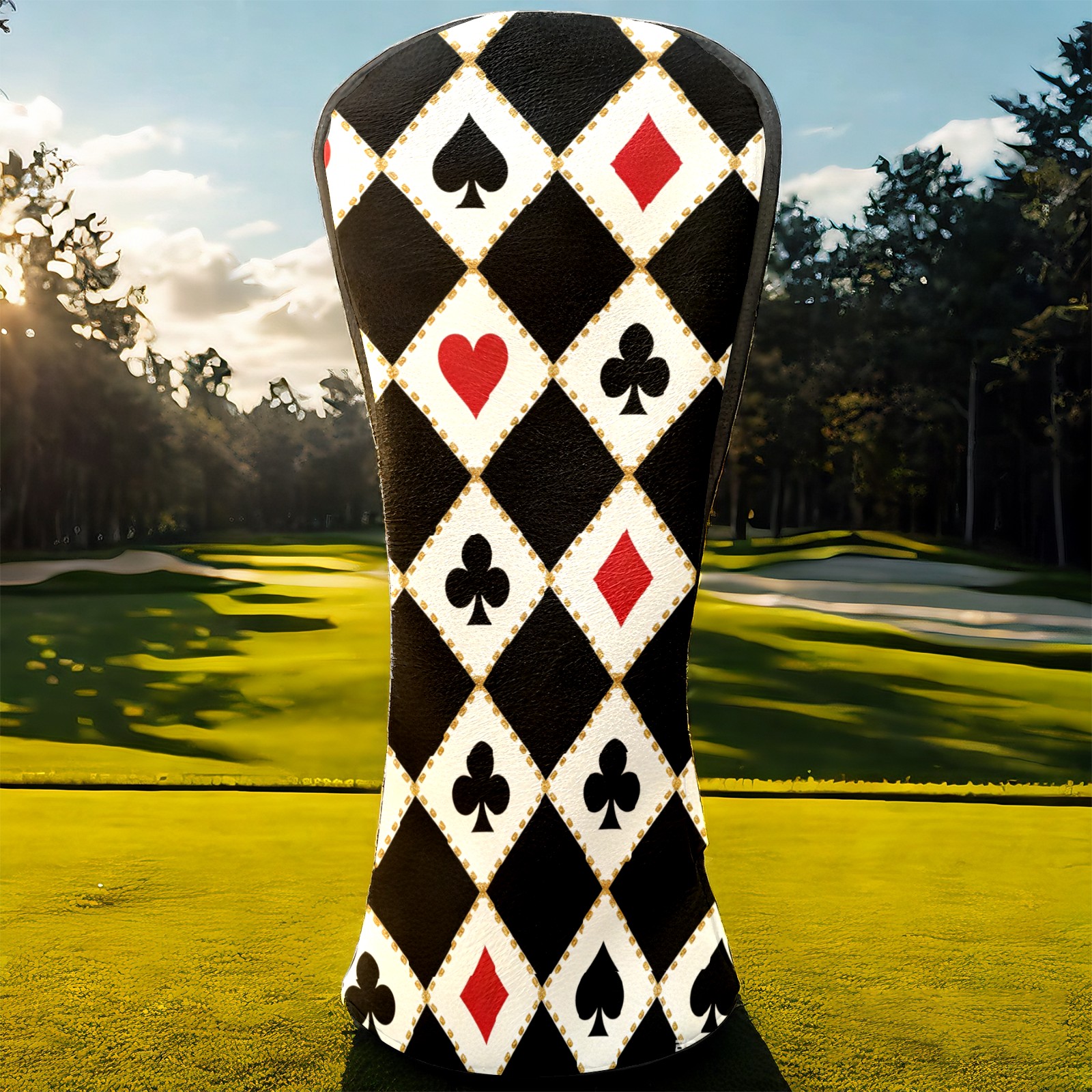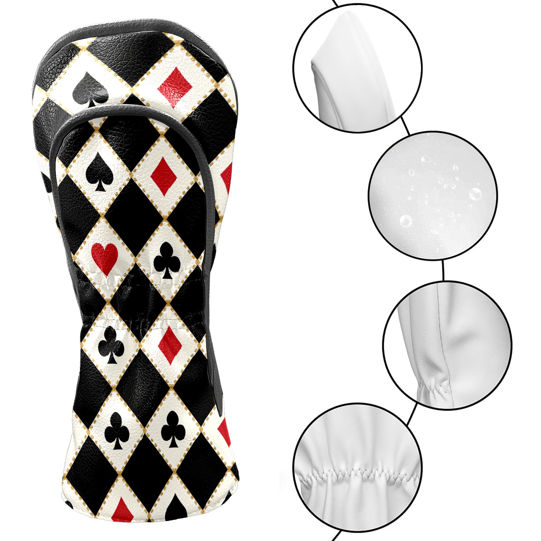 Golf Club Head Cover, High Quality PU Leather Driver and Wood Club Head Cover with Anti-Scratch Lining, Poker 2 Universal Gift for Men and Women