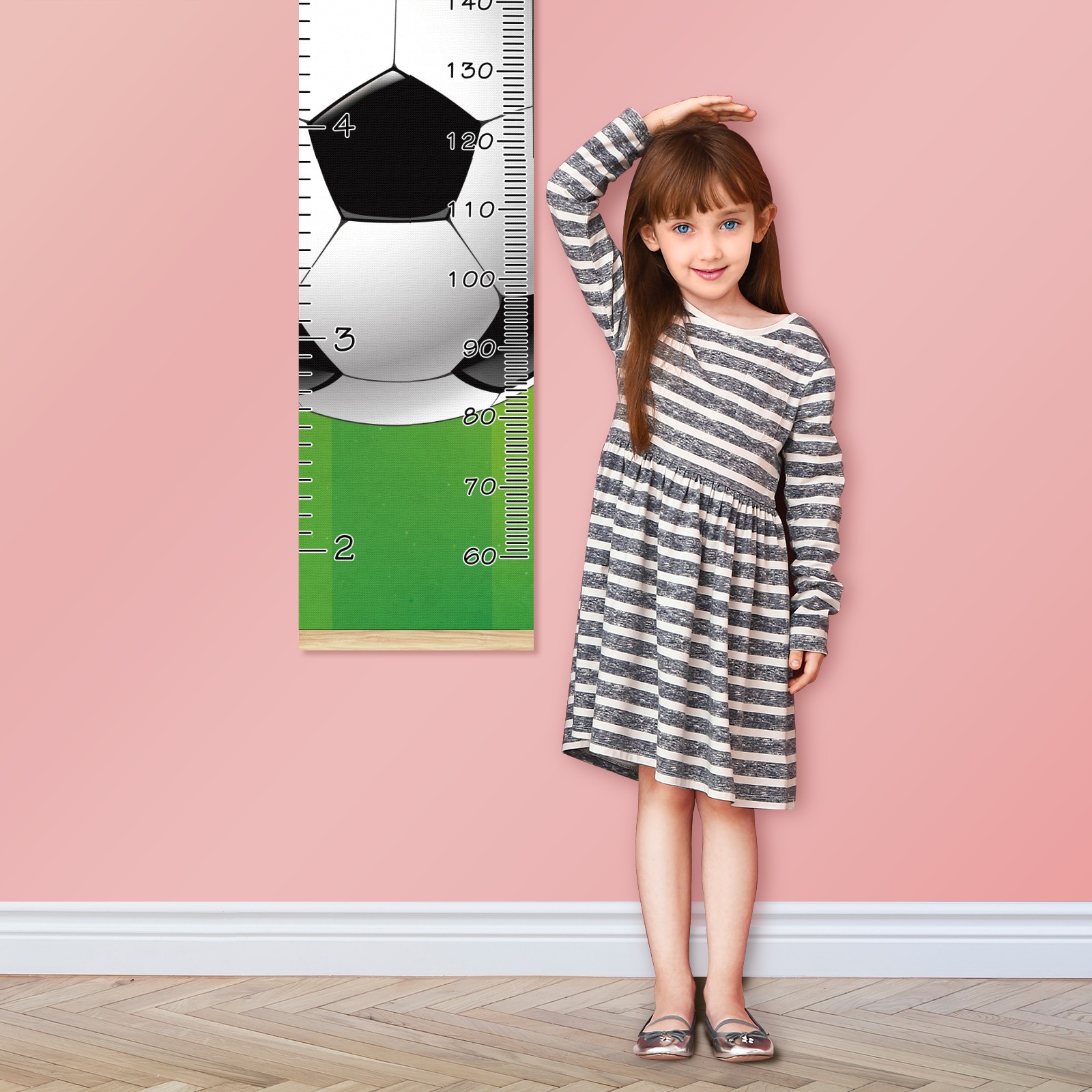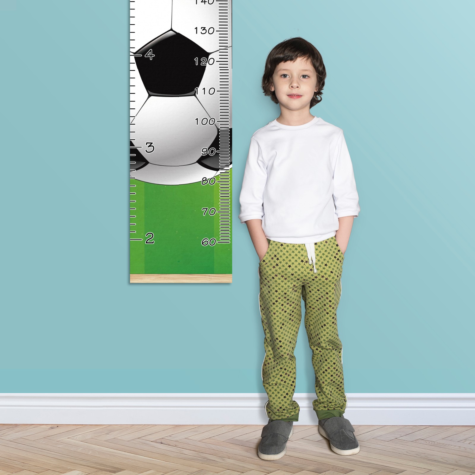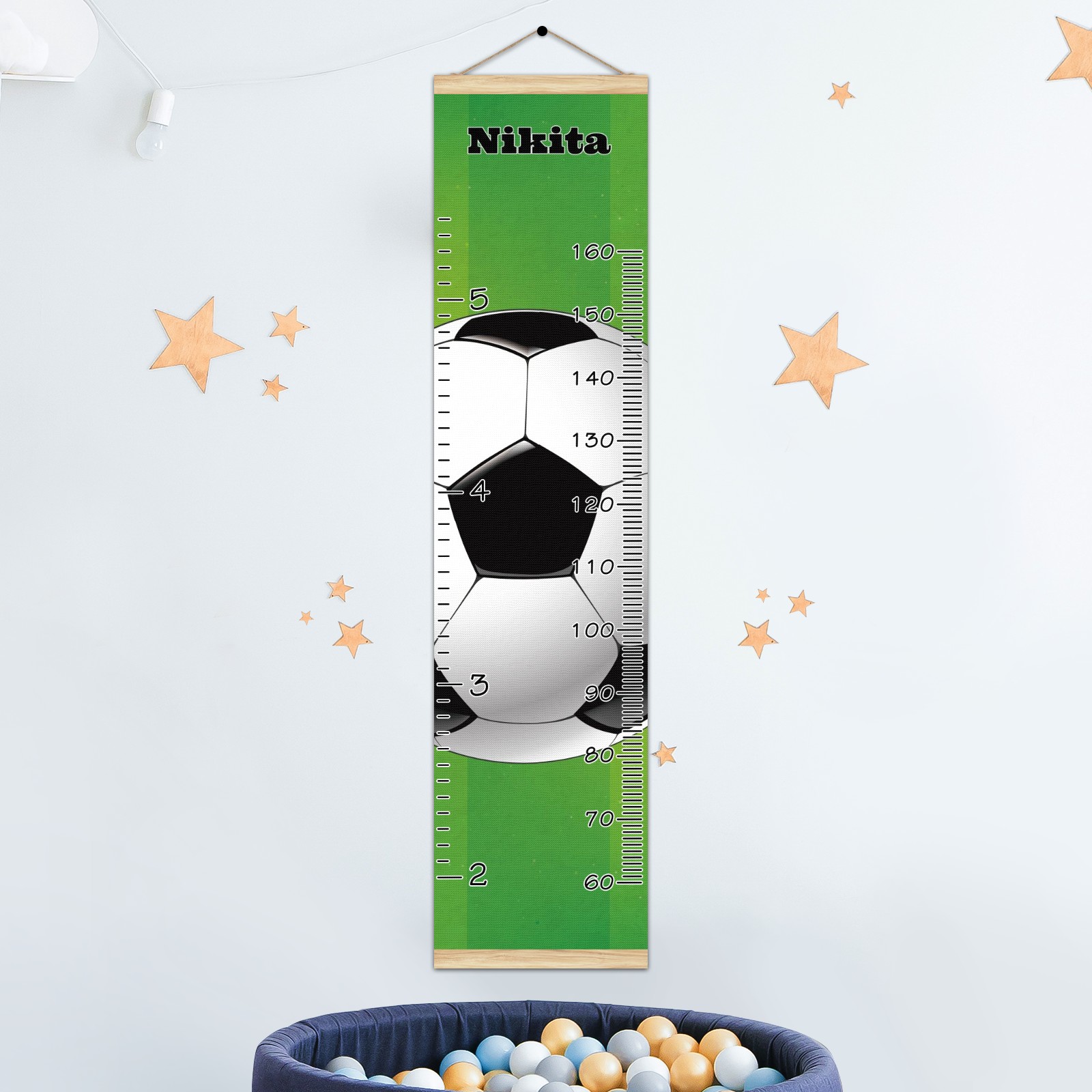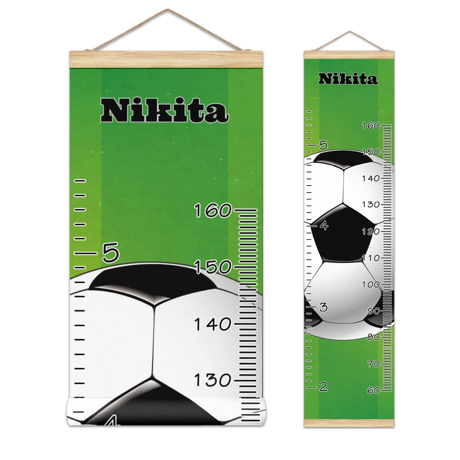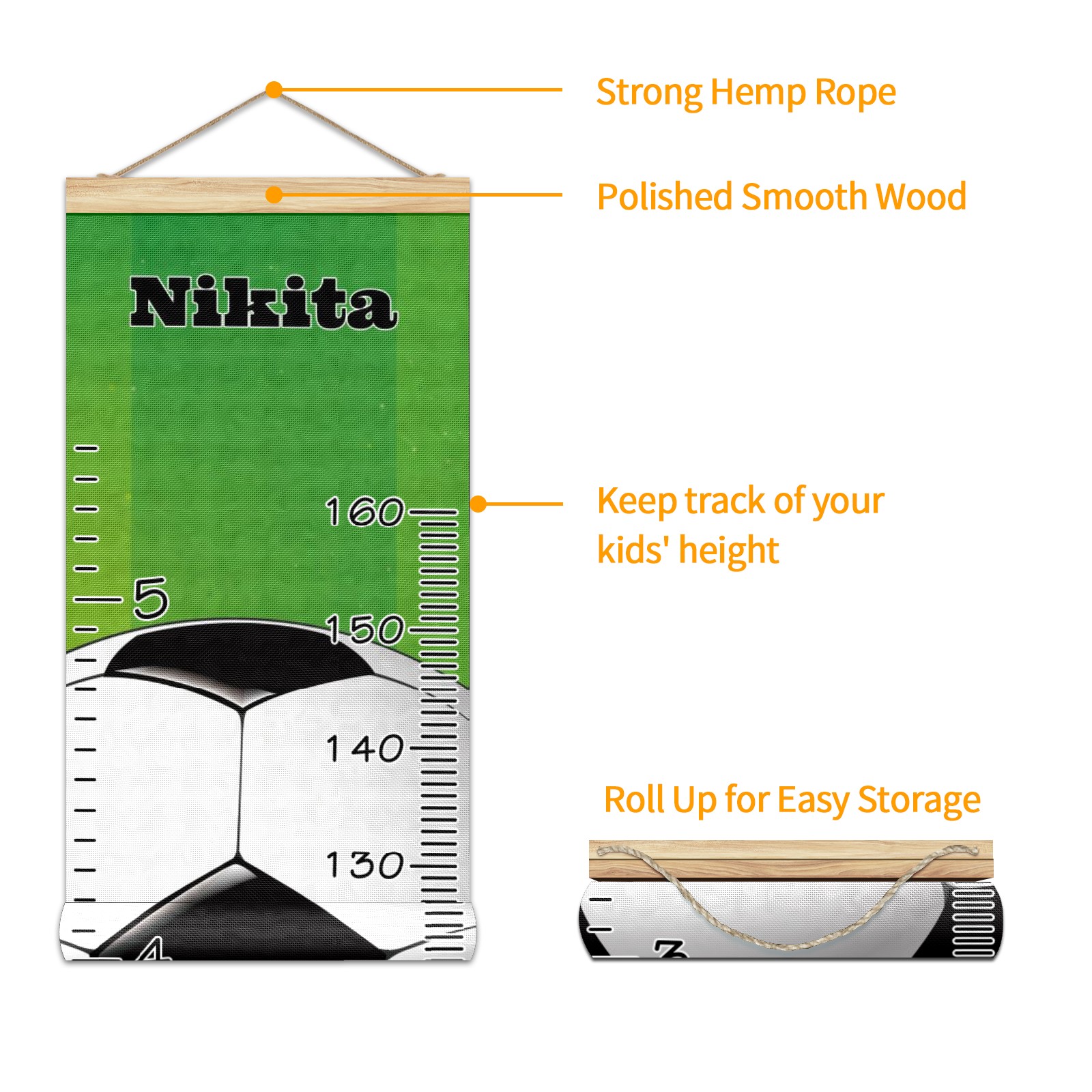 Personalized Kids Name Growth Chart Ruler for Wall Wood Frame Canvas Height Measure Chart 13.4x56 in Hanging Growth Chart Football Soccer12.10 Boys Girls Room Decor