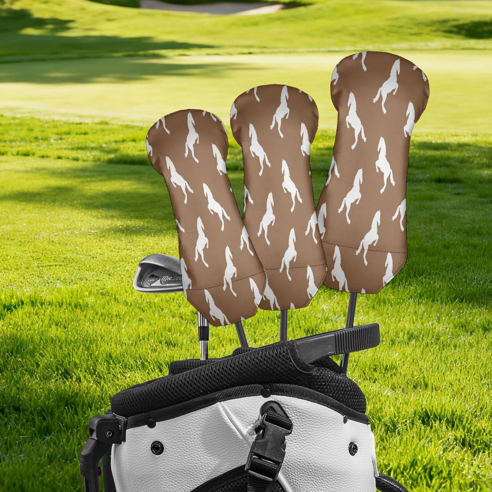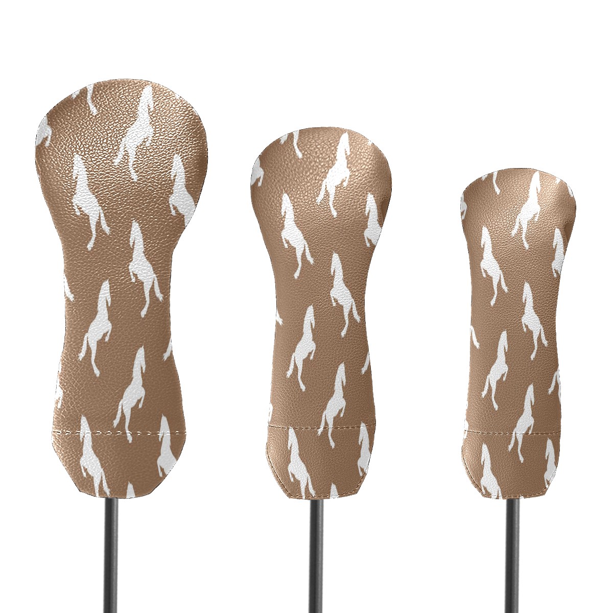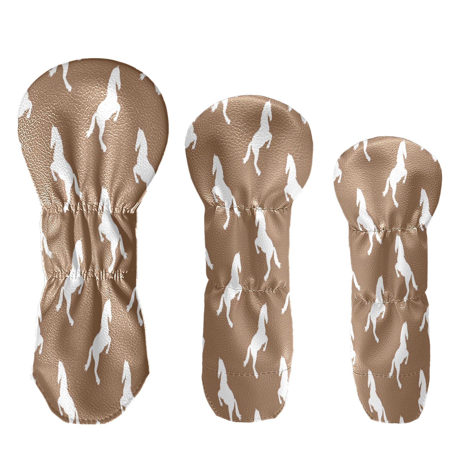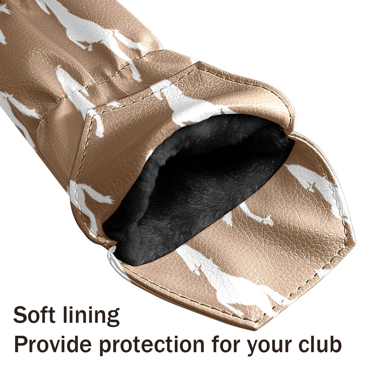 Golf Club Head Cover Waterproof Leather for Driver & Fairway Wood, Driver Headcovers, Golf Accessories for Men Women, Anti-Scratch, Golf Gift for Golfers, 1/3/5 Wood Cover White Running Horse
