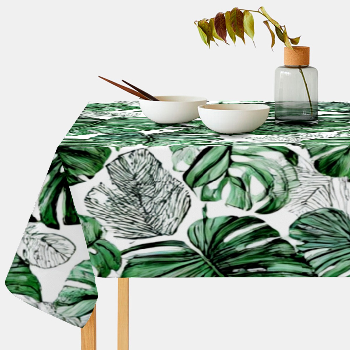 Green Leaves Plaid Tablecloth - Polyester Wrinkle-Resistant Table Cover | Durable, Stain-Resistant Tablecloth for Dining Room, Outdoor Patio, Picnic & Party