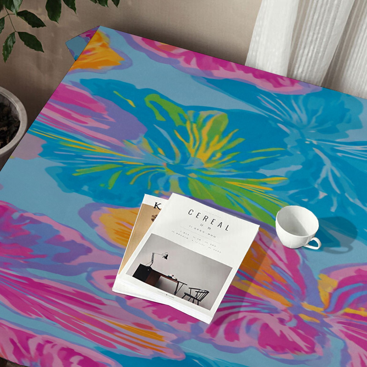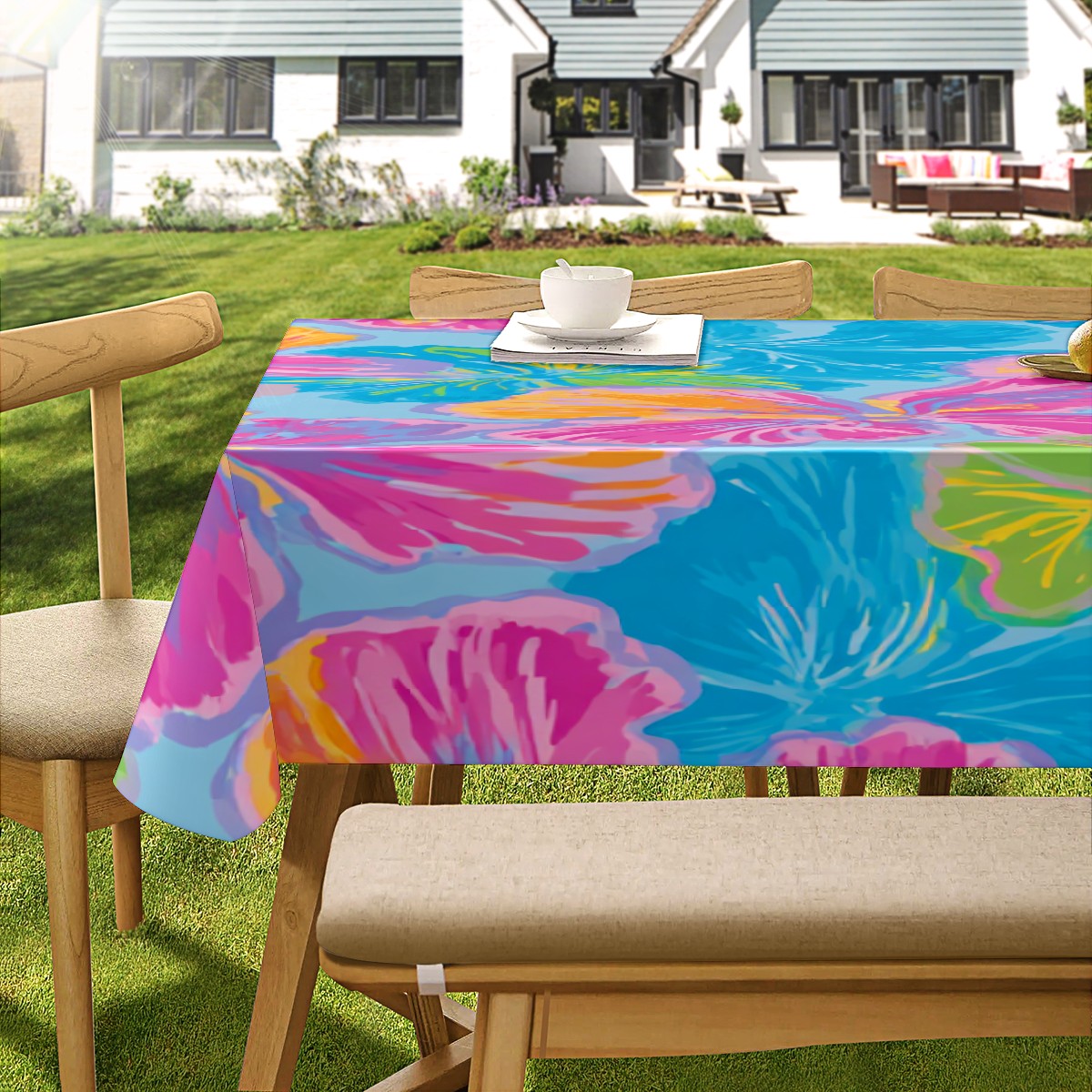 Tropical Floral Multicolor Plaid Tablecloth - Polyester Wrinkle-Resistant Table Cover | Durable, Stain-Resistant Tablecloth for Dining Room, Outdoor Patio, Picnic & Party