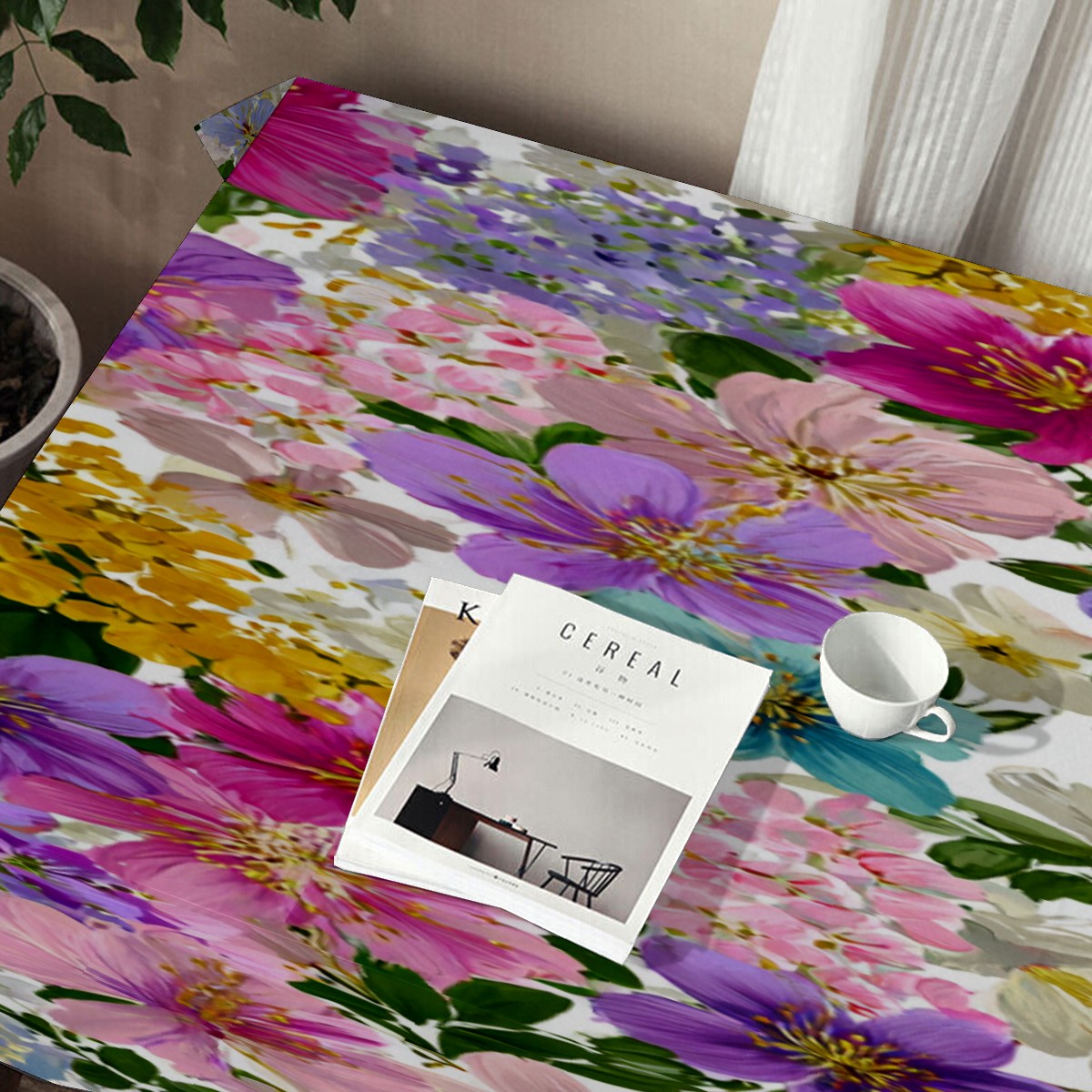 Floral Multicolor Plaid Tablecloth - Polyester Wrinkle-Resistant Table Cover | Durable, Stain-Resistant Tablecloth for Dining Room, Outdoor Patio, Picnic & Party