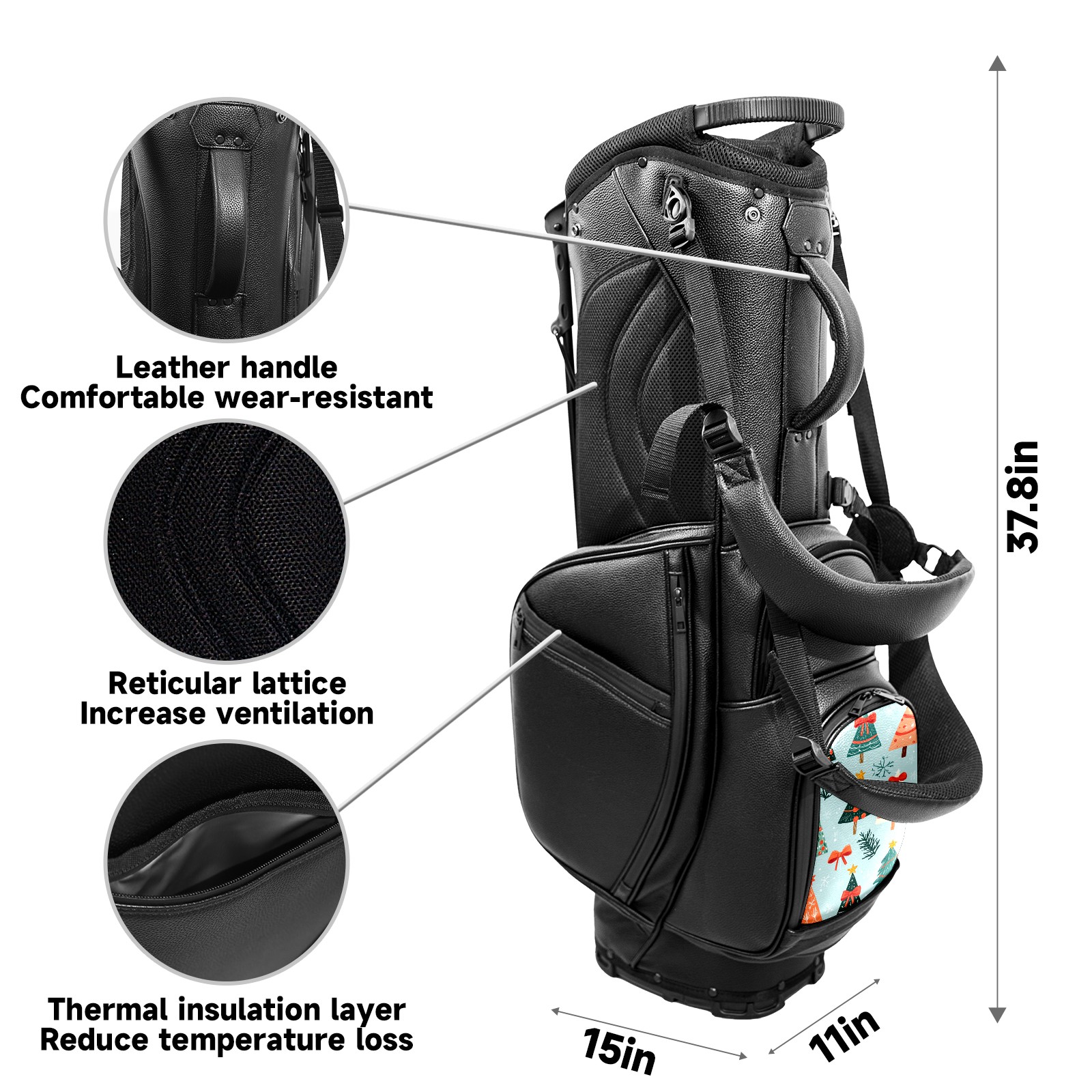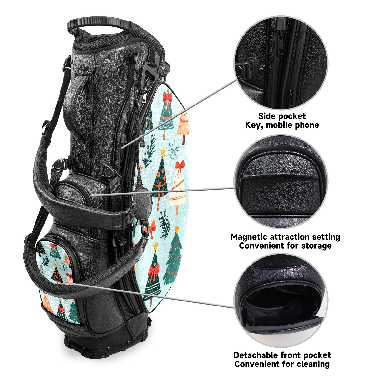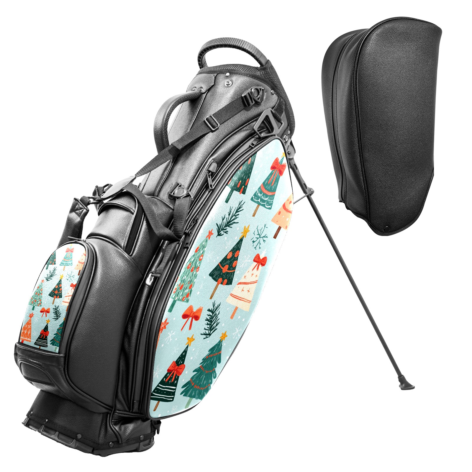 Lightweight Golf Stand Bag - 5-Way Top Divider, Golf Club Carry Bag with Adjustable Double Shoulder Straps, Zipper Storage Pockets + Rain Cover, Ideal for Golfers Cute Christmas Tree Pattern