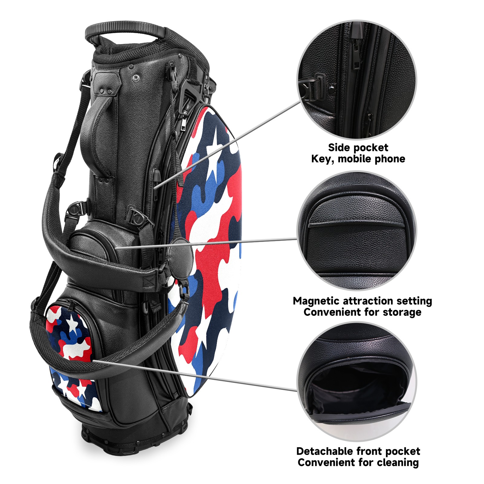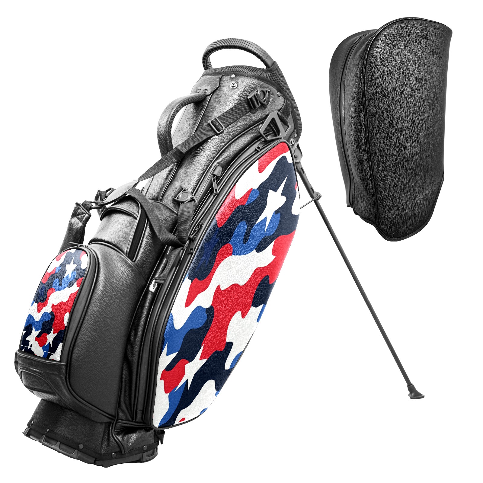Lightweight Golf Stand Bag - 5-Way Top Divider, Golf Club Carry Bag with Adjustable Double Shoulder Straps, Zipper Storage Pockets + Rain Cover, Ideal for Golfers Red Blue Camouflage Pattern