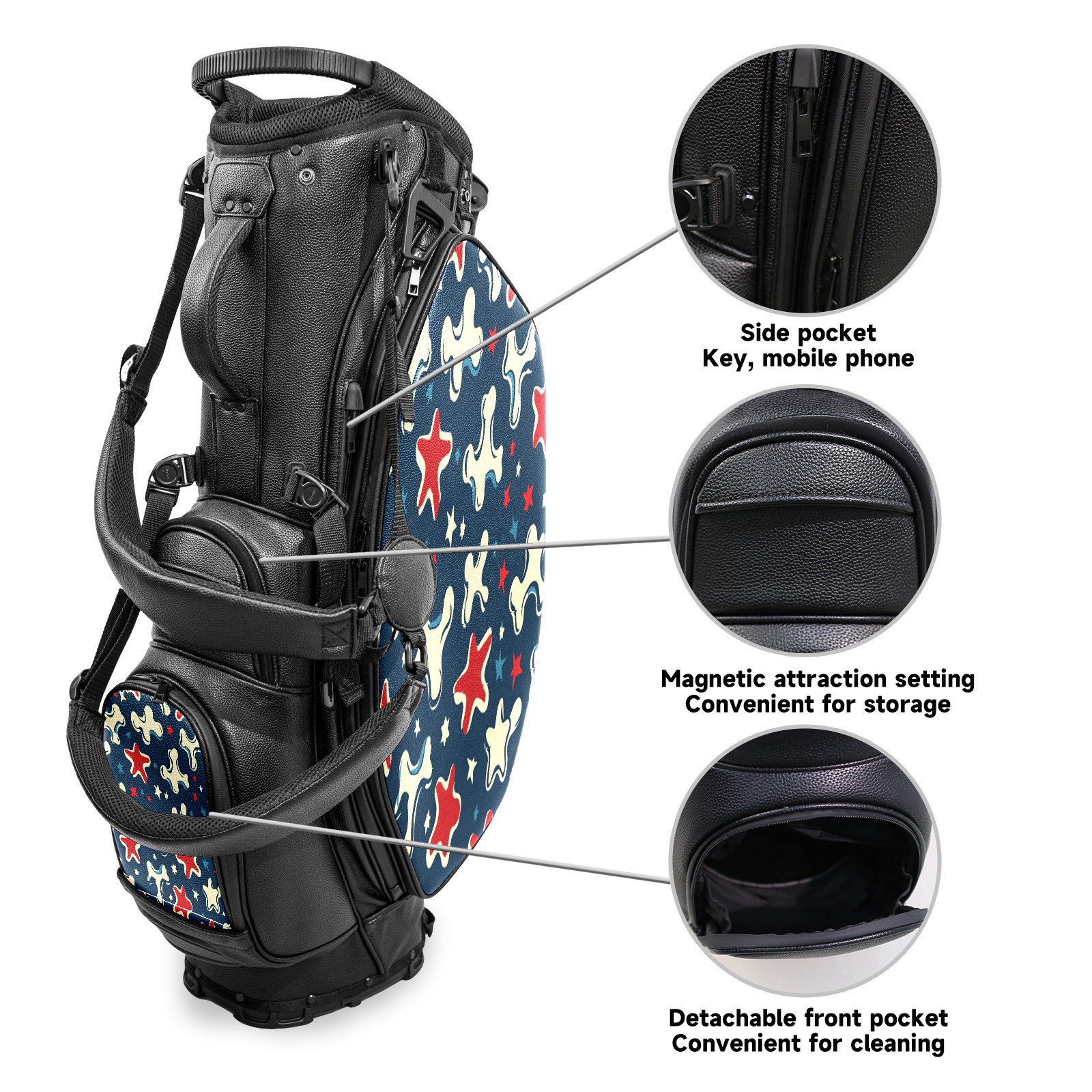 Lightweight Golf Stand Bag - 5-Way Top Divider, Golf Club Carry Bag with Adjustable Double Shoulder Straps, Zipper Storage Pockets + Rain Cover, Ideal for Golfers Bone Star Pattern2