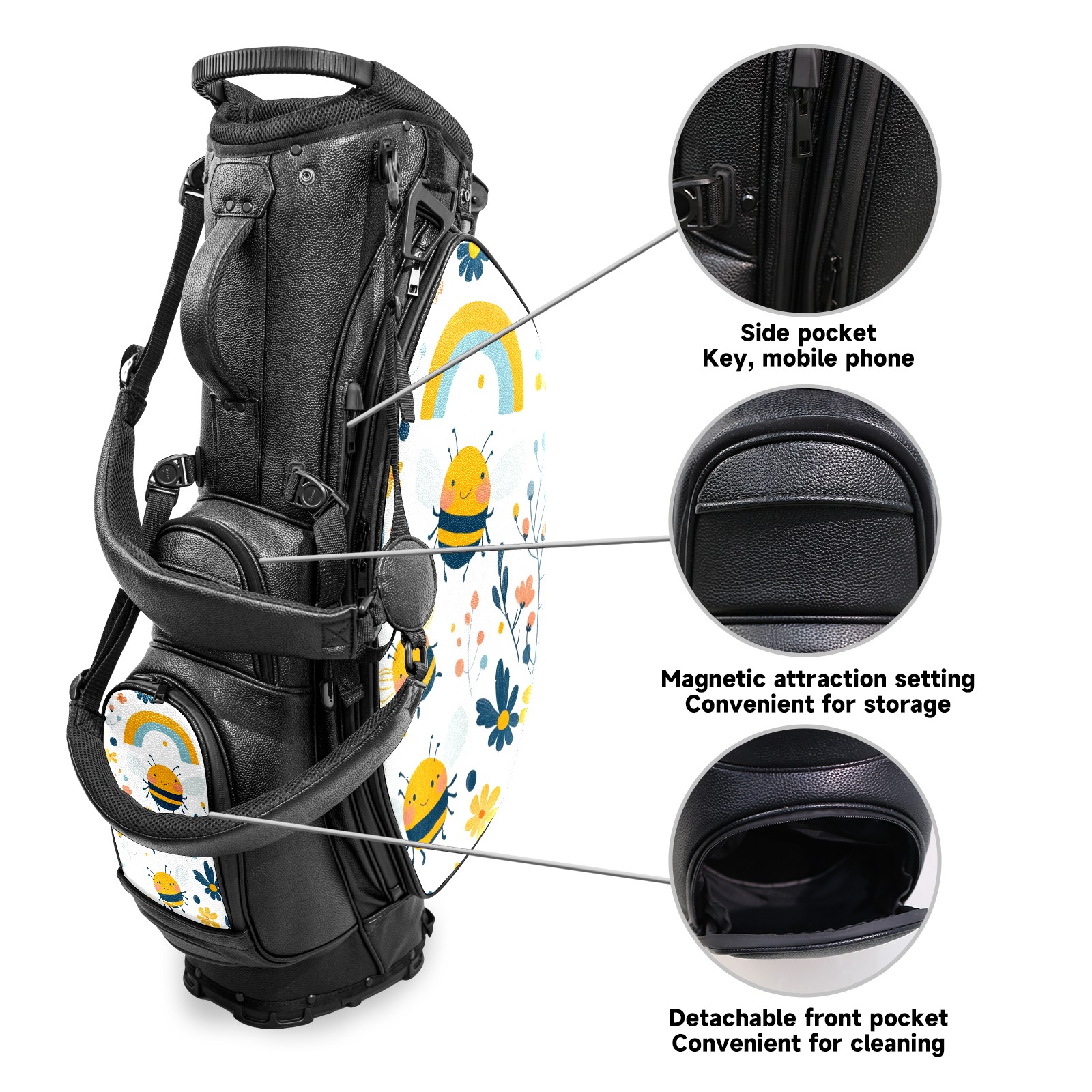 Lightweight Golf Stand Bag - 5-Way Top Divider, Golf Club Carry Bag with Adjustable Double Shoulder Straps, Zipper Storage Pockets + Rain Cover, Ideal for Golfers Cartoon Bee Pattern