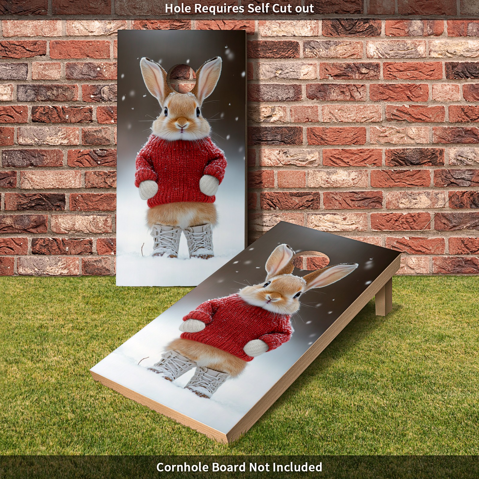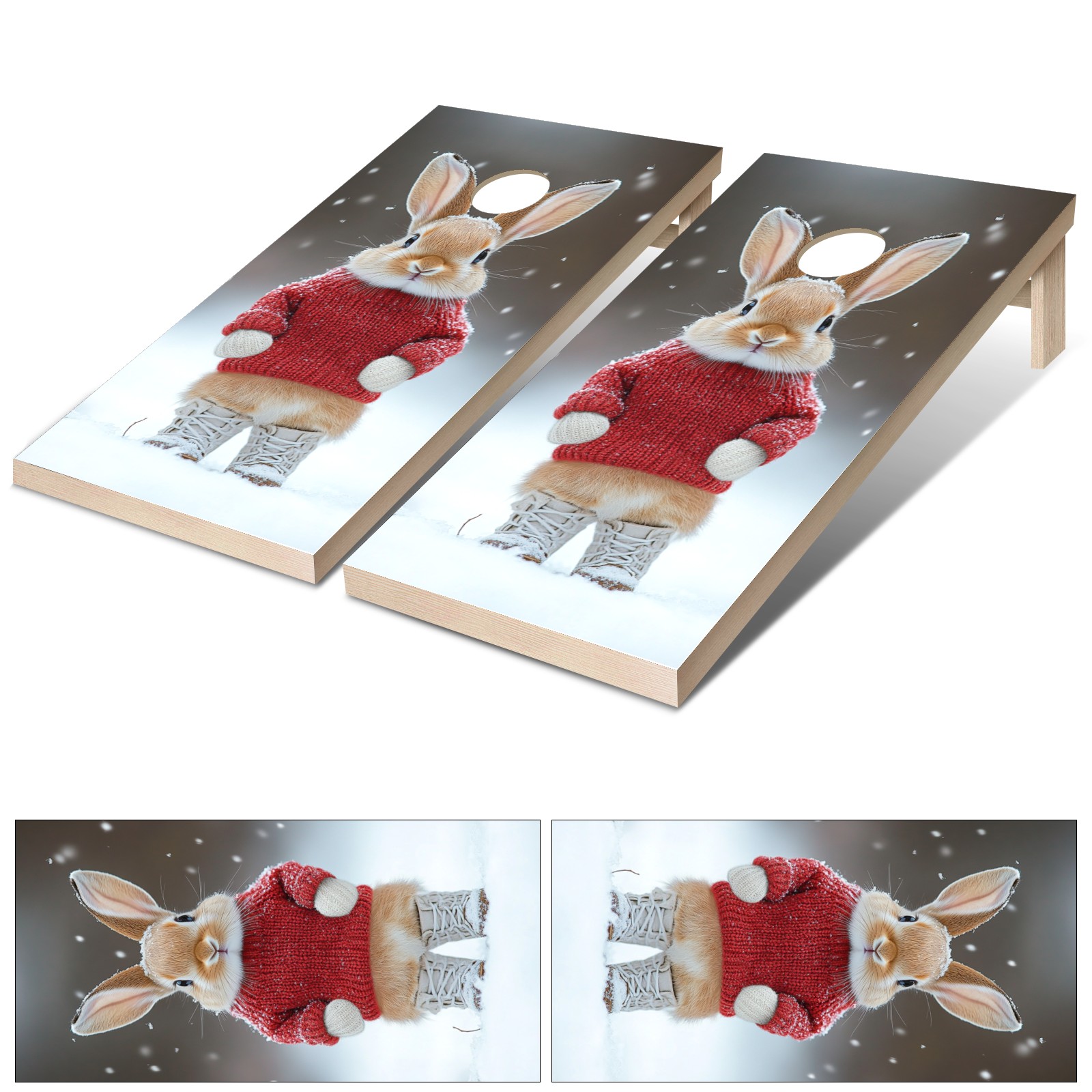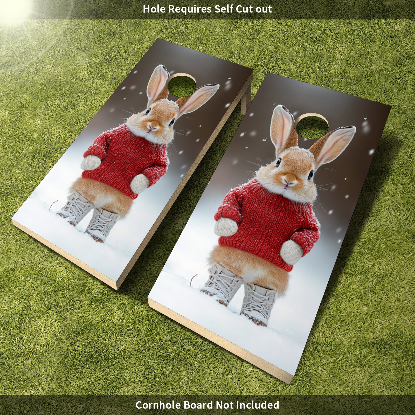 Portable 4x2 Cornhole Set with Two-piece Pack Boards - Cornhole Game Sticker Included - Yard Travel Outdoor Toss Board for Adults Outside Activities Cute Little Rabbit Pattern